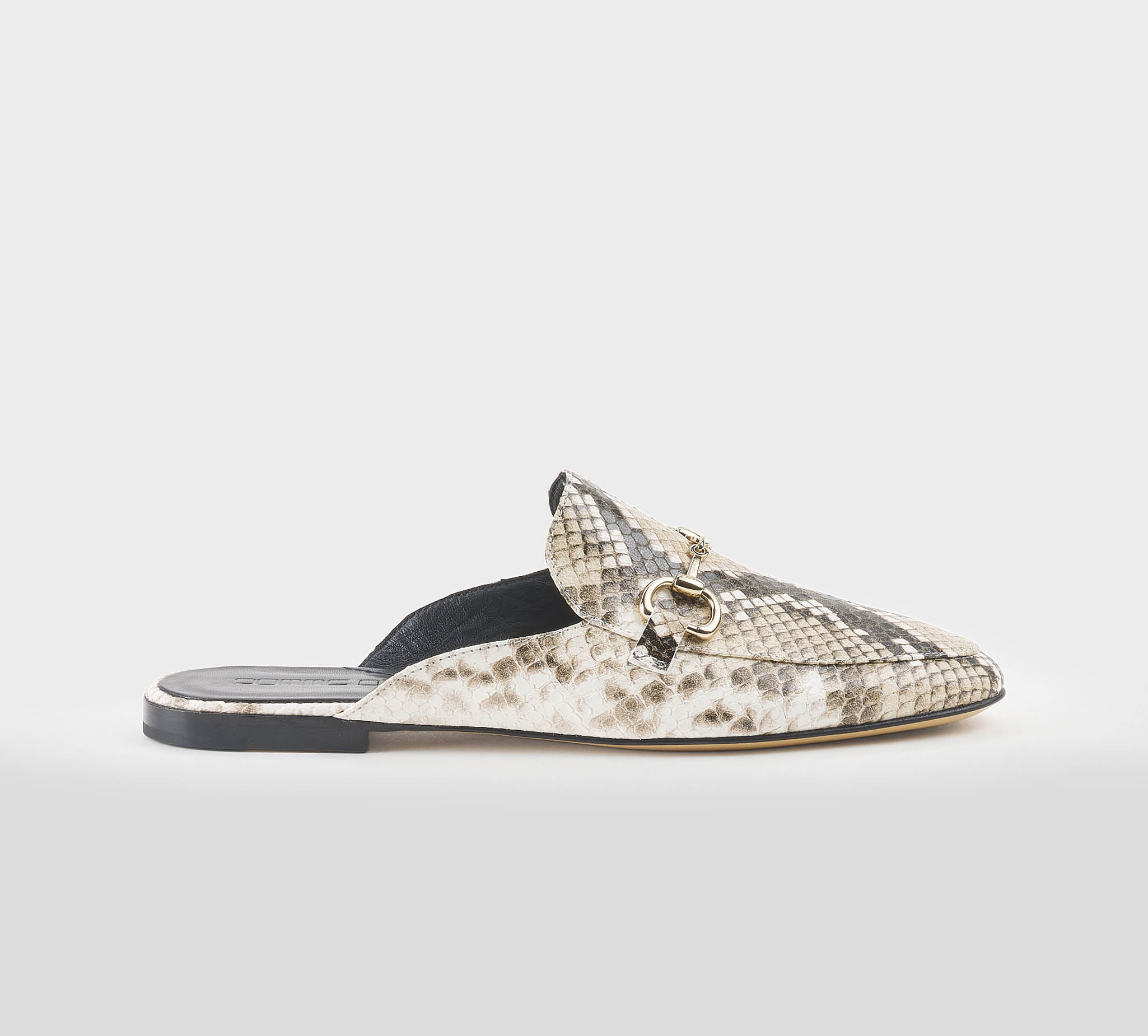 Sabot in stampa pitone roccia -morsetto oro -tacco cm 1,5 -calzata regolare Fondo cuoio Made in Italy ss 26