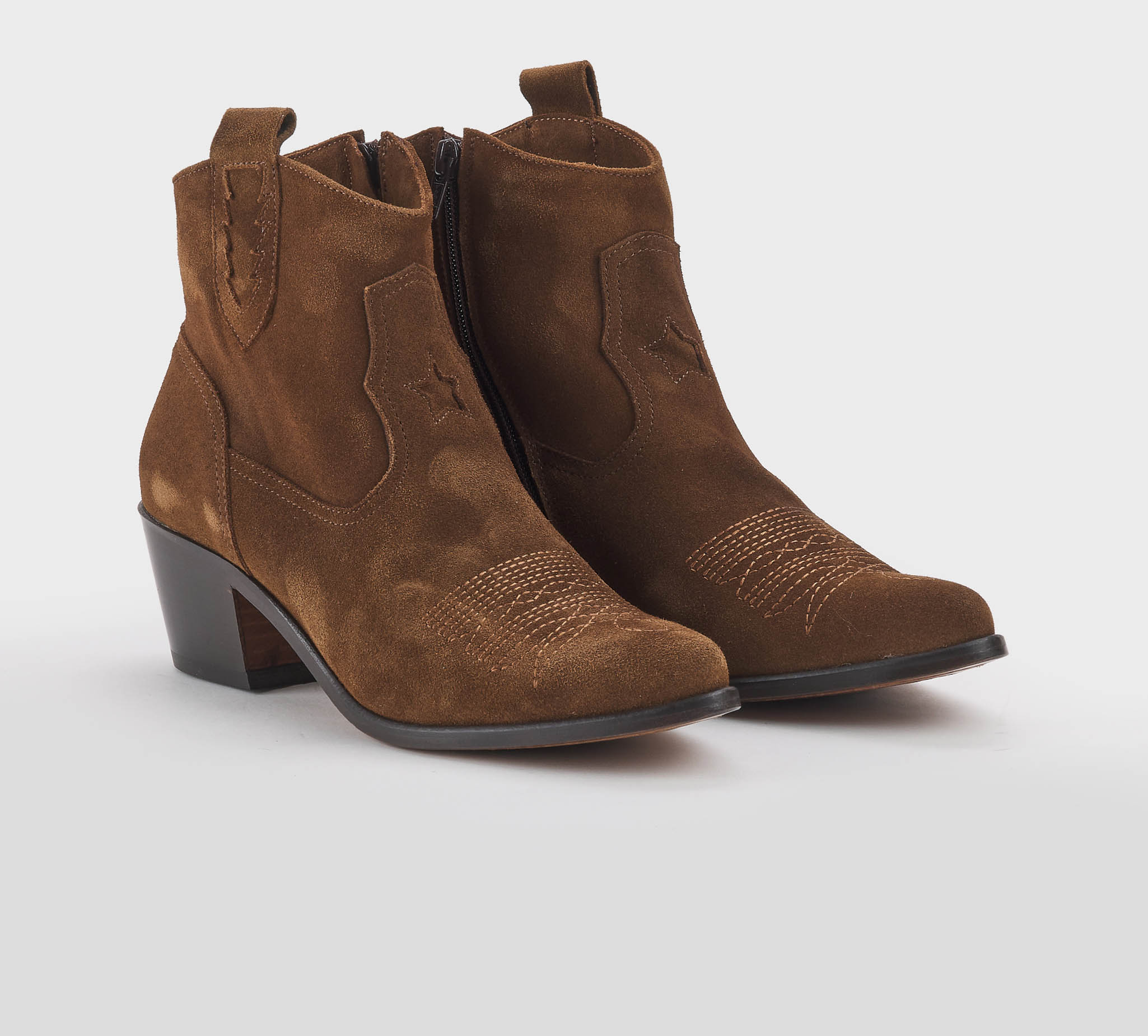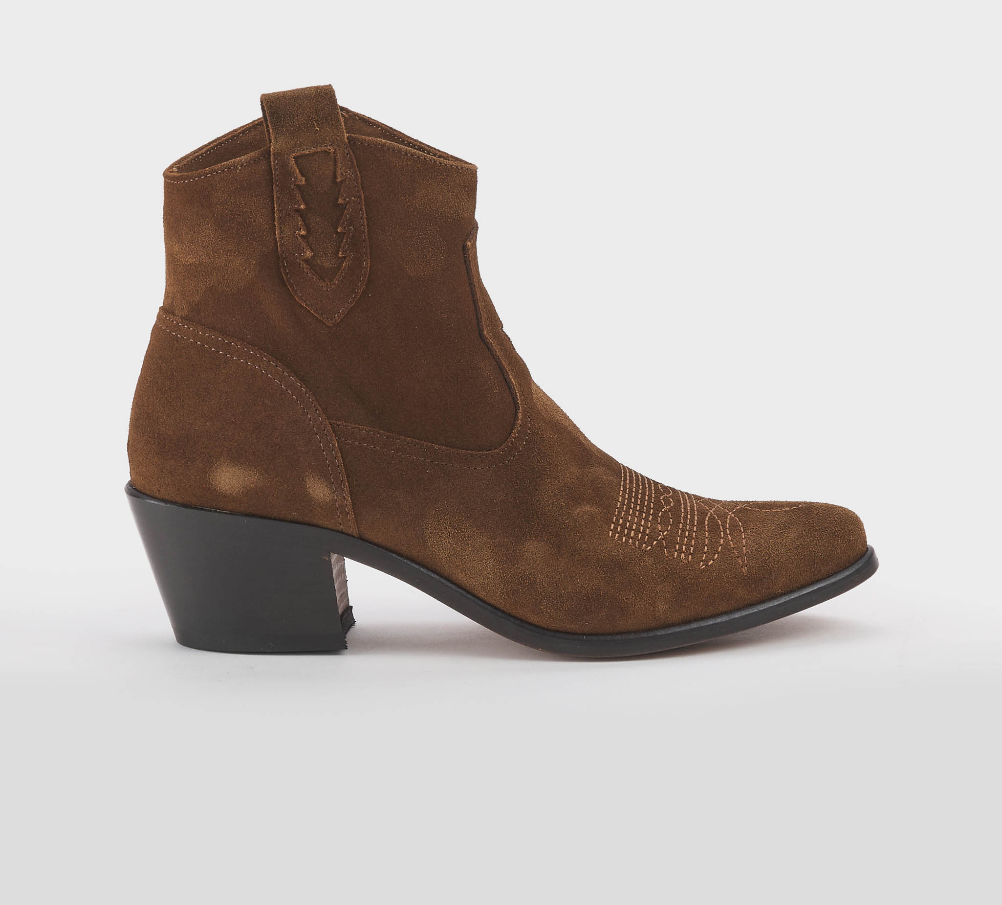 STIVALETTO TEXANO CAMOSCIO CUOIO