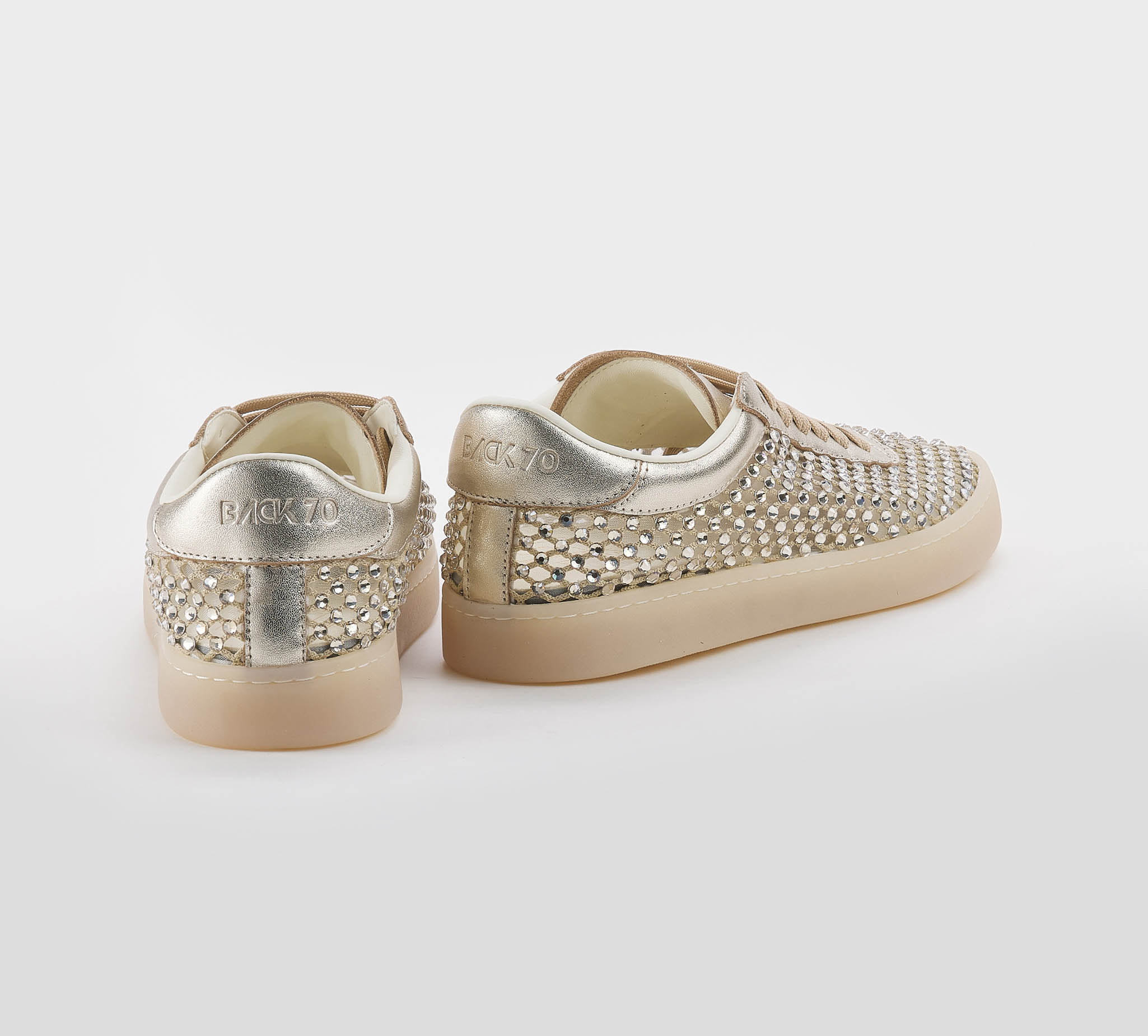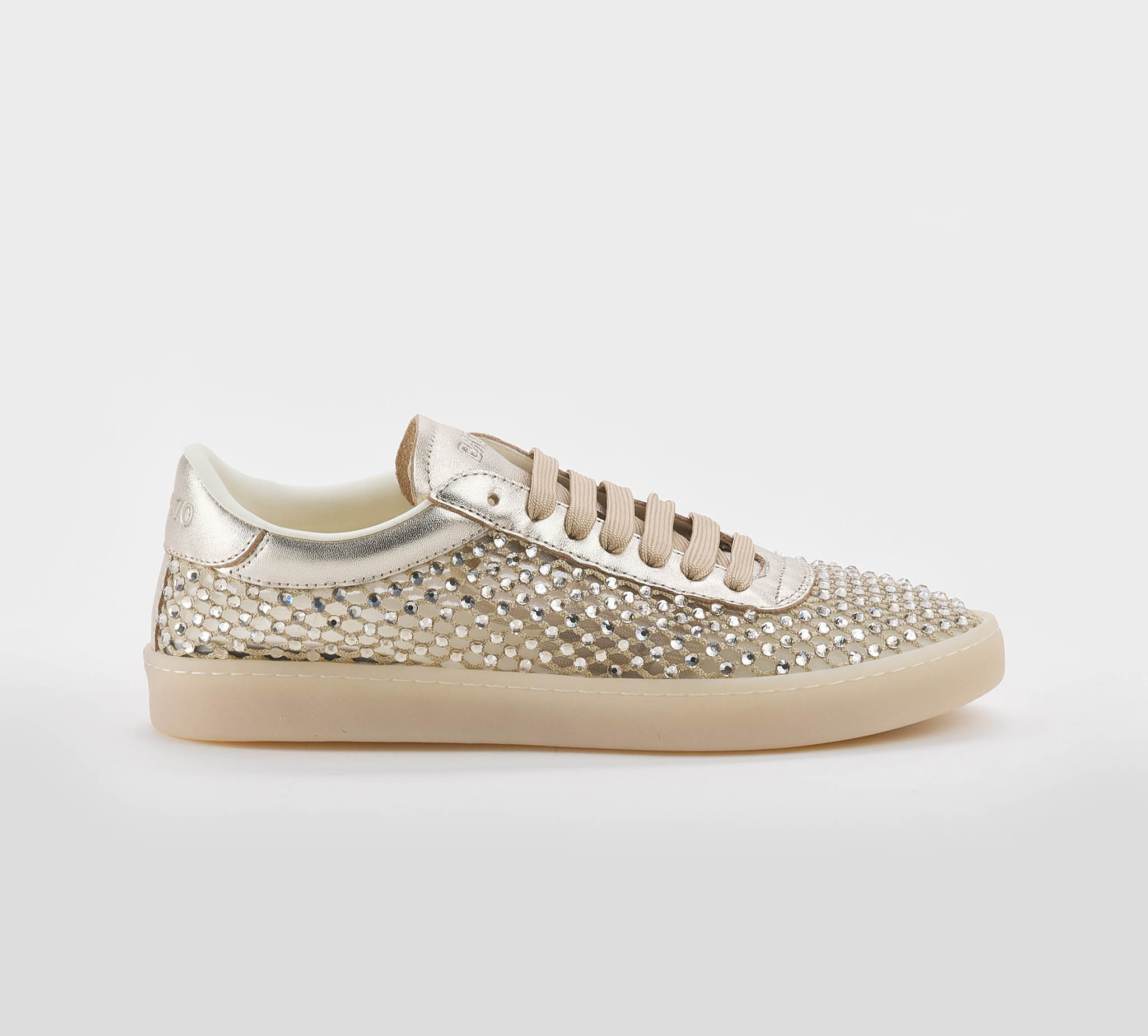 Sneakers in rete platino -profili pelle platino -swarovsky -inserti pelle platino -laccio beige -plantare anatomico -calzara regolare Fondo gomma SS 26