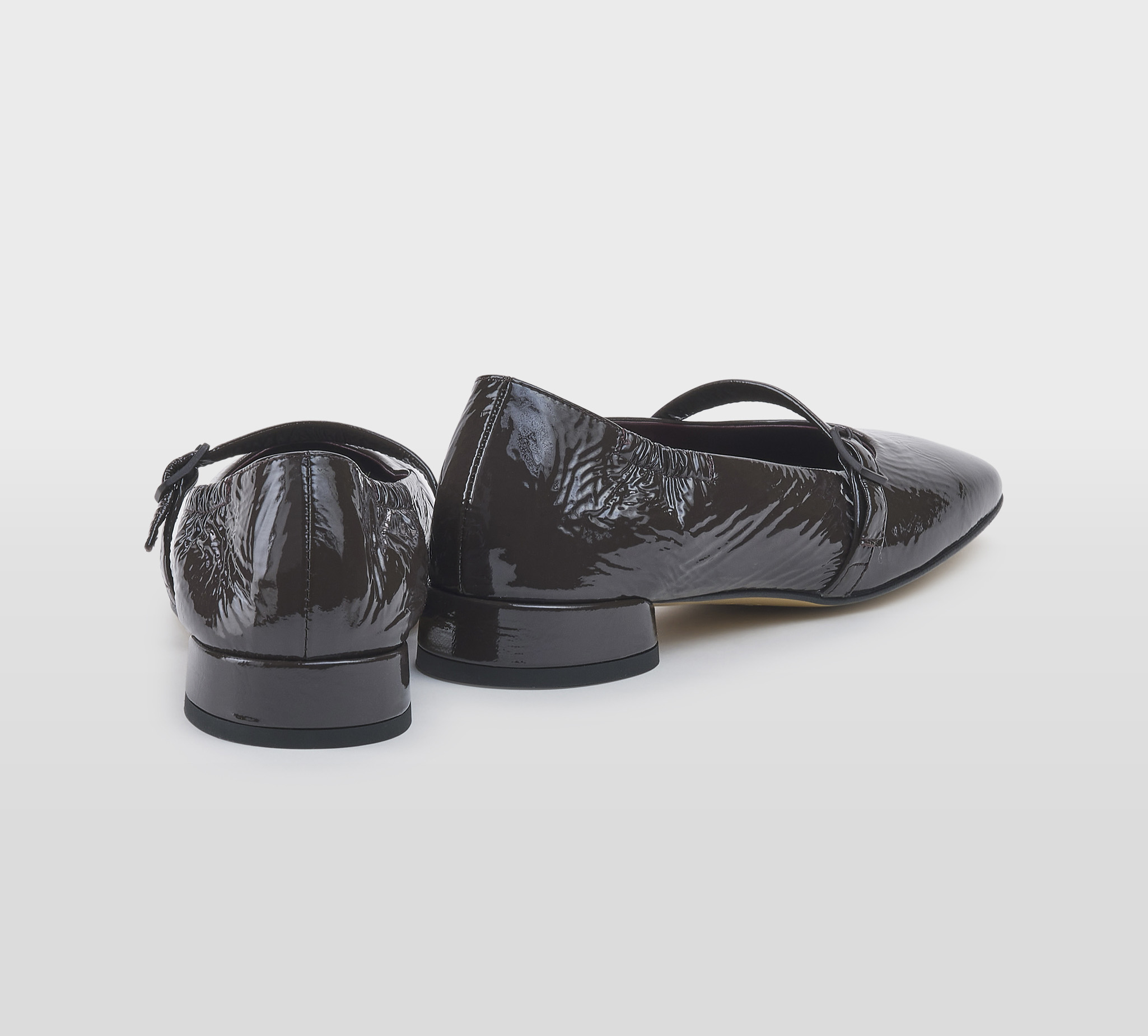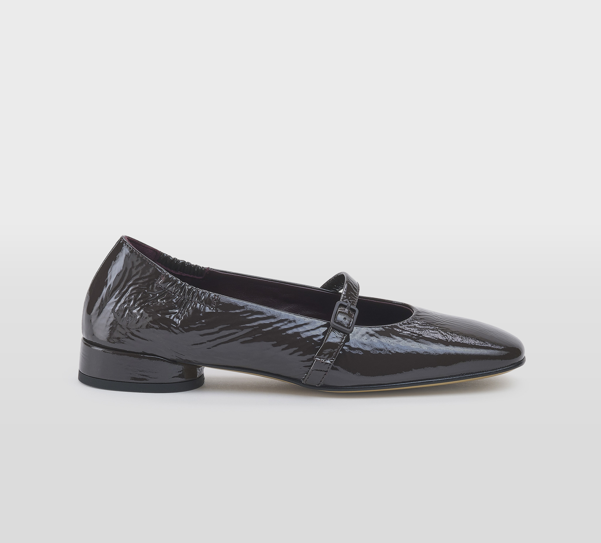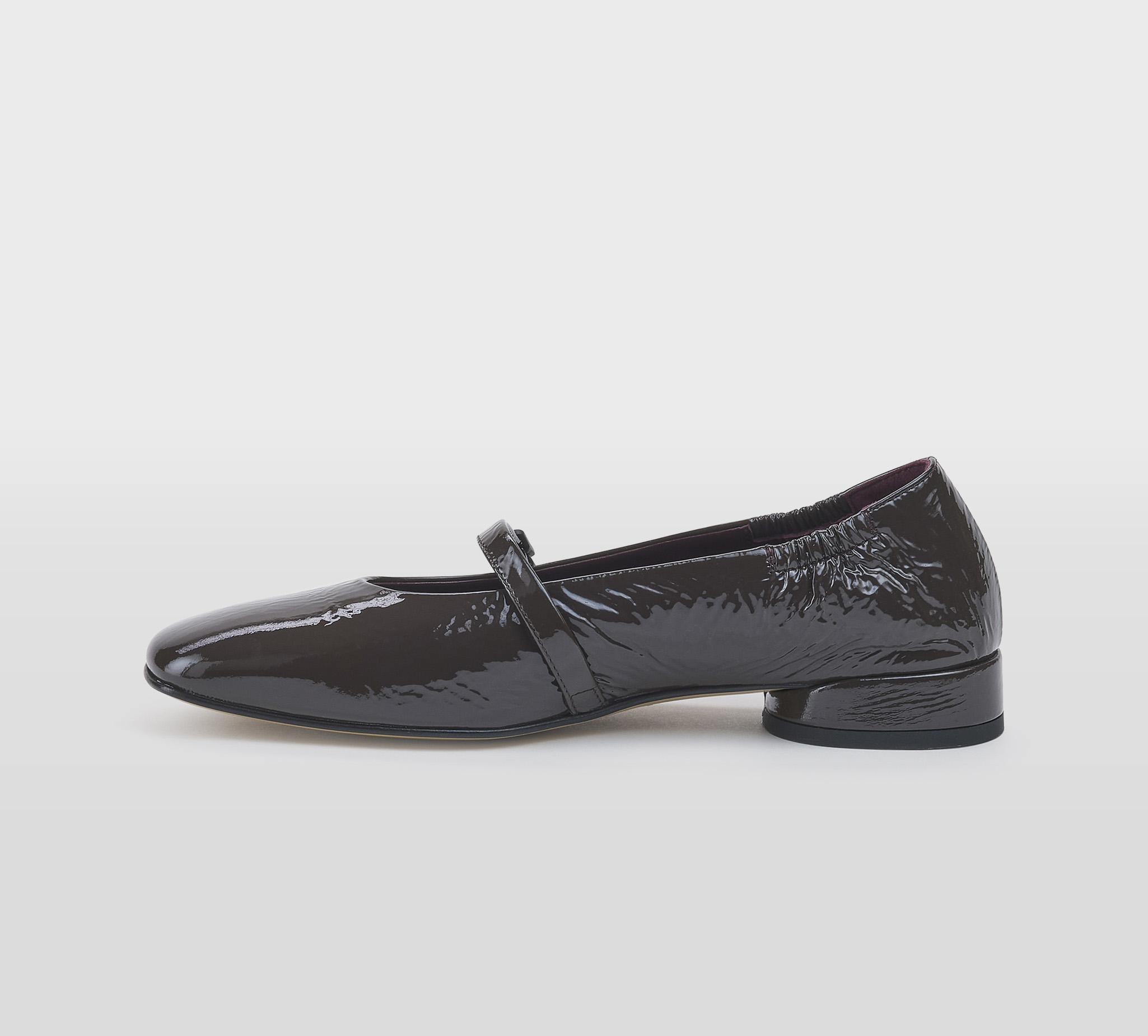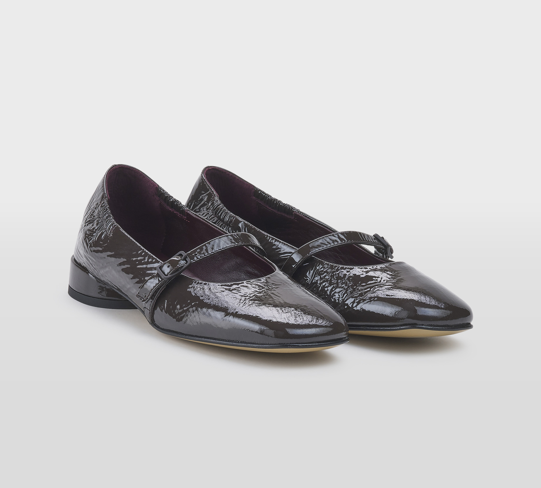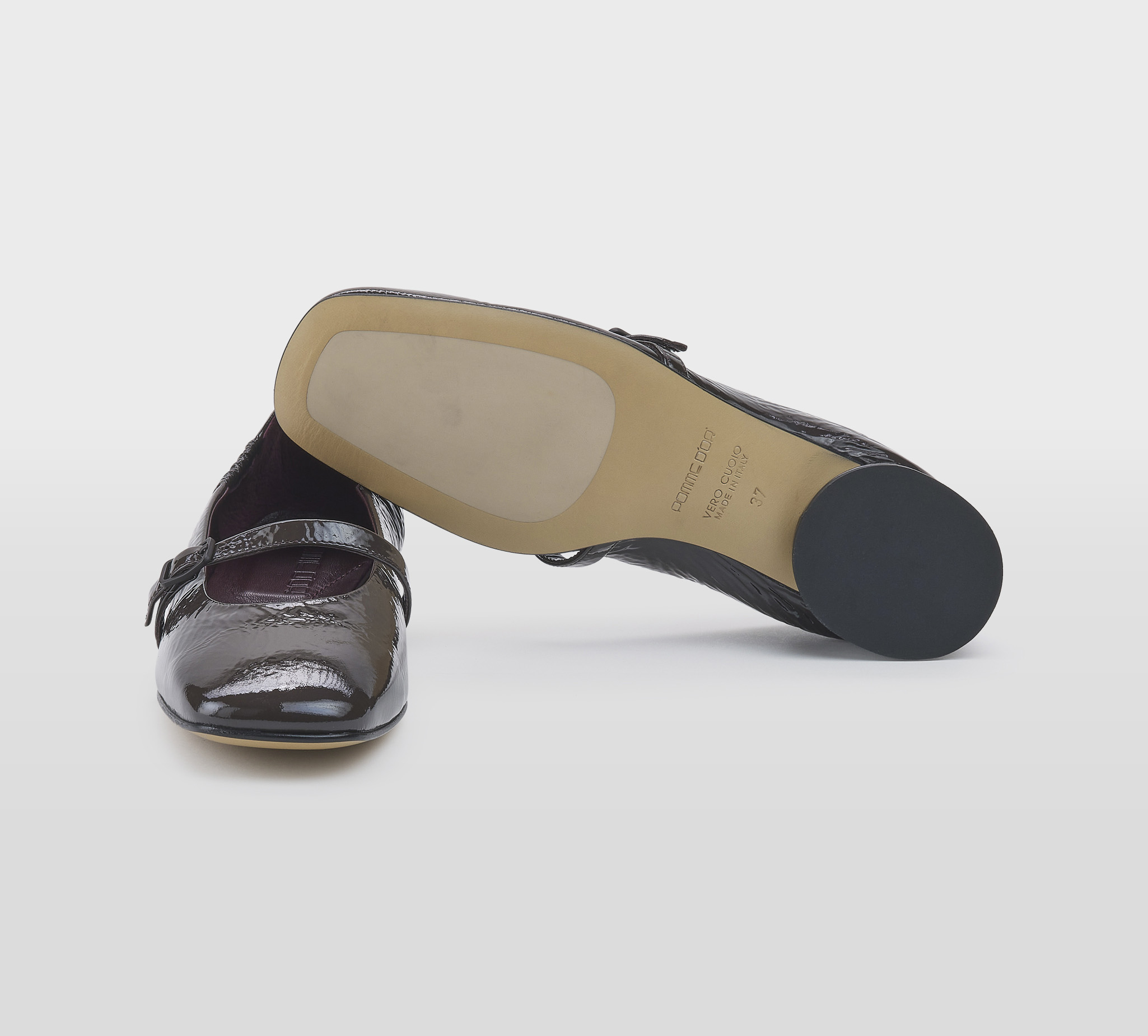 Bebè vernice coffee -cinturino coffee -tacco cm 2 -calzata regolare Fondo cuoio con mezza gomma FW 25