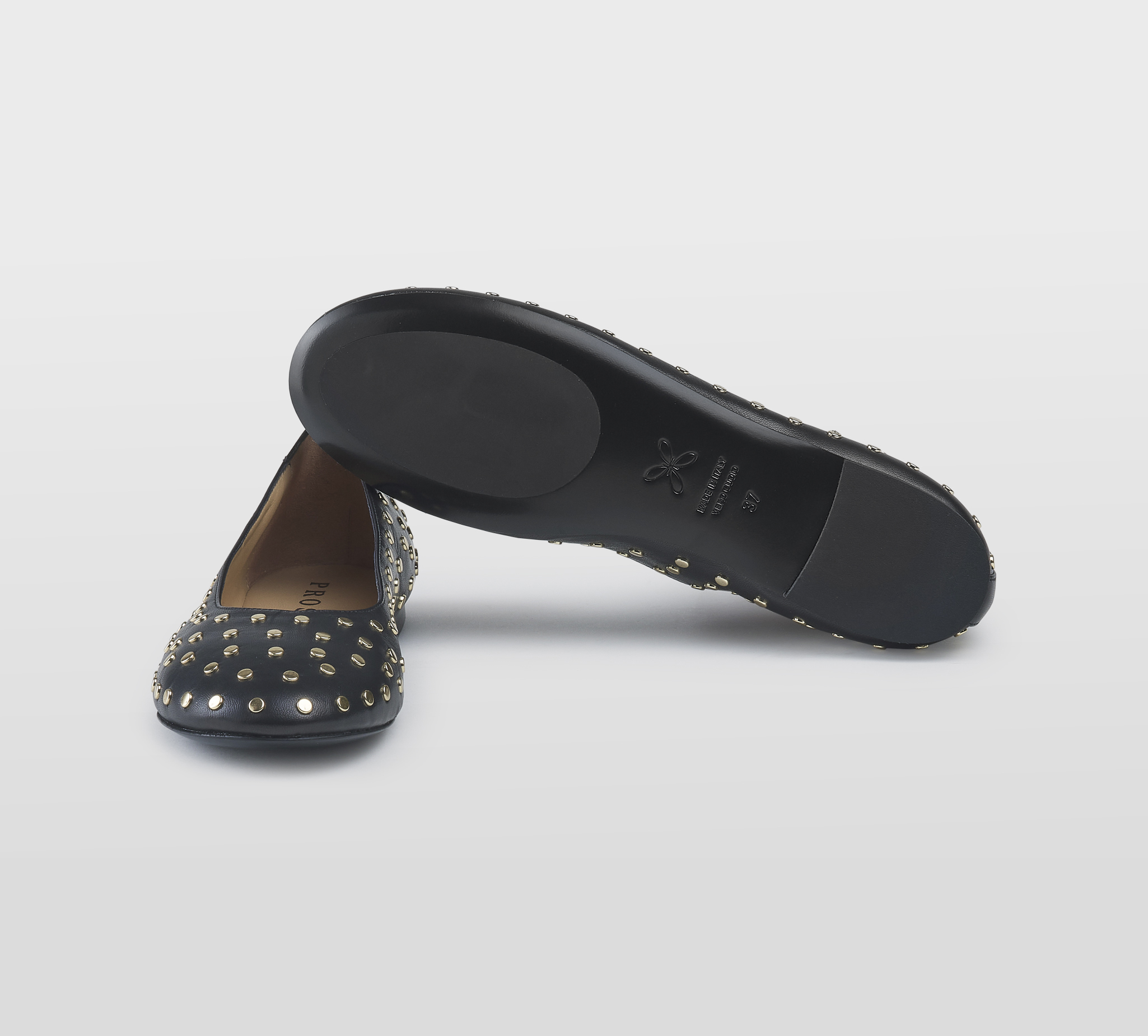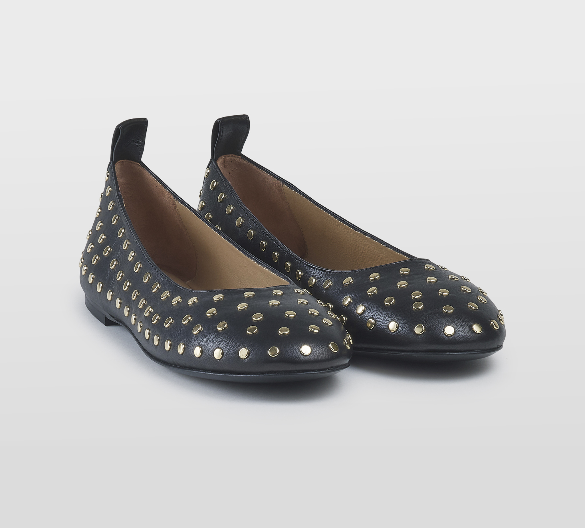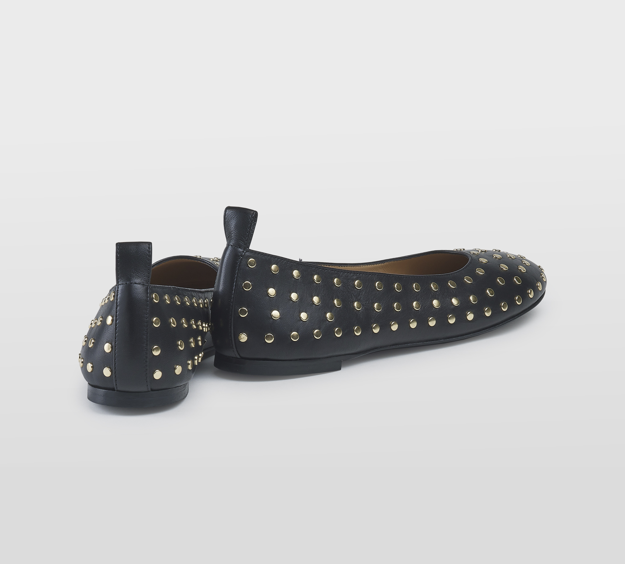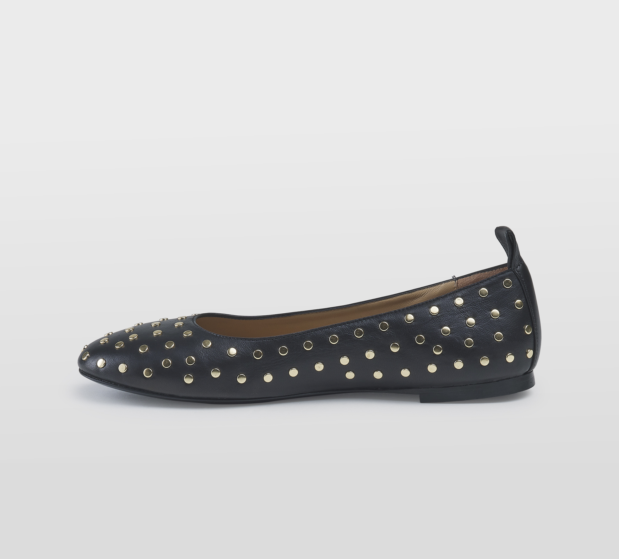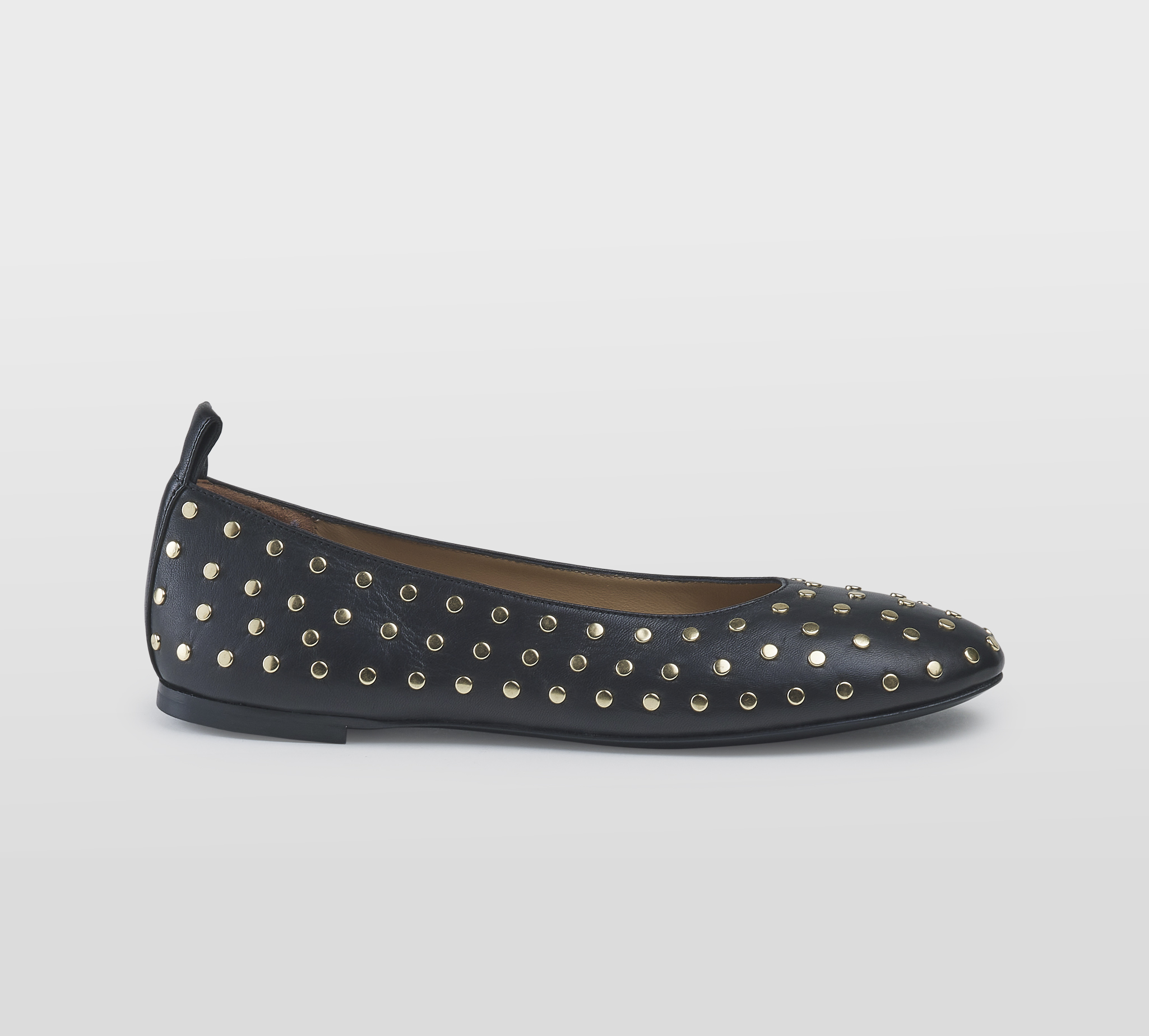 Ballerina in pelle nero -borchie oro -tacco cm 1 -calzata regolare Fondo gomma Made in Italy SS26