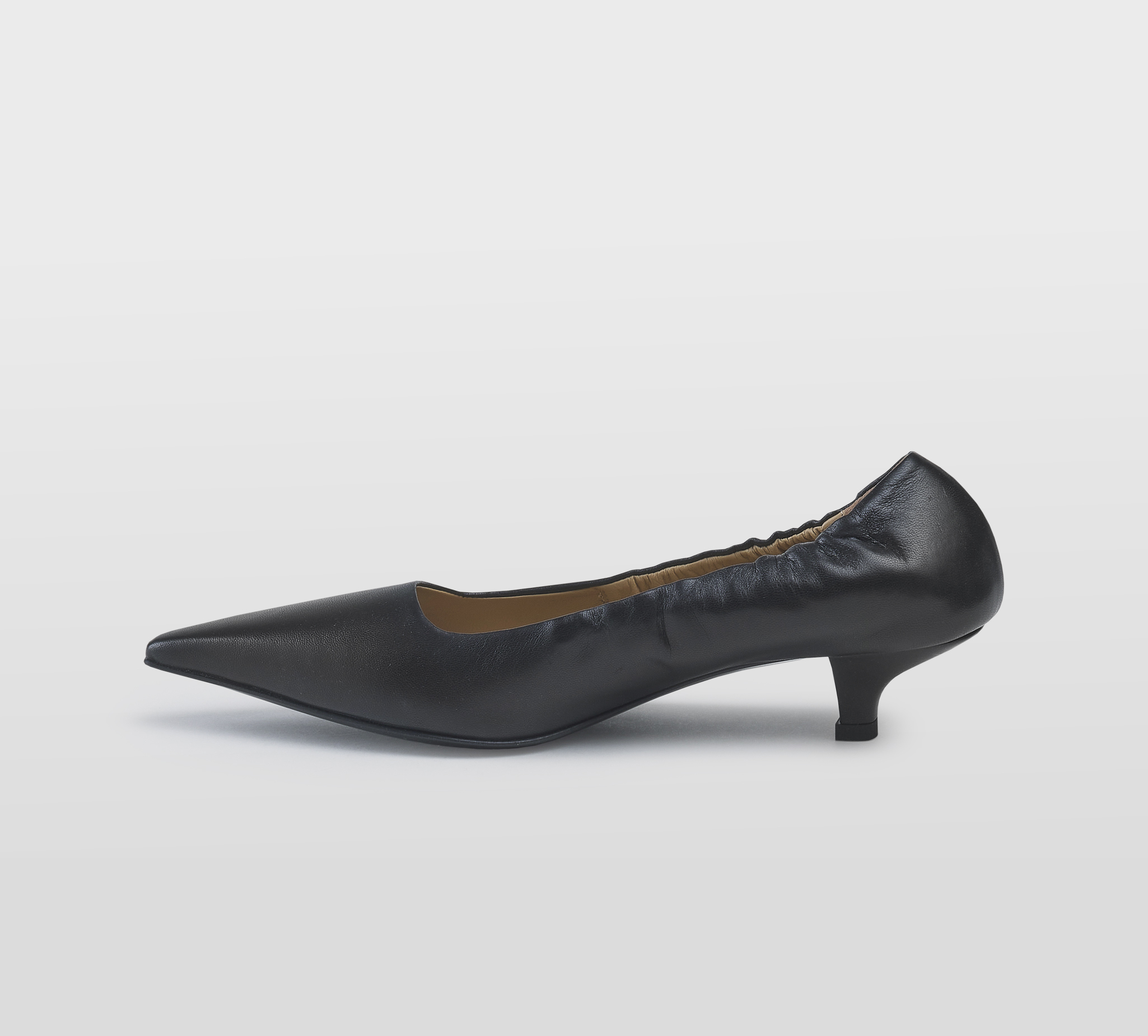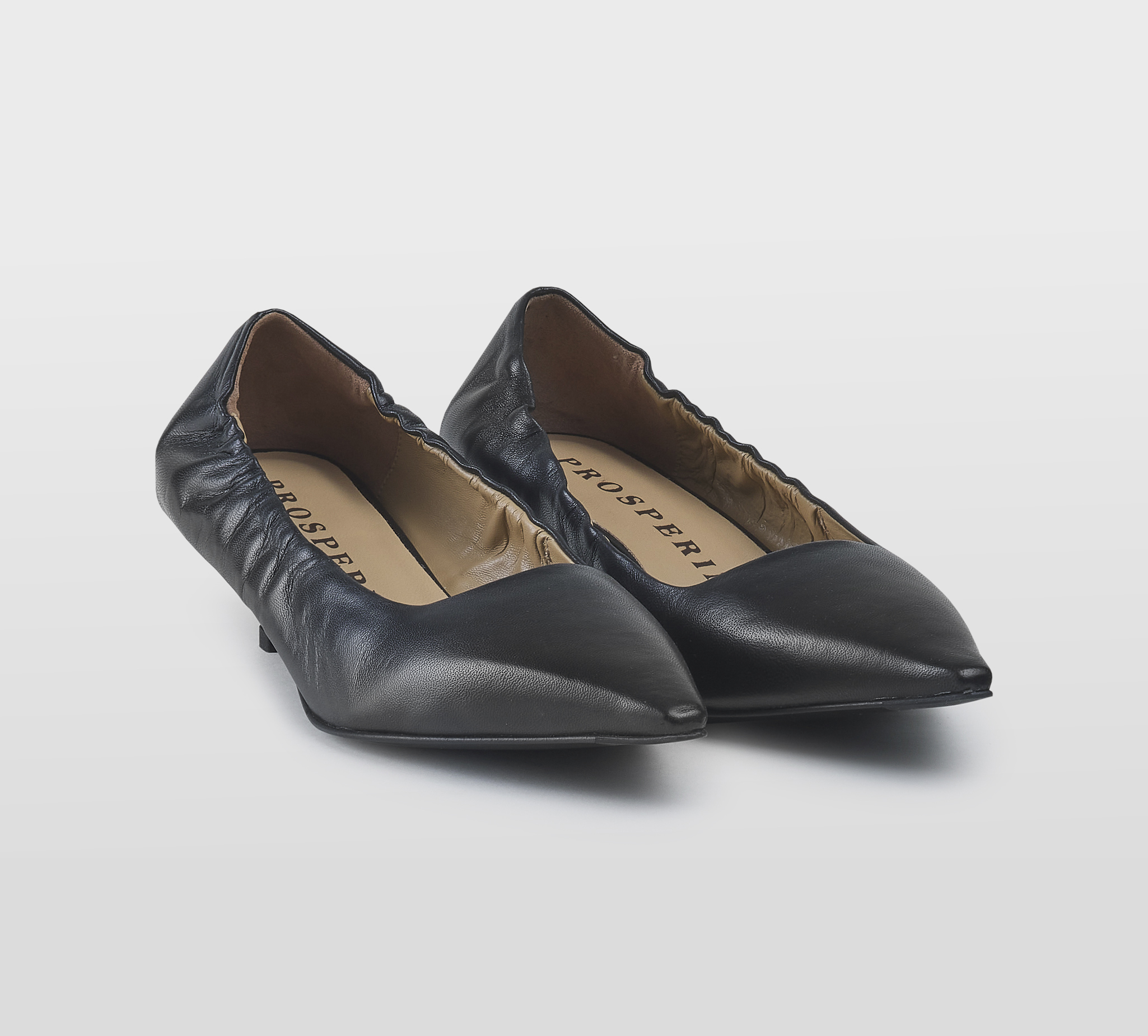Decolte’ arricciata pelle nero -tacco cm 3 -calzata regolare Fondo gomma Made in Italy FW 25