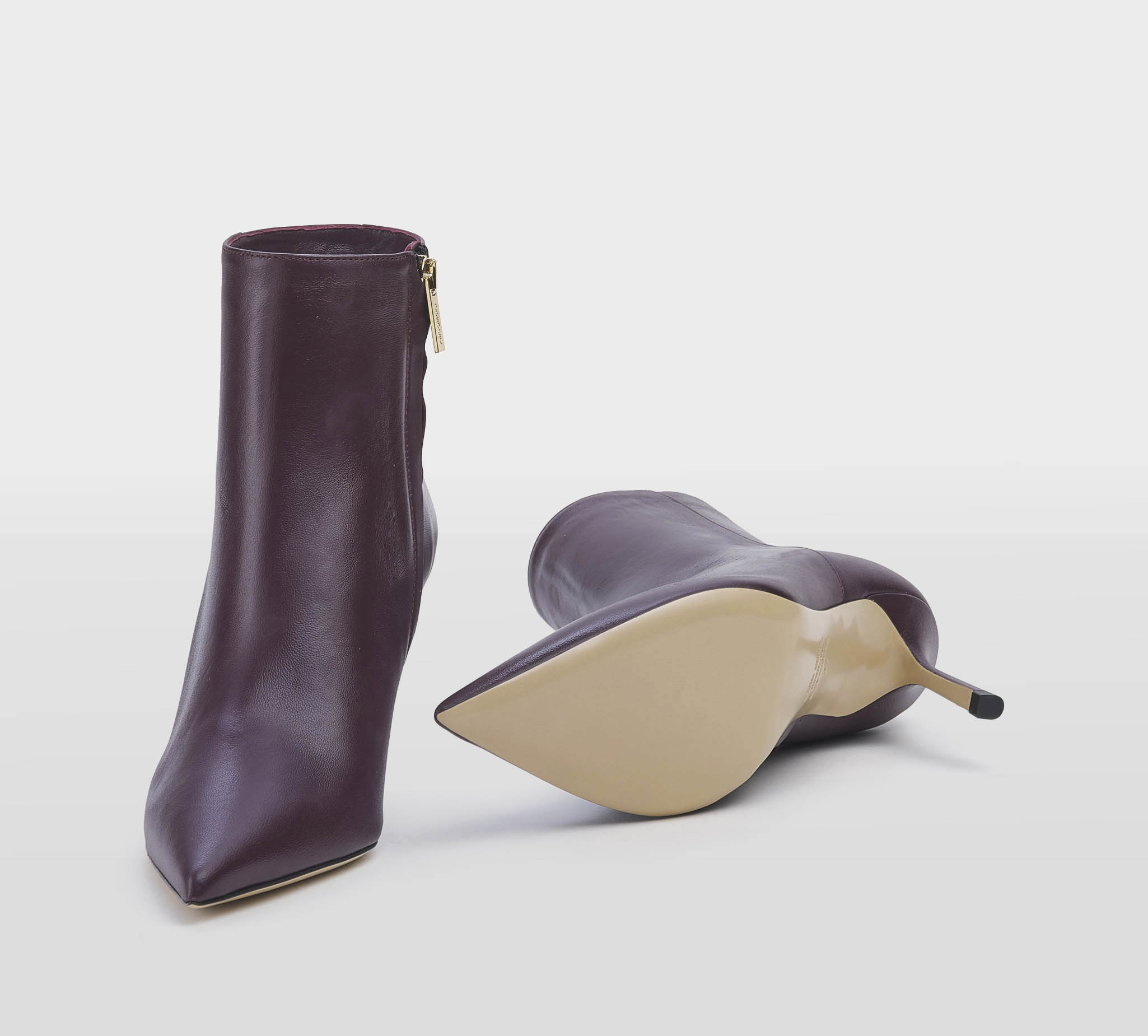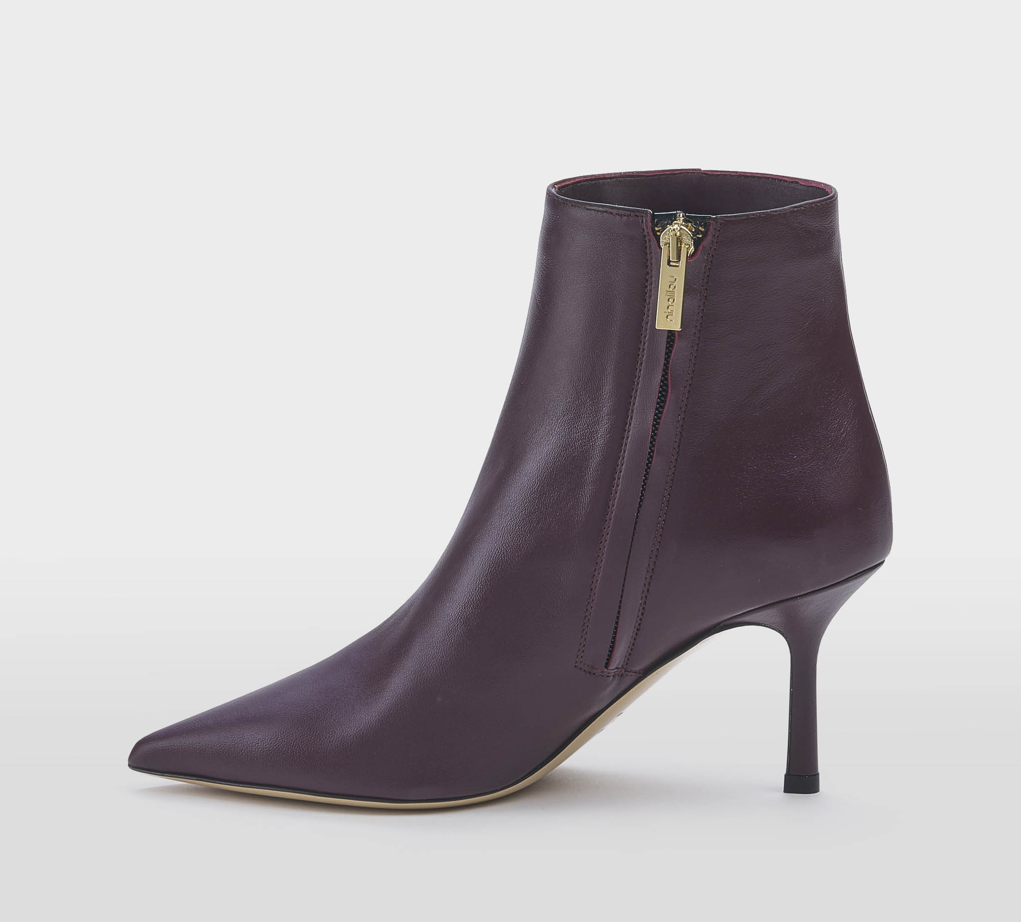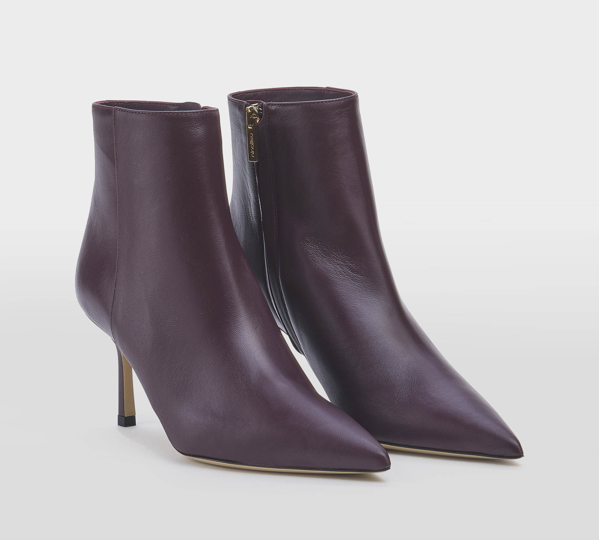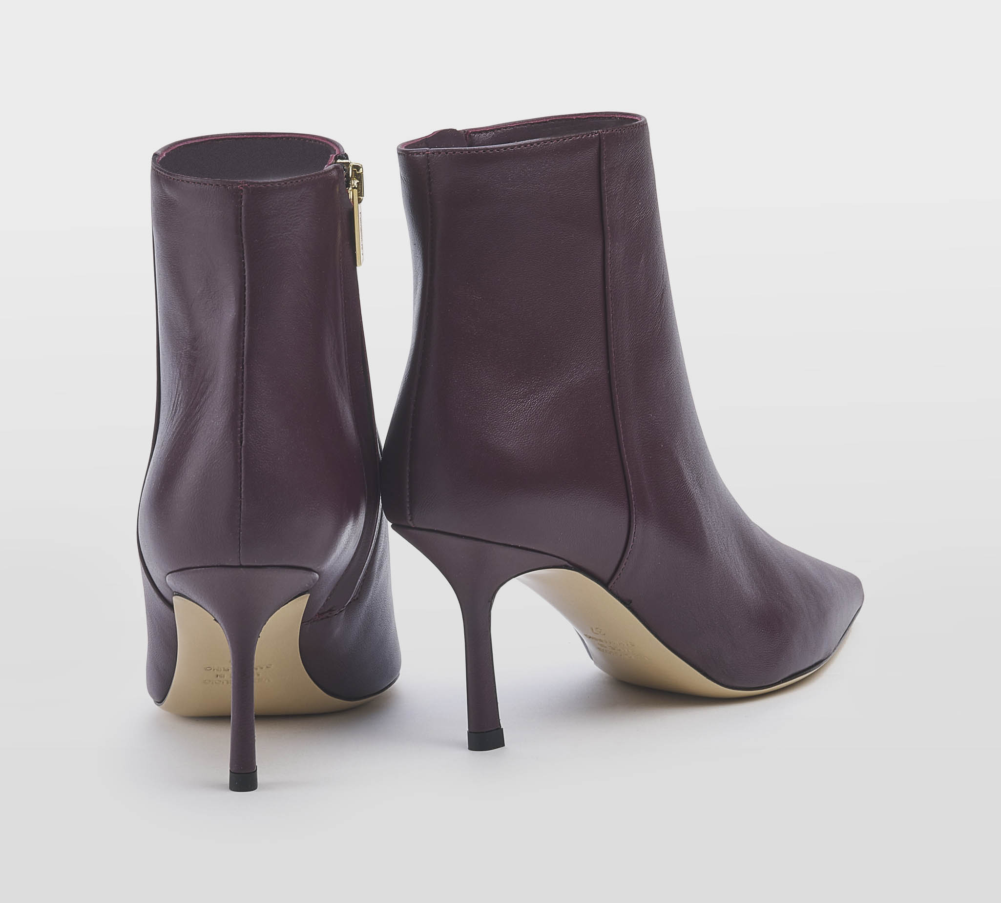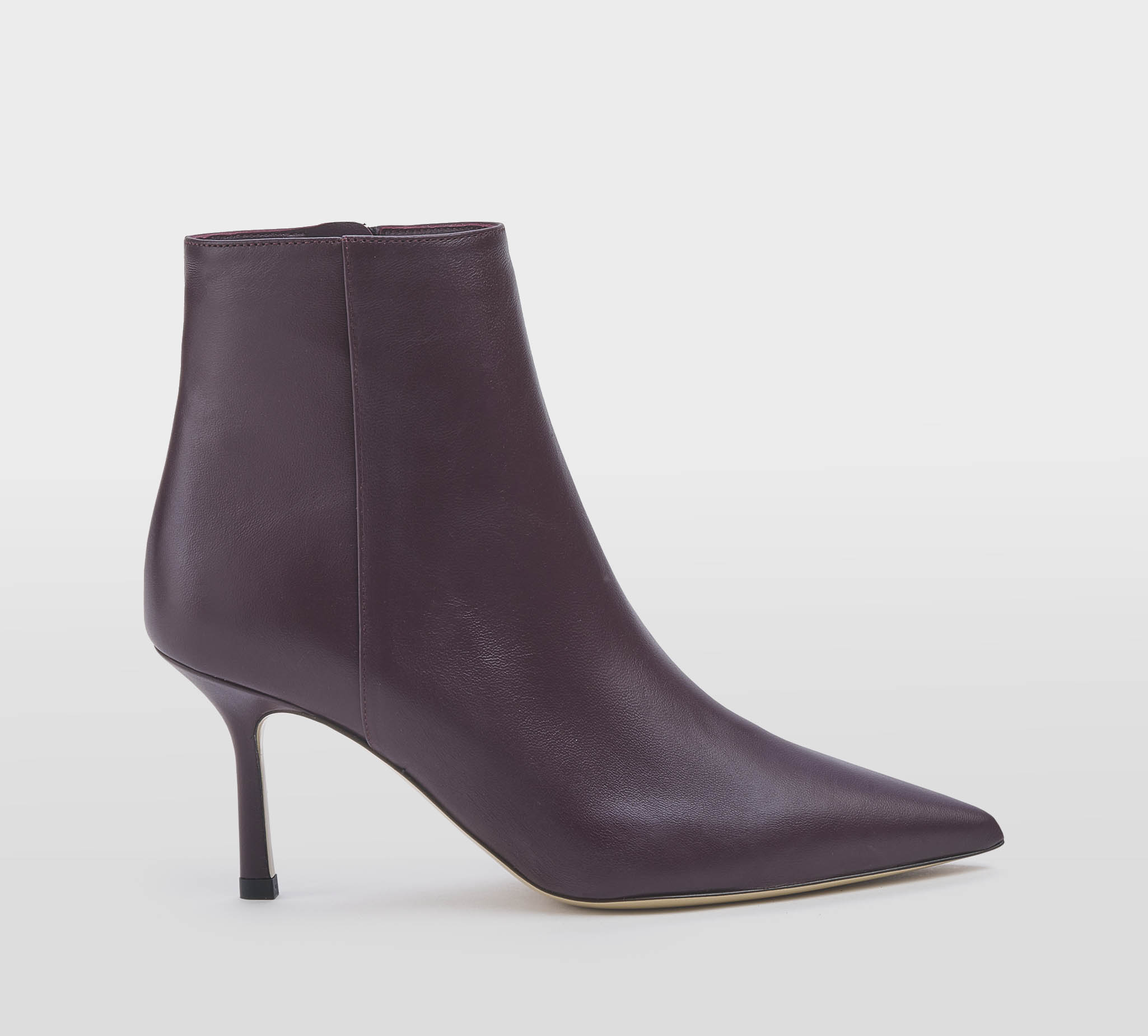 Stivaletto in pelle merlot -zip interna -tacco stiletto cm 8 -calzata regolare Fondo cuoio Made in S.Marino FW 25