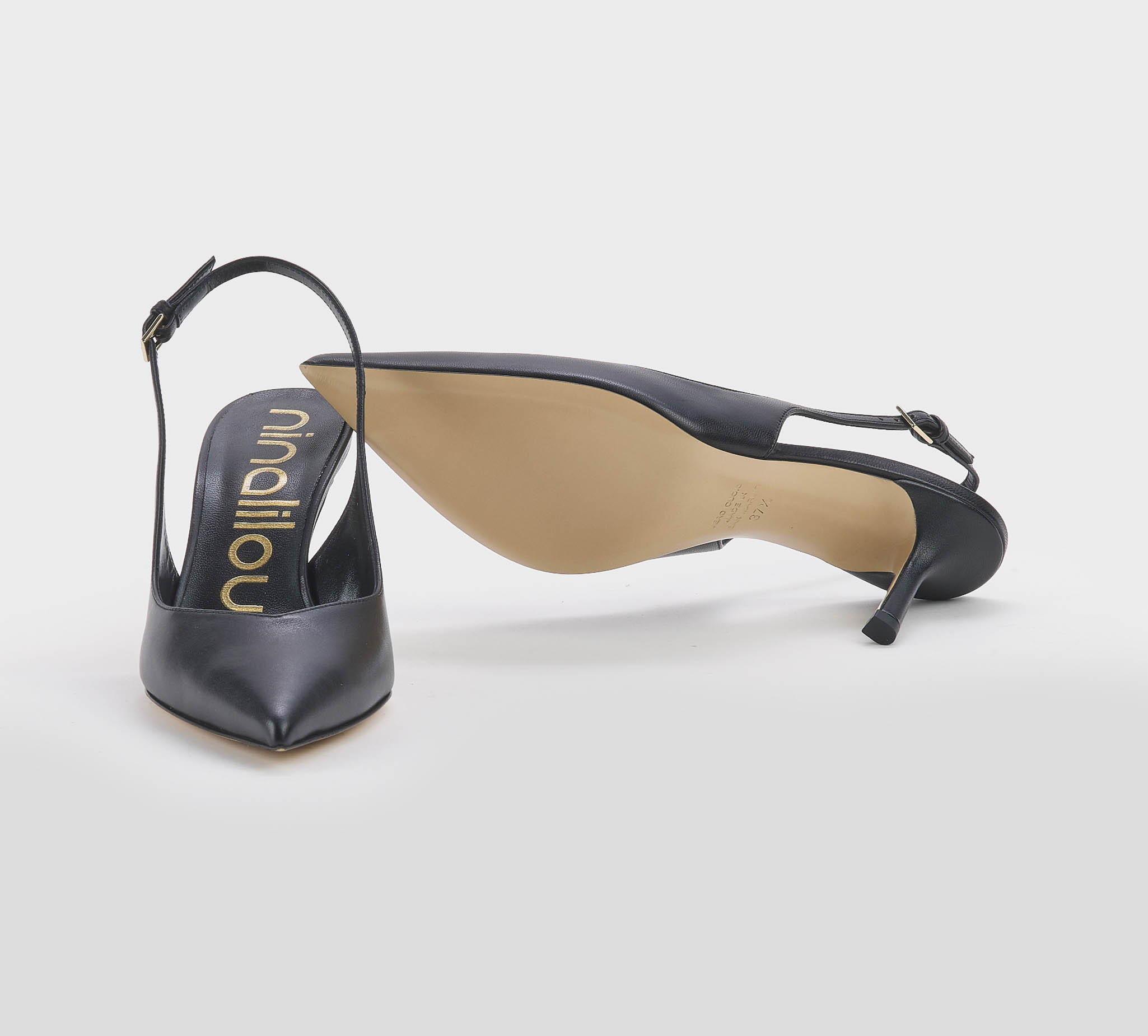 Chanel in pelle nero -cinturino al tallone -fibbietta oro -tacco cm 8 -calzata regolare Fondo cuoio Dust bag inclusa Made in S.Marino ss26