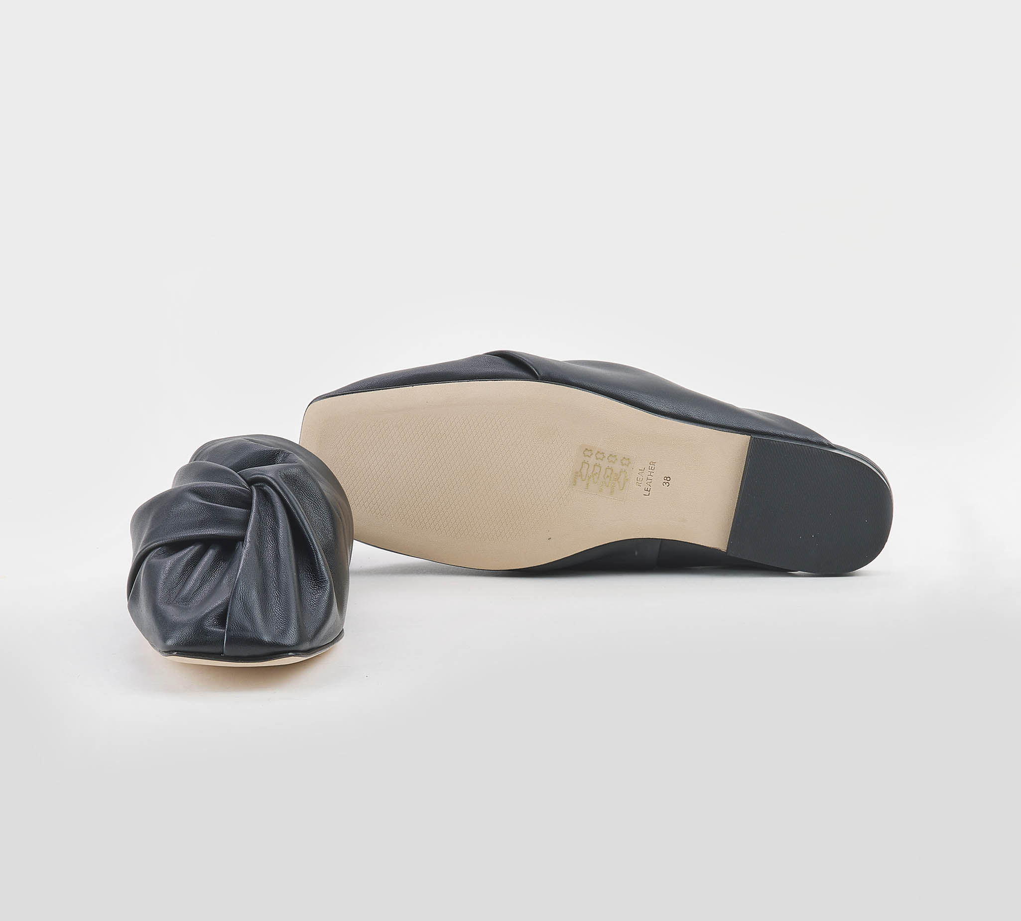 Slingback nodo in nappa nero -tacco cm 1 -calzata regolare Fondo cuoio SS 26