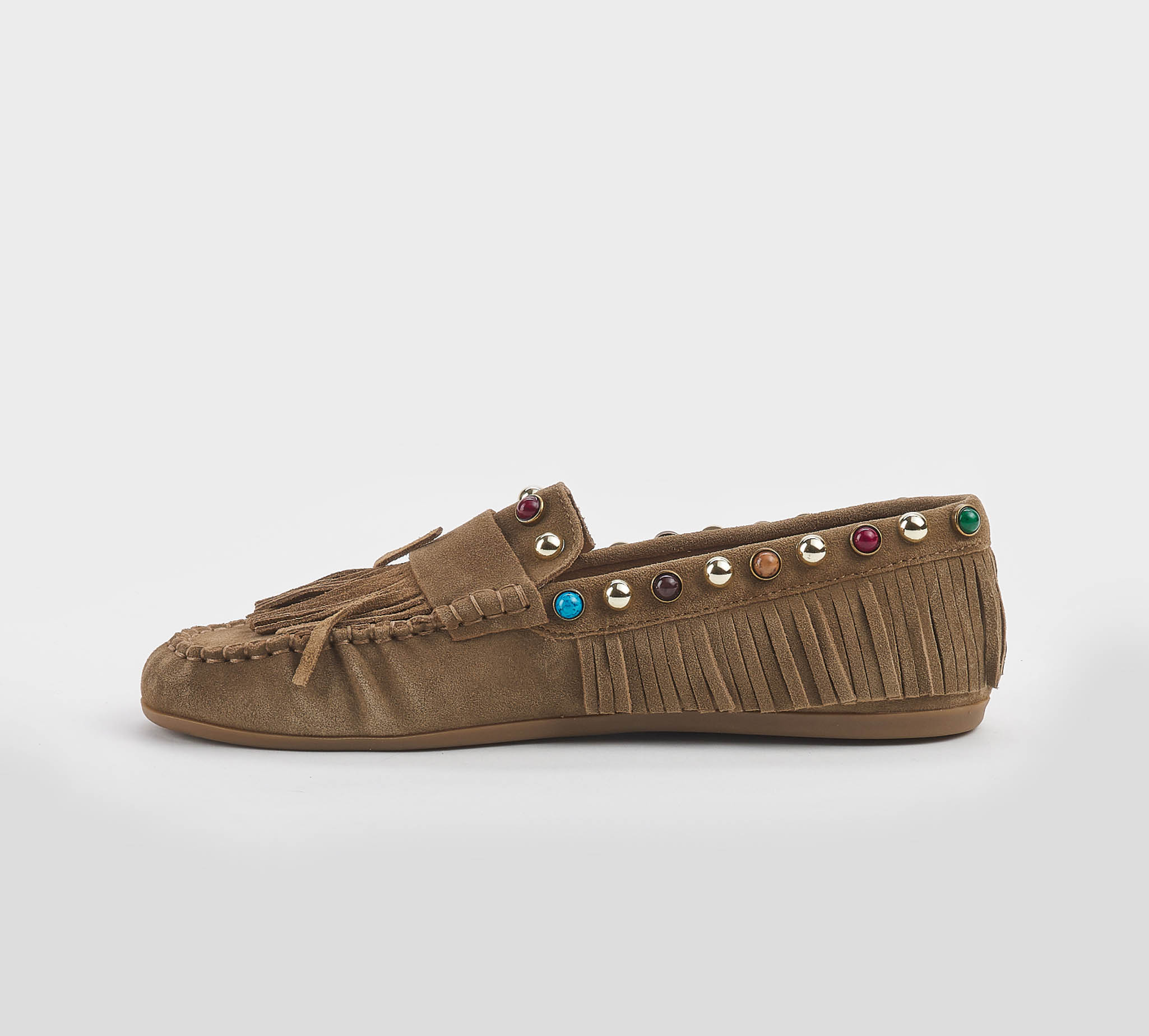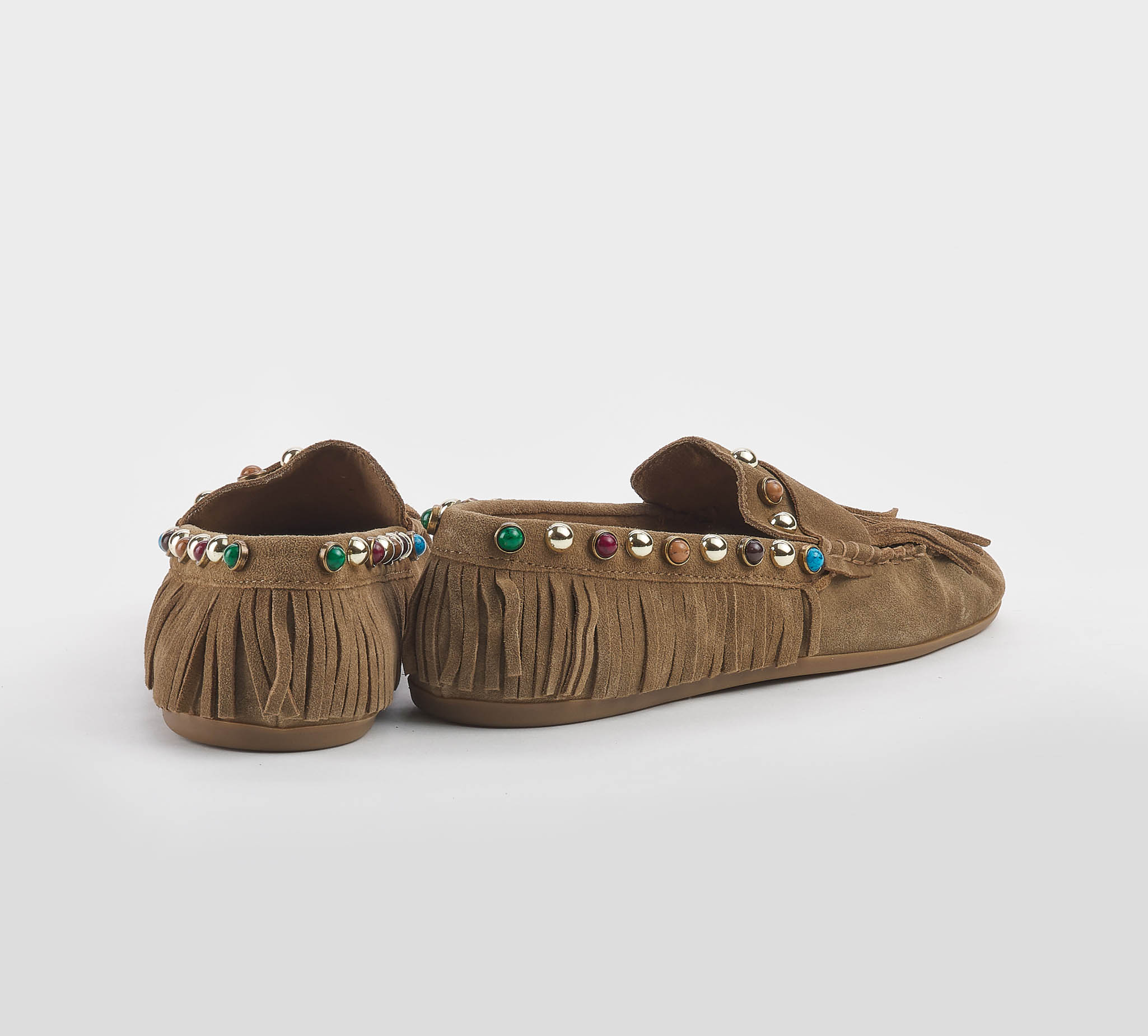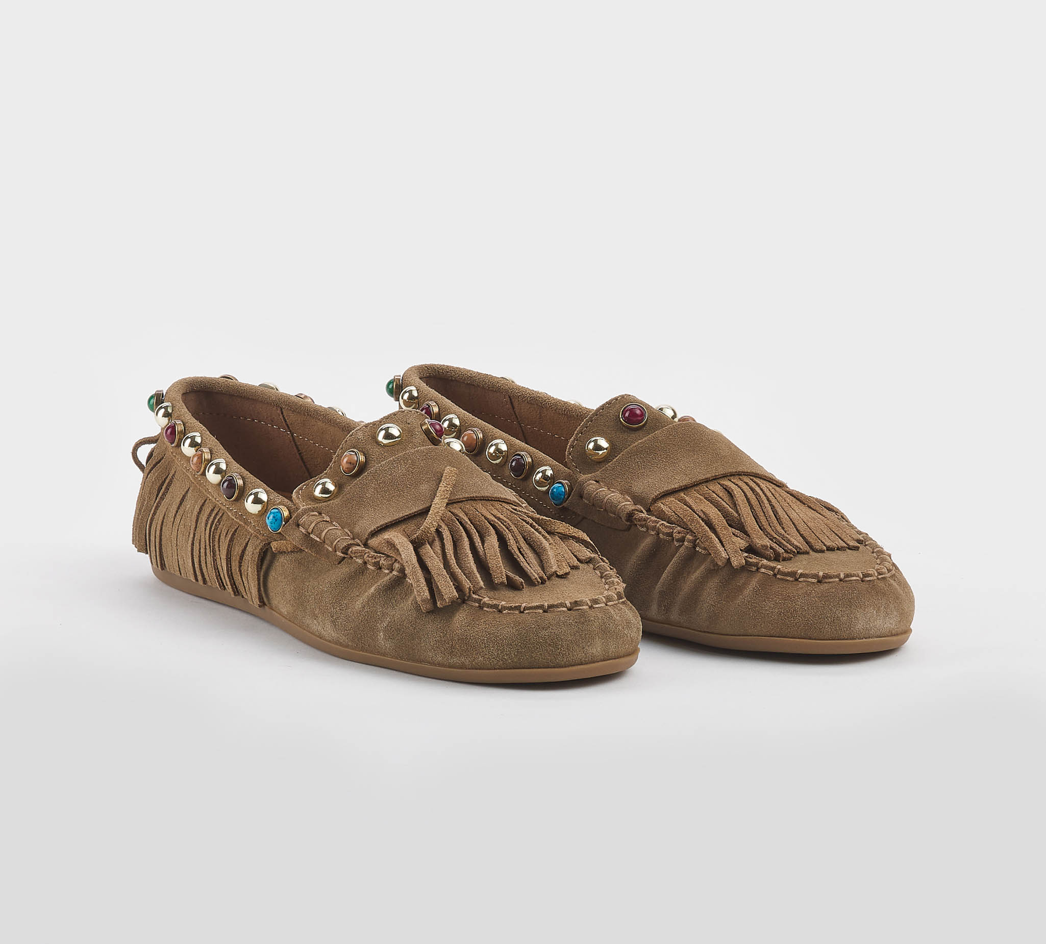 MOCASSINO INDIANO CAMOSCIO CUOIO