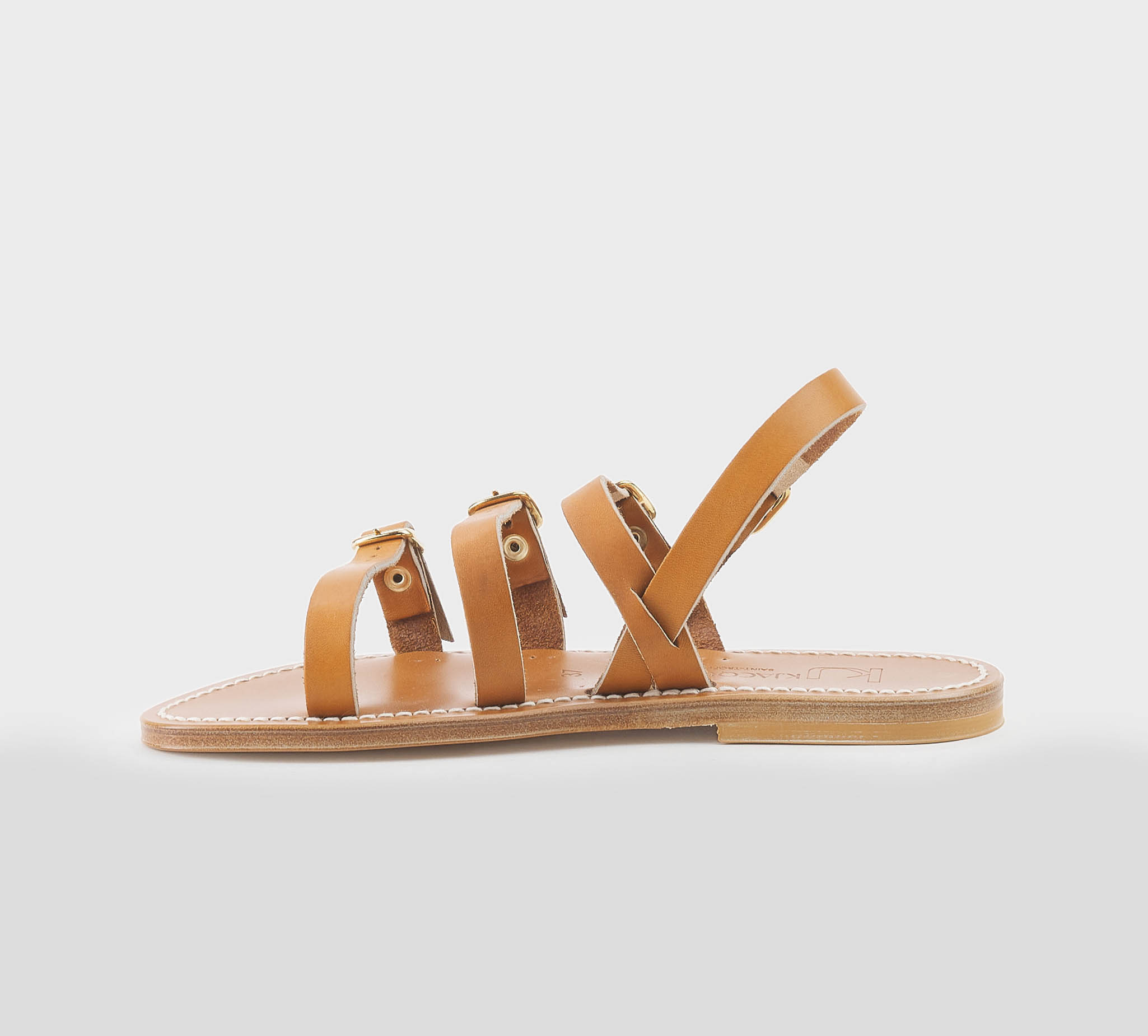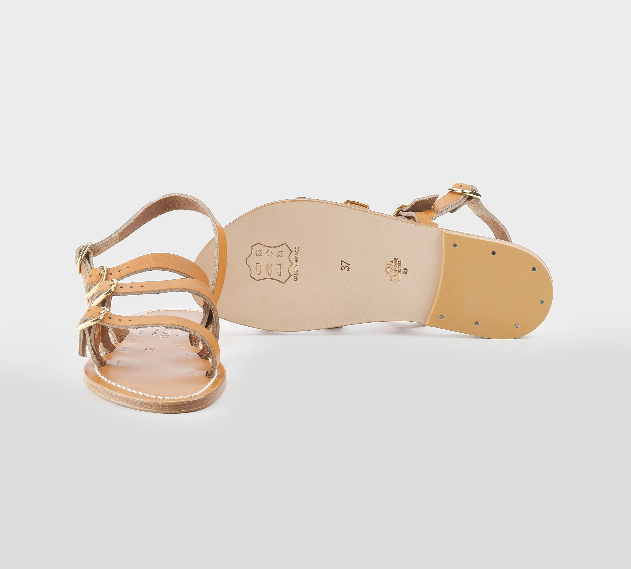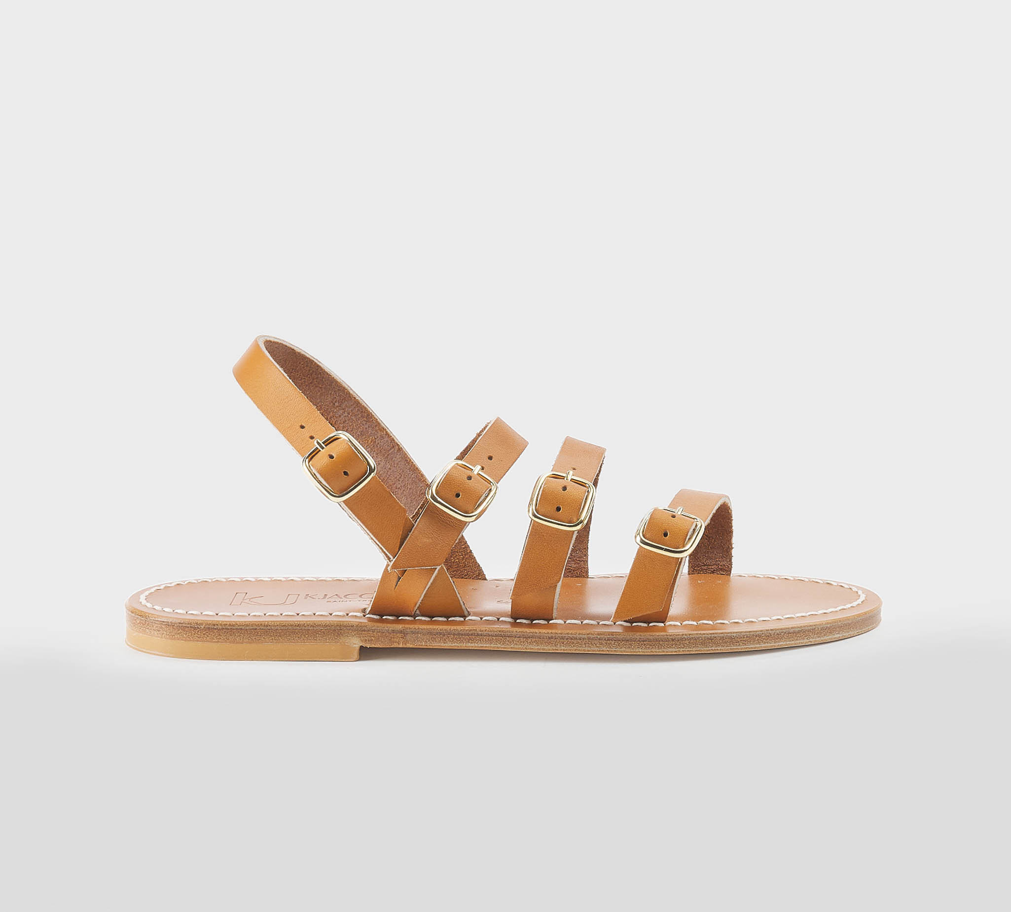 Sandalo pelle cuoio -listelli taglio vivo -fibbiette oro -tacco cm 1,5 -calzata scarsa Fondo cuoio Made in France,dust bag inclusa Summer 2026