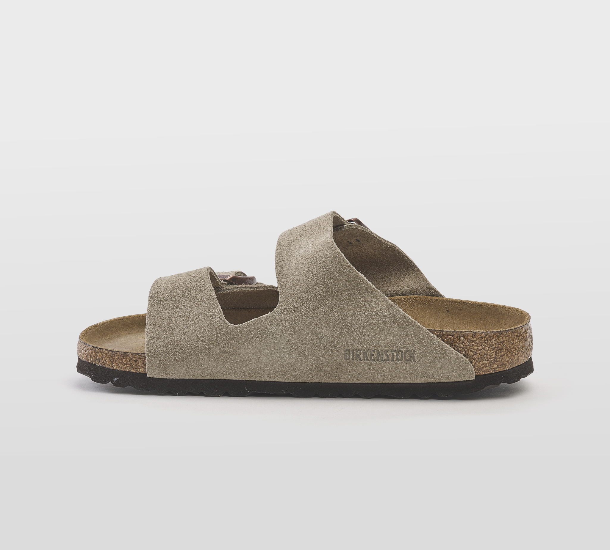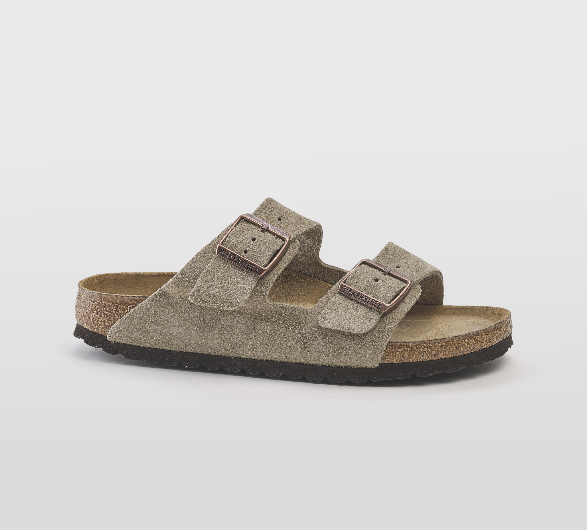 Ciabatta Arizona camoscio sabbia -fibbie rame -plantare anatomico -calzata regolare Fondo gomma nero Made in germany