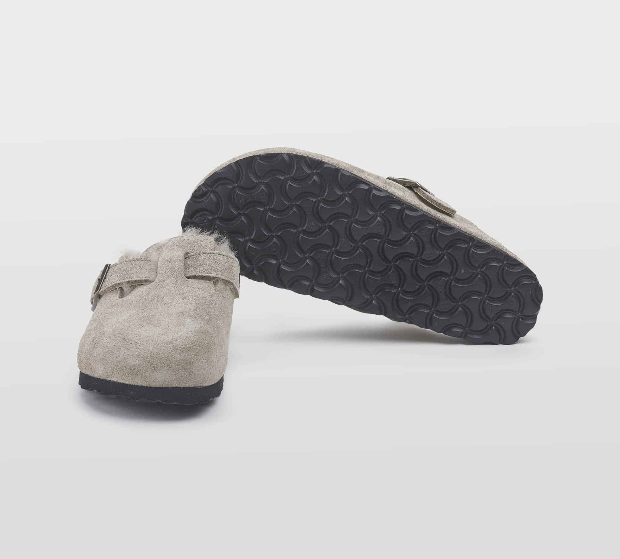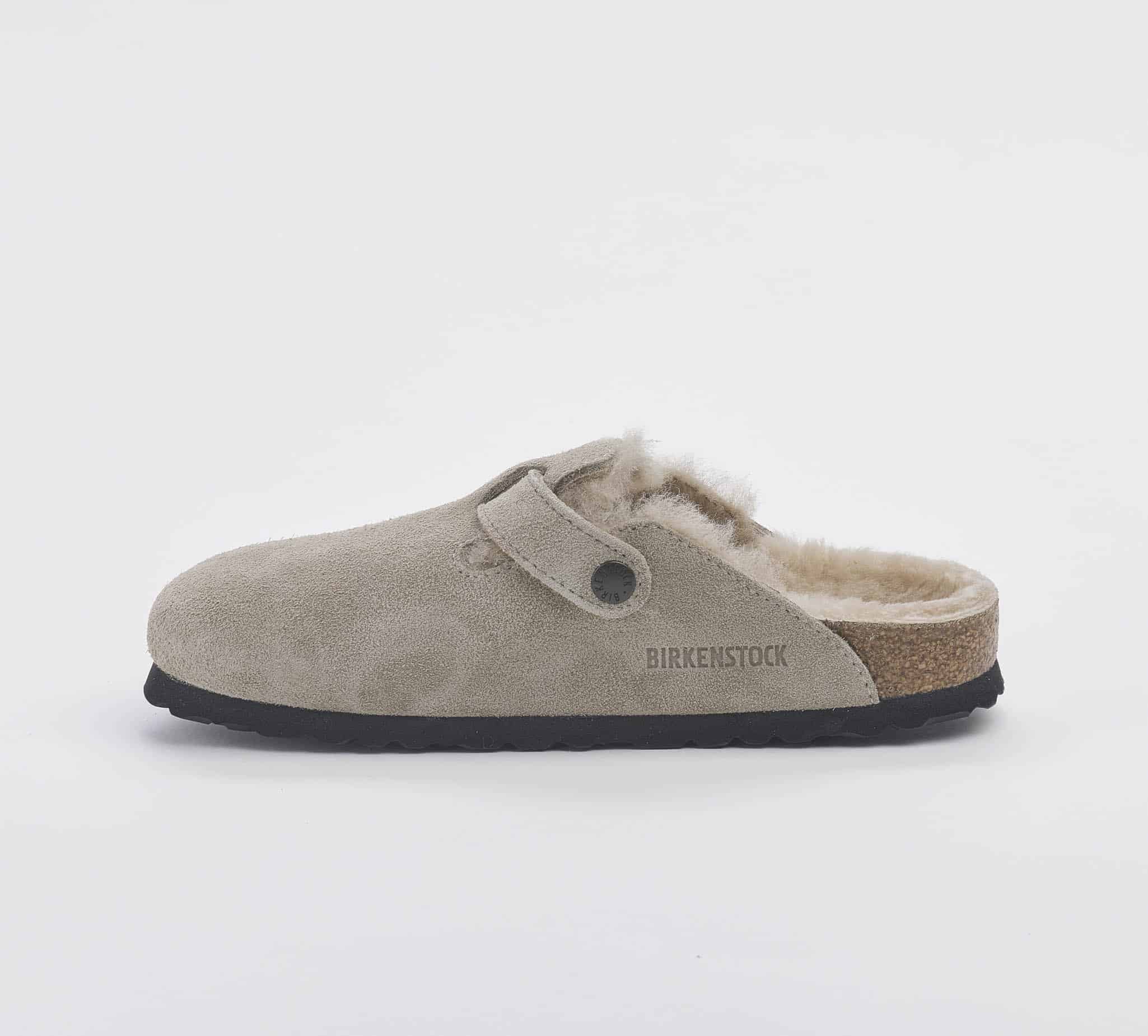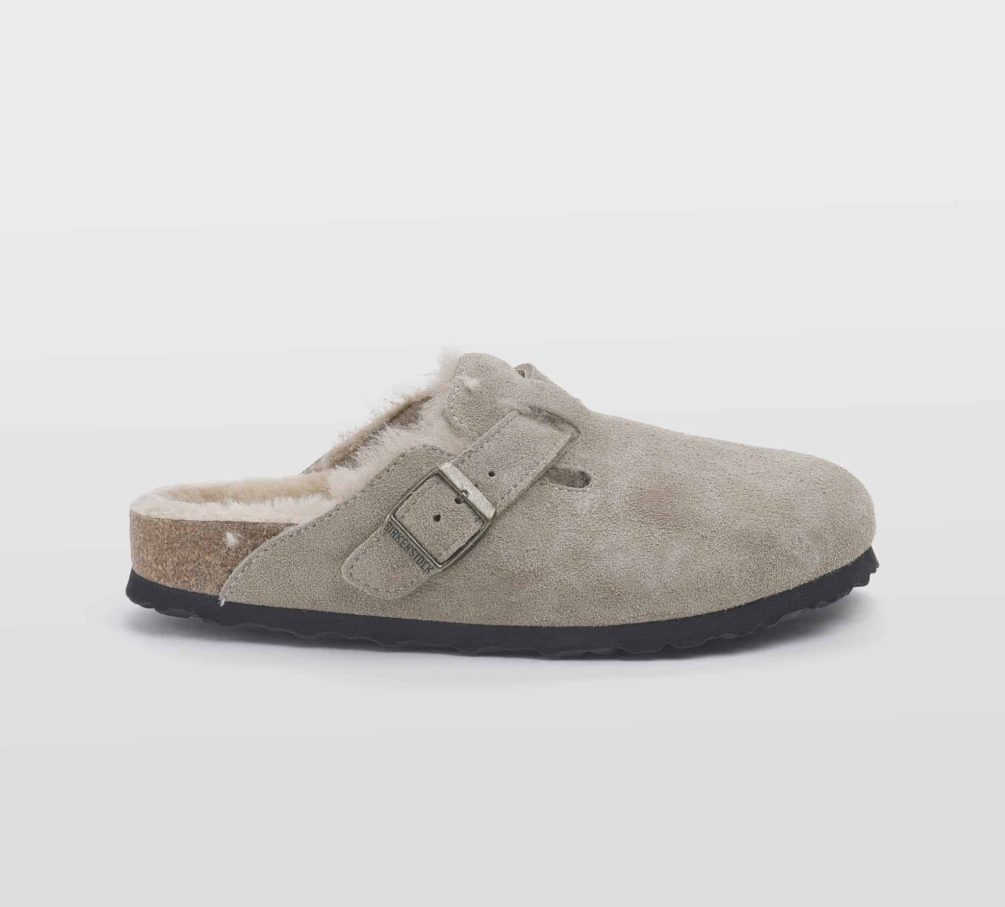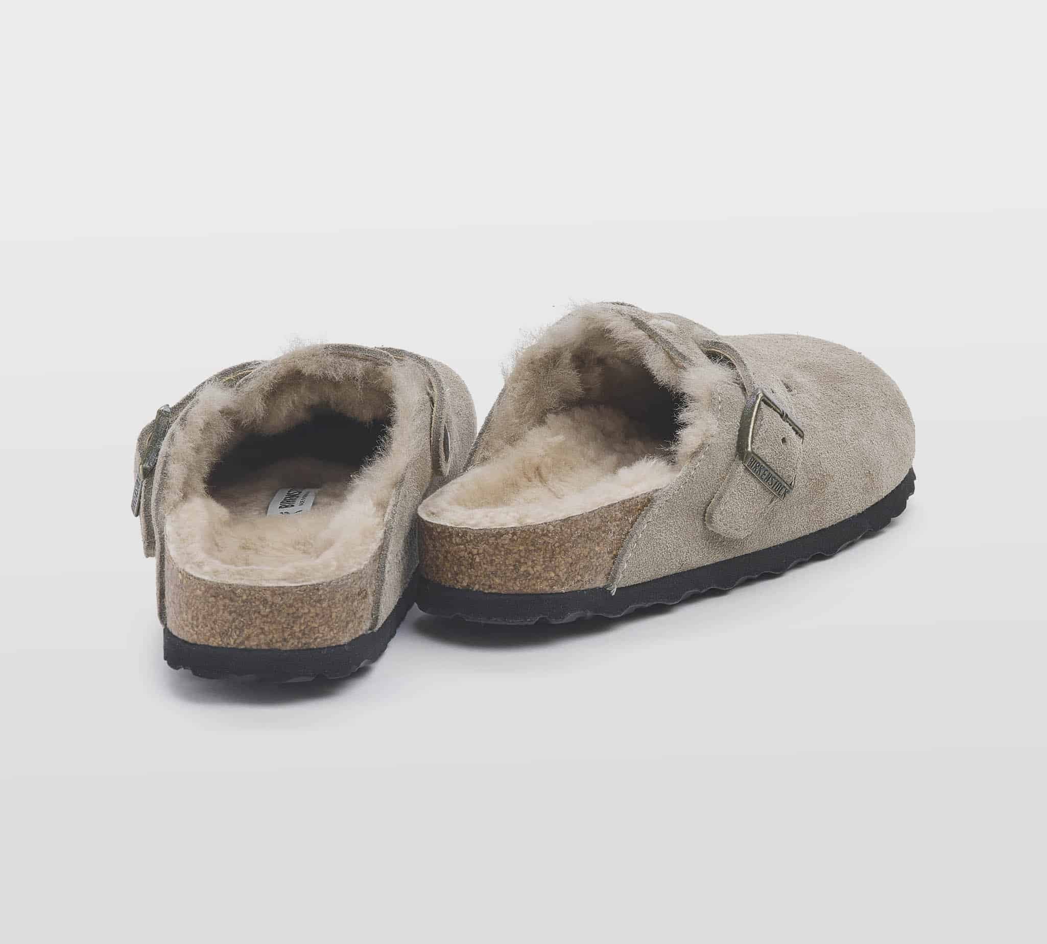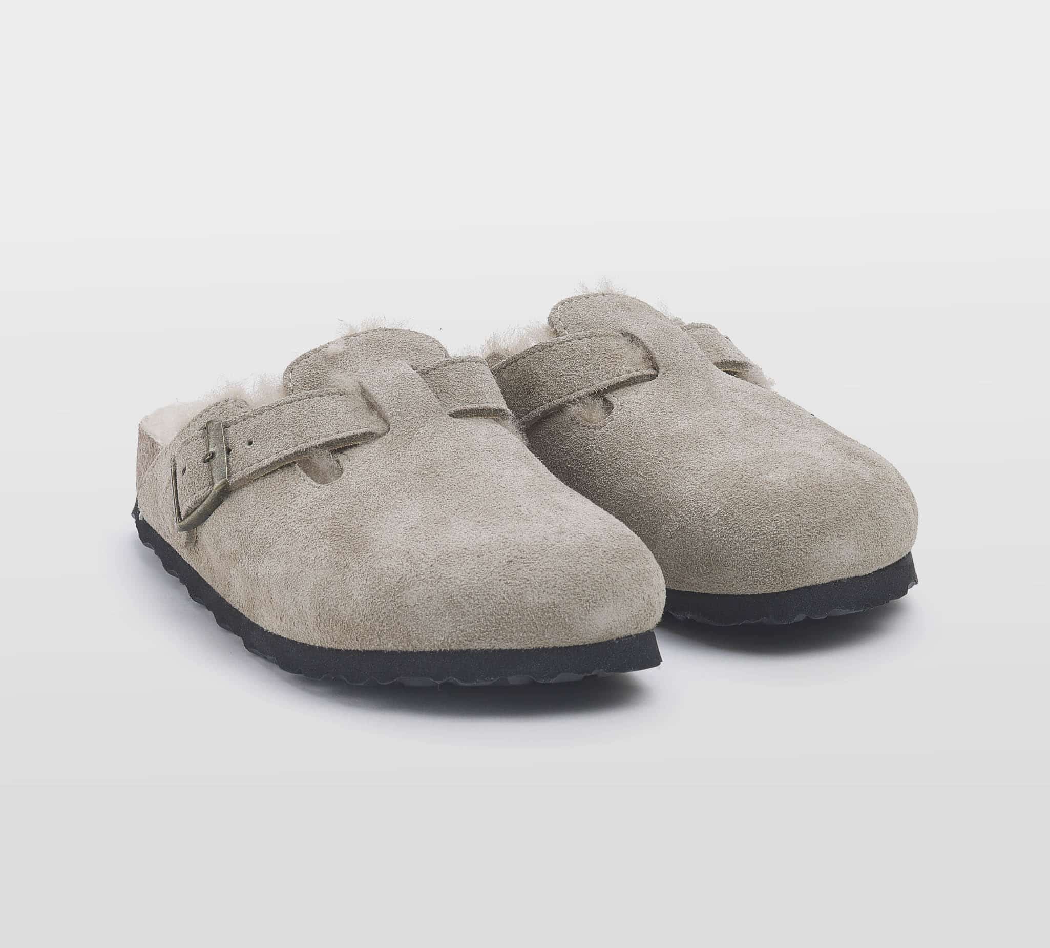 Boston shearling taupe -pelo beige -fibbia oro -plantare anatomico -calzata scarsa Fondo gomma nero Made in Germany FW 25