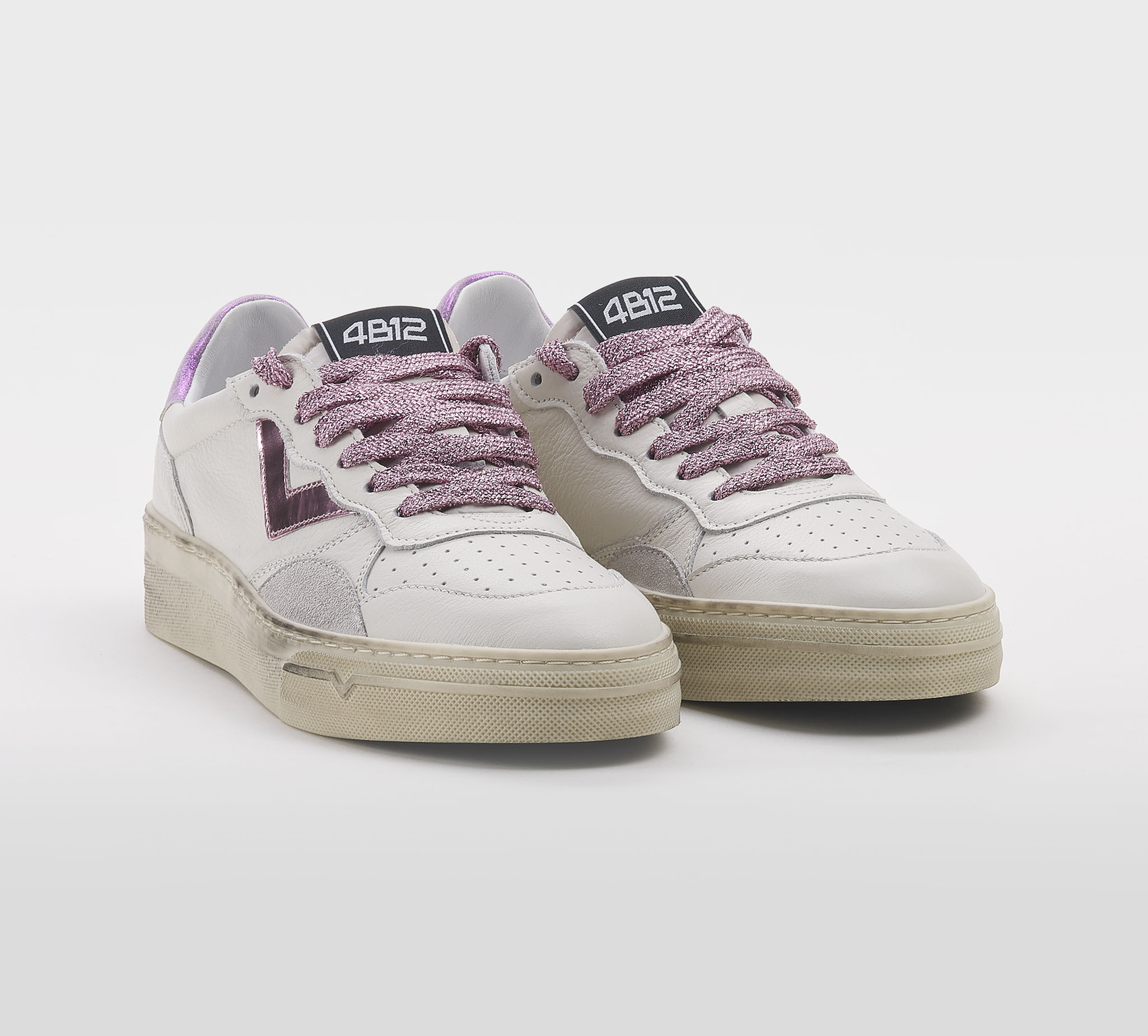 Sneakers in pelle bianco -talloncino e logo fuxia -laccio fuxia -calzata regolare Fondo gomma Made in Italy SS 26