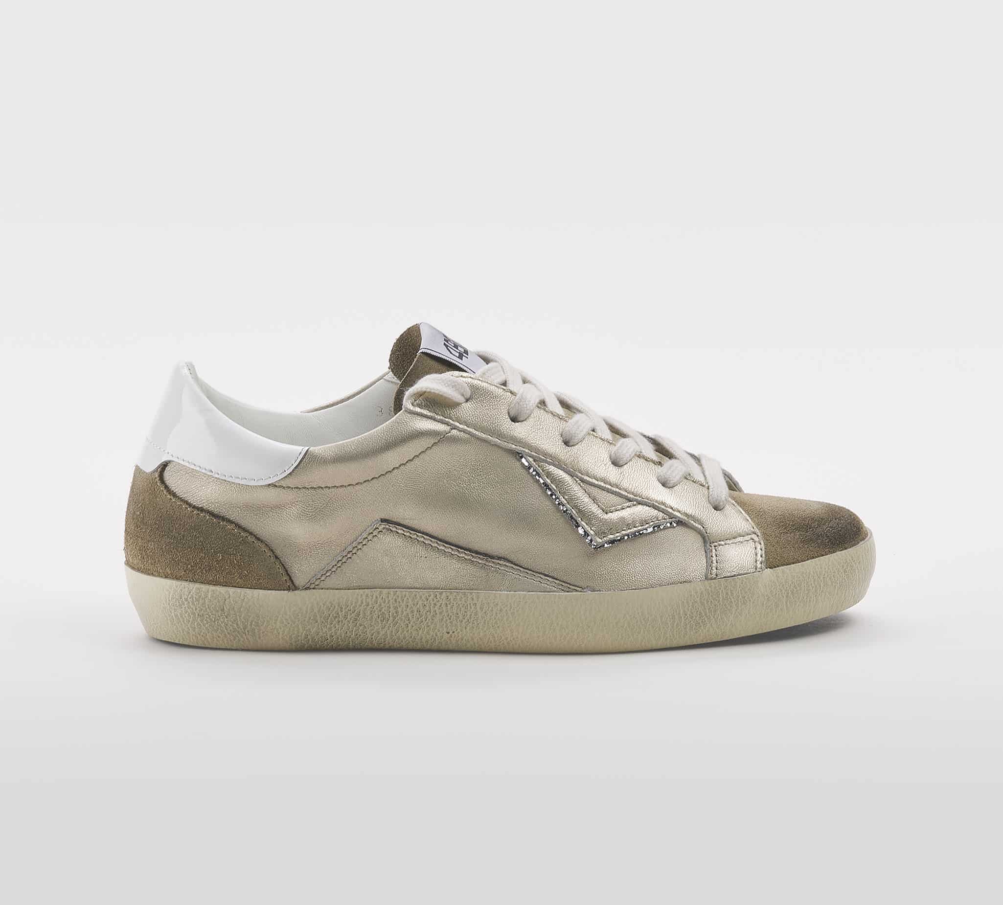 Sneakers in pelle platino -inserti camosco fango -laccio panna -plantare interno -calzata regolare Fondo gomma SS 26