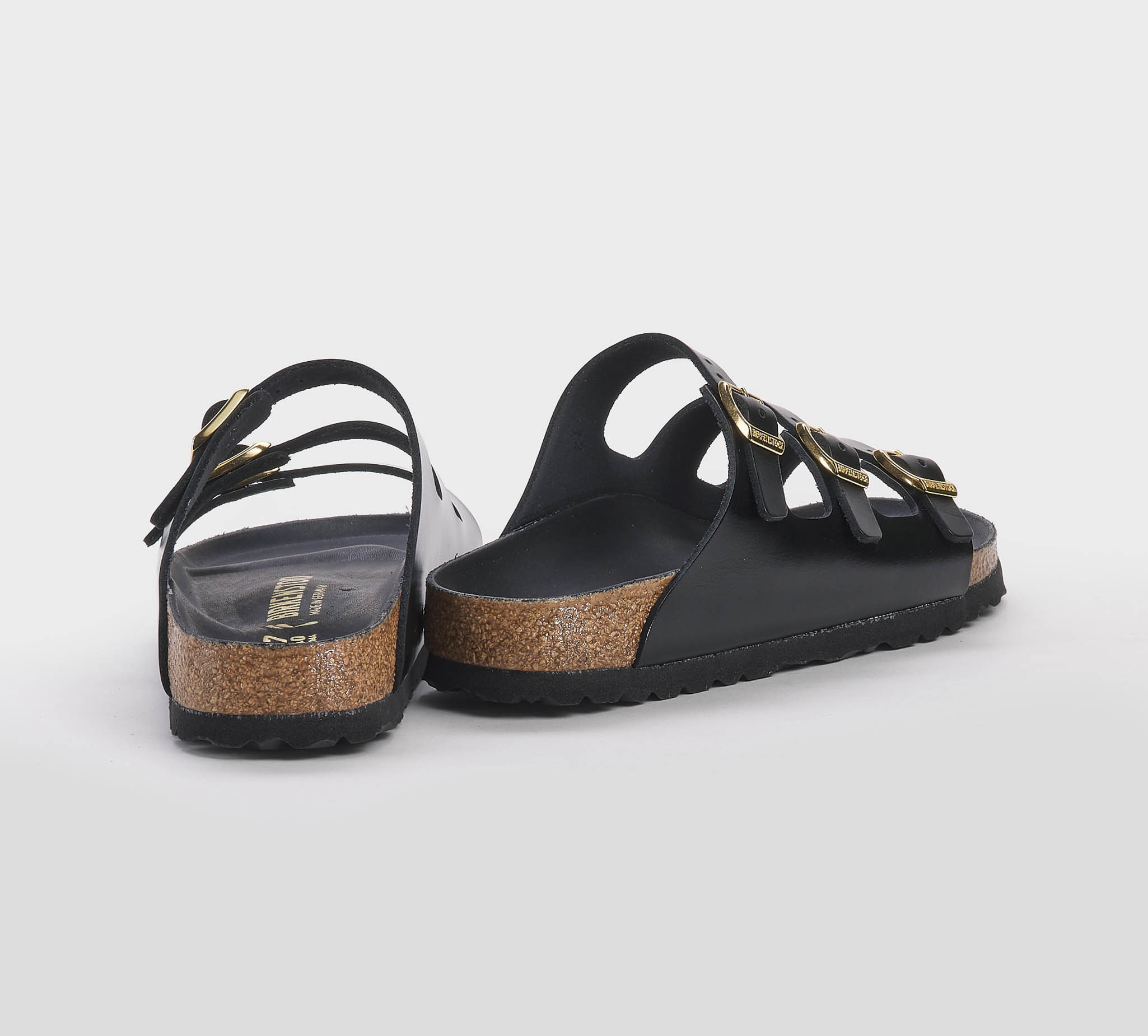 Ciabatta Florida in pelle nero -triplo cinturino -fibbiette nero -plantare anatomico -calzata regolare Fondo gomma nero Made in Germany SS 25