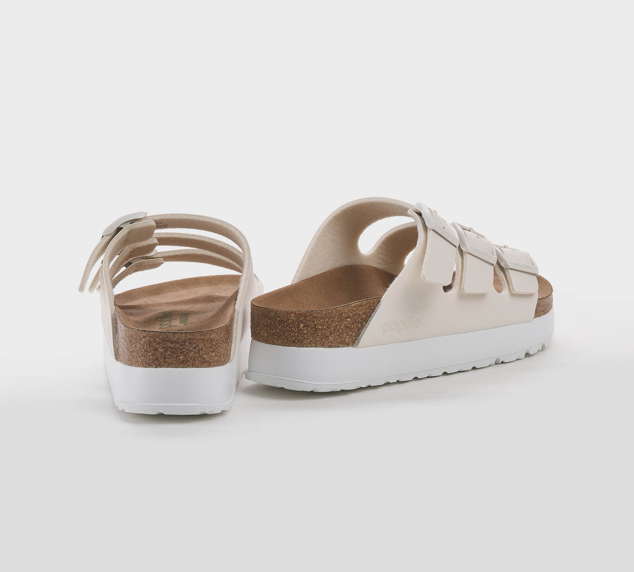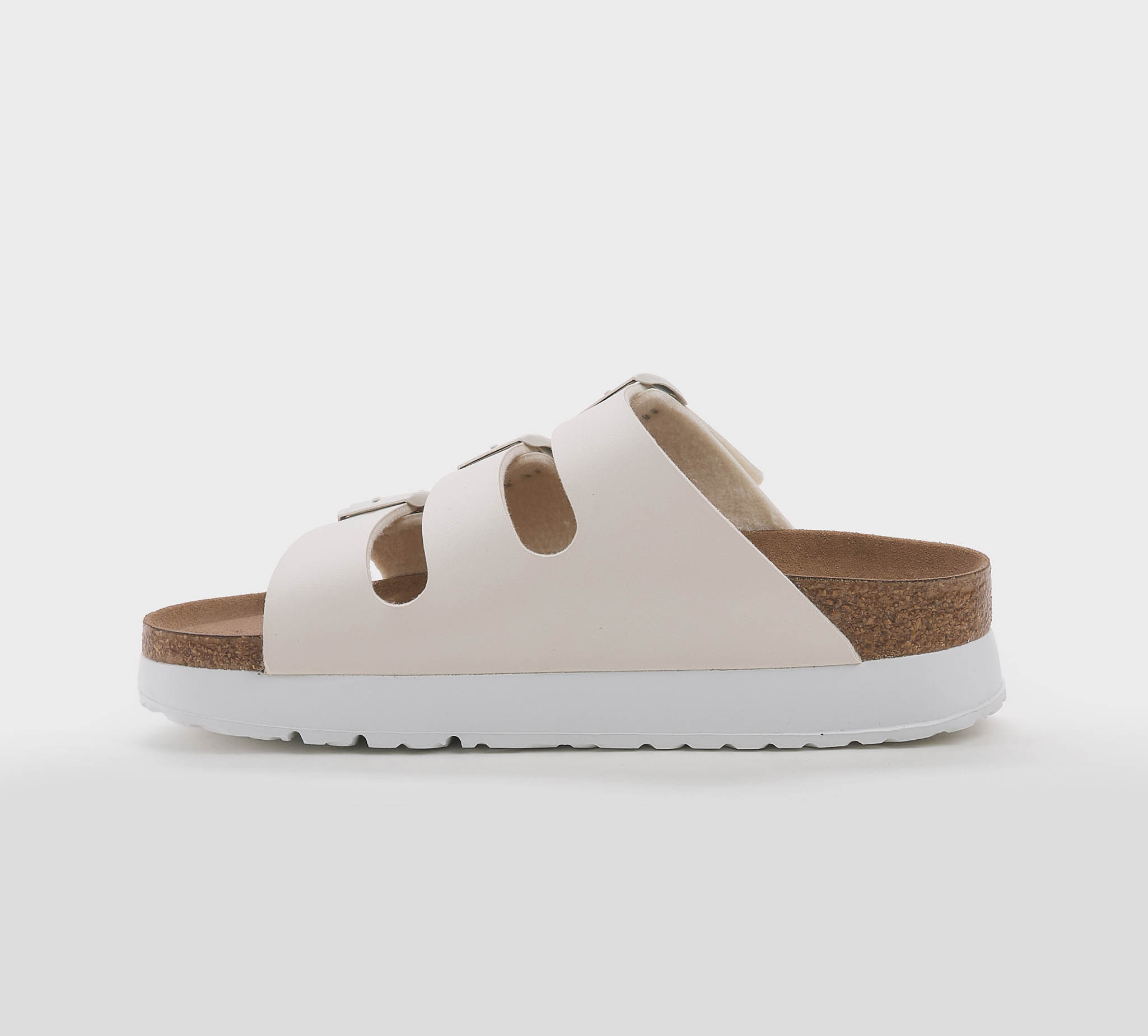 Ciabatta Florida in birkoflor gesso -platform -triplo cinturino -fibbiette gesso -plantare anatomico -calzata regolare Fondo gomma bianco Made in Germany SS 25