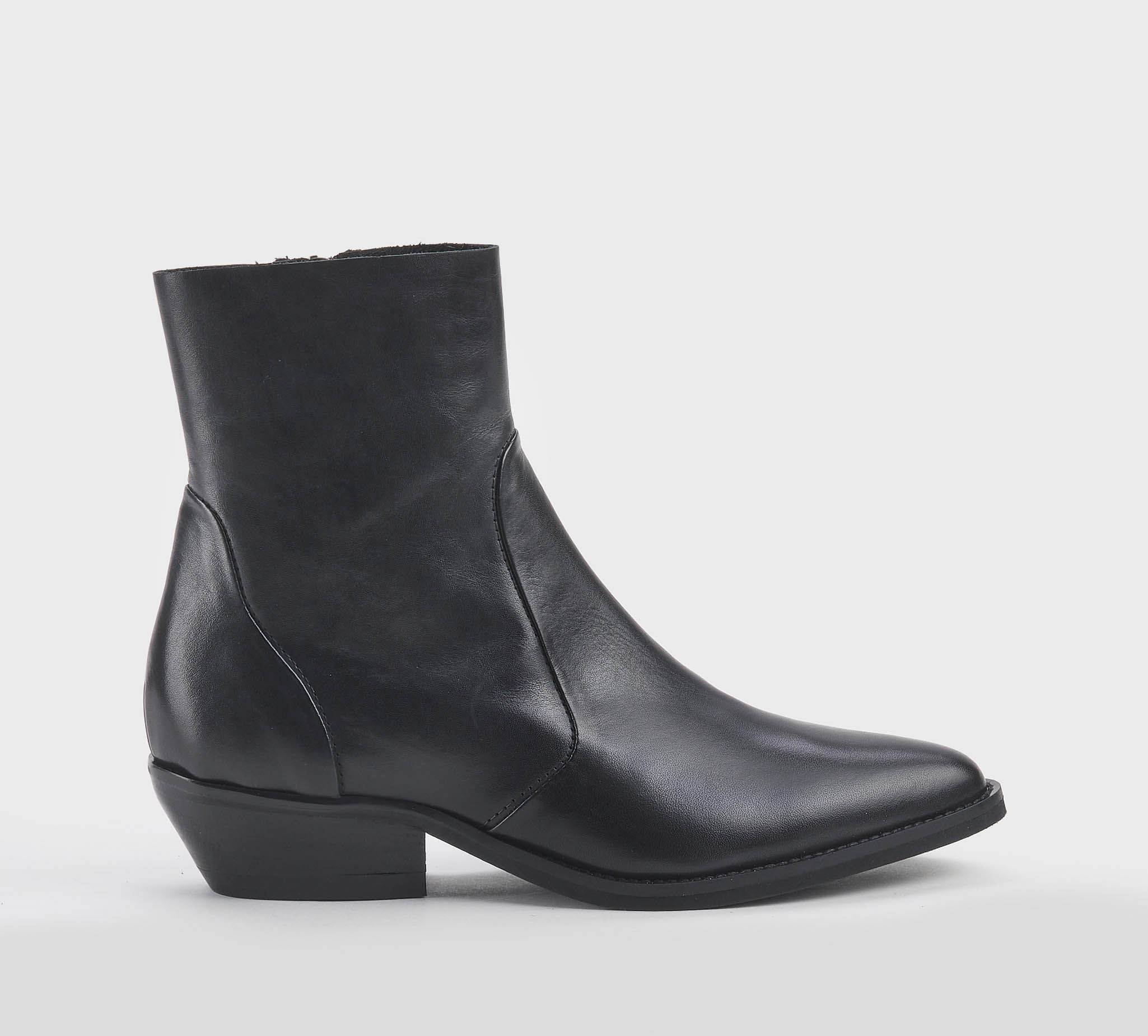 Stivaletto texano in pelle nero -zip interna -tacco cm 4 -calzata regolare Fondo cuoio SS 26