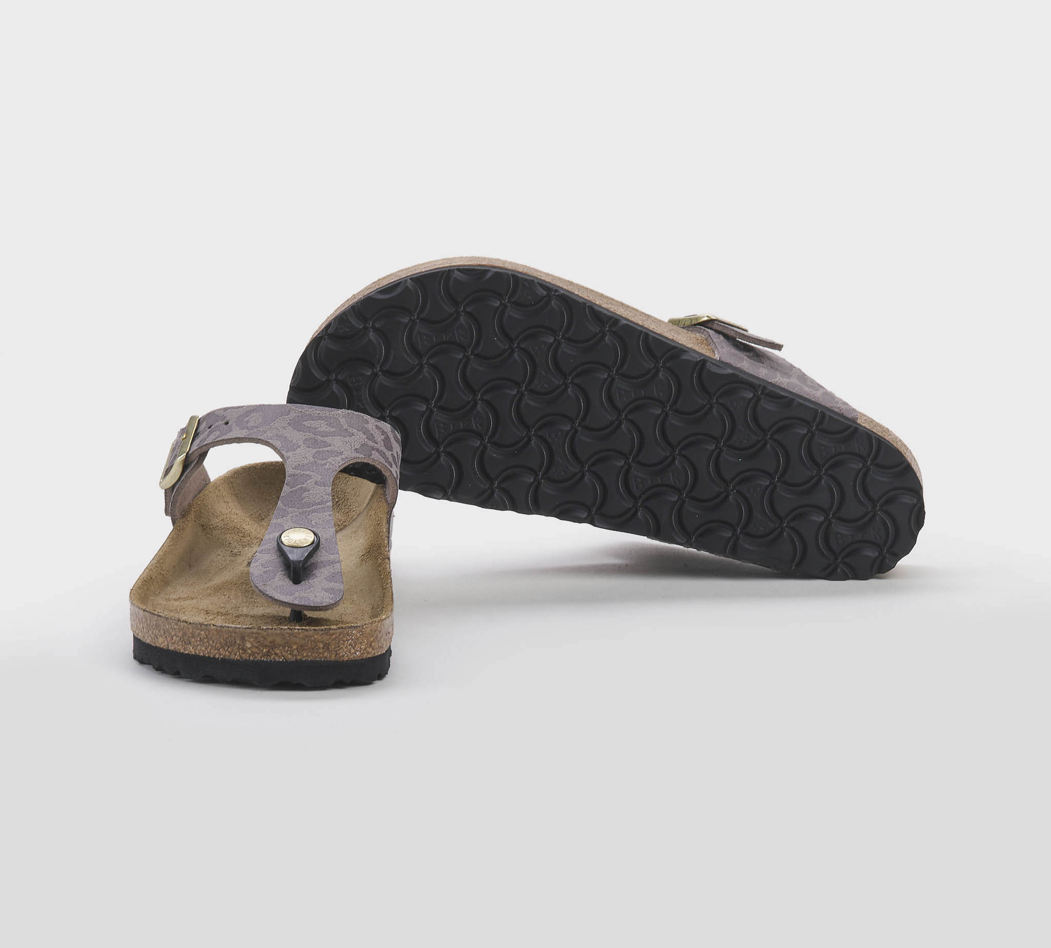 Infradito Gizeh synthetics leopard -cinturino regolabile -fibbia oro -plantare anatomico -calzata regolare Fondo gomma nero Made in Germany SS 26