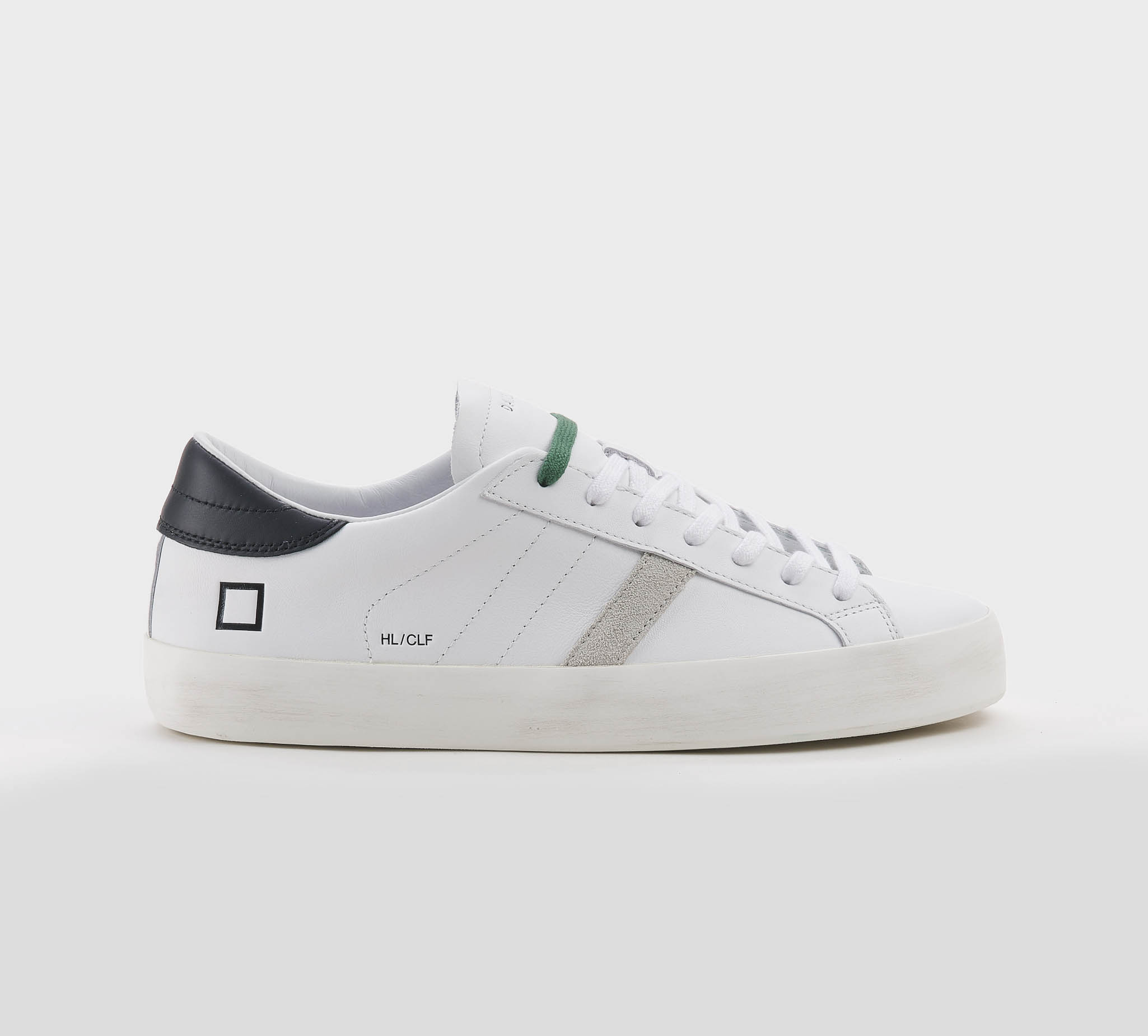 Sneakers in pelle bianco -talloncino pelle nero -doppio laccio bianco -verde -planatare anatomico -calzata regolare Fondo gomma SS 26
