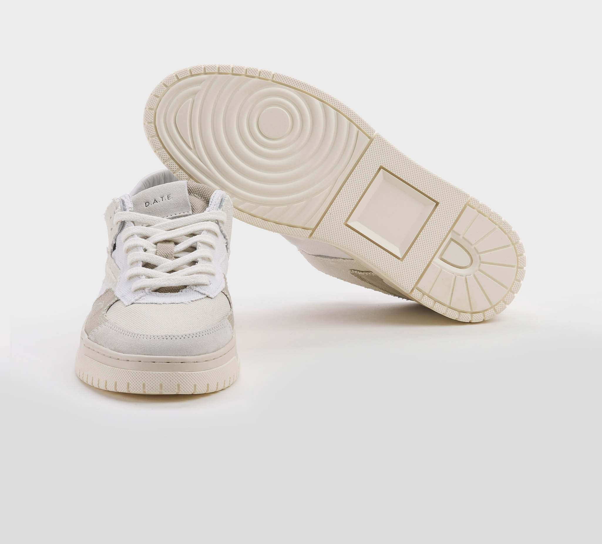 Sneakers in canvas bianco -inserti canvas crema e nocciola -laccio bianco -planatare anatomico -calzata regolare Fondo gomma SS 26