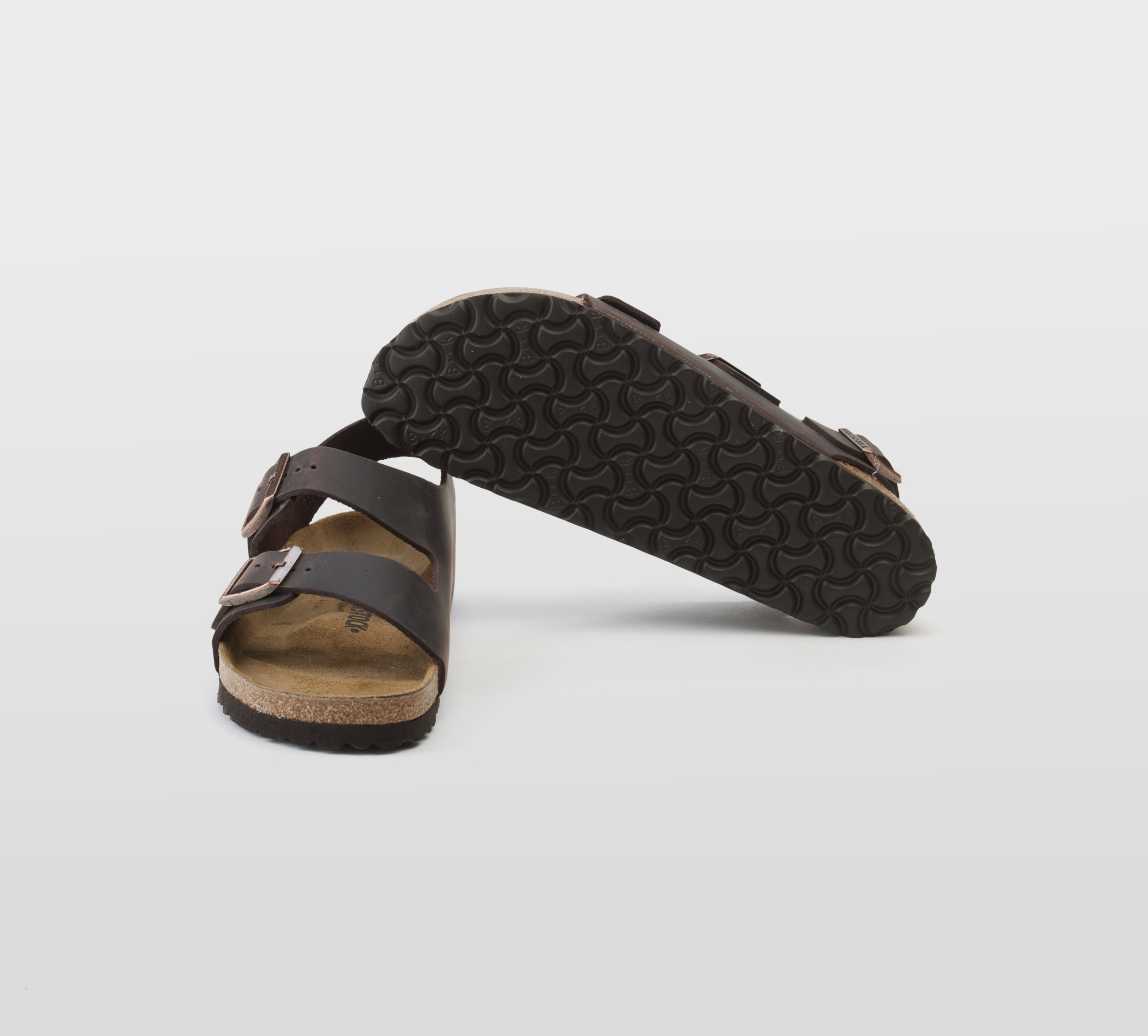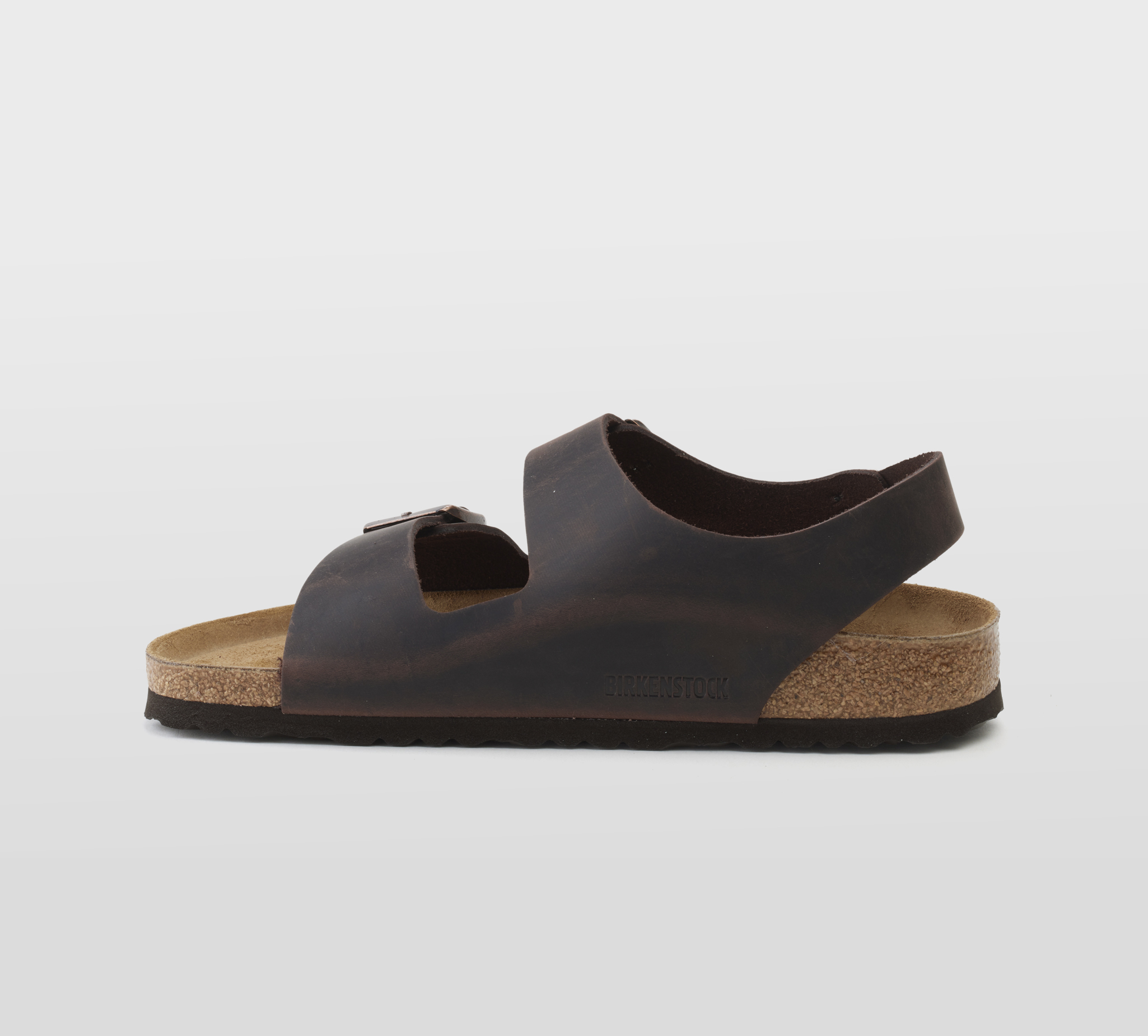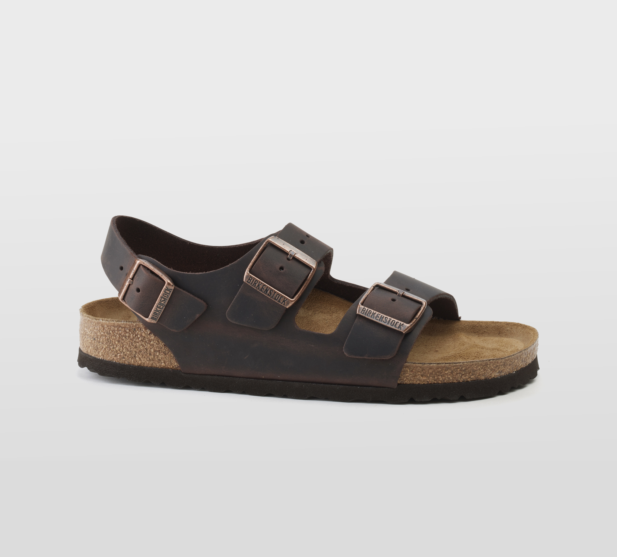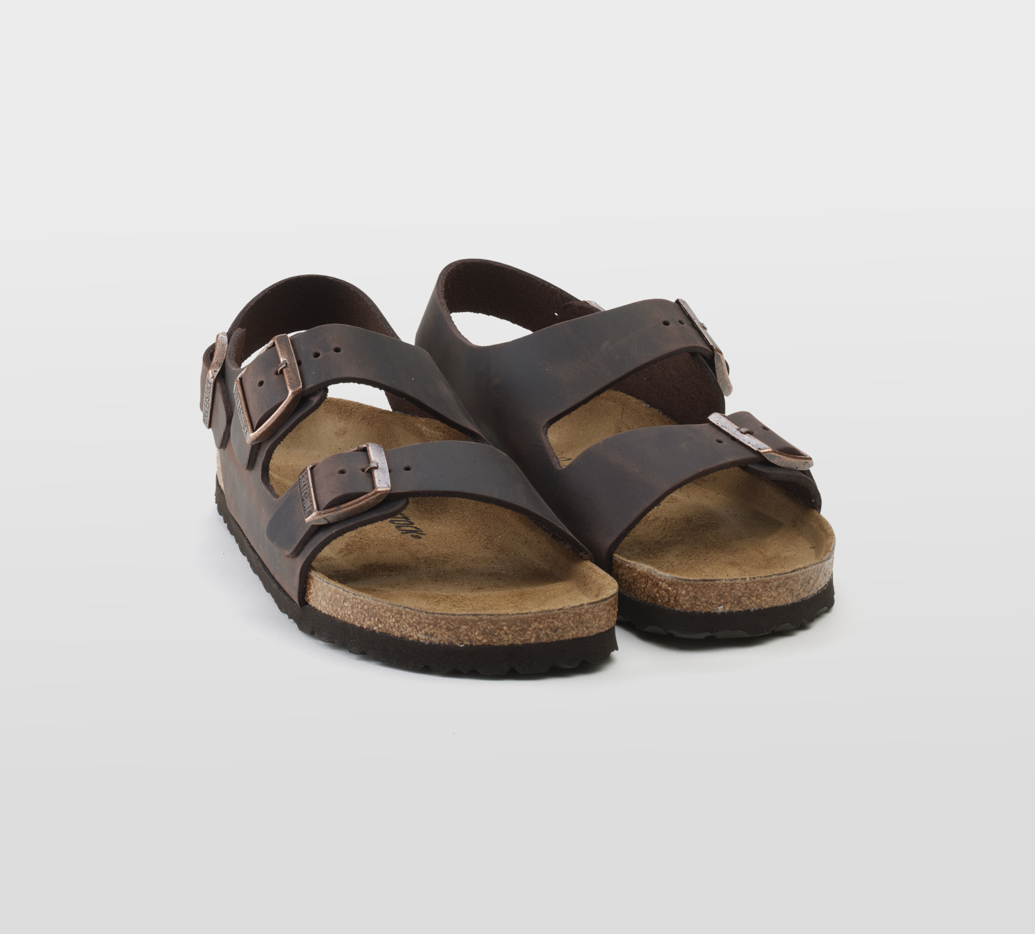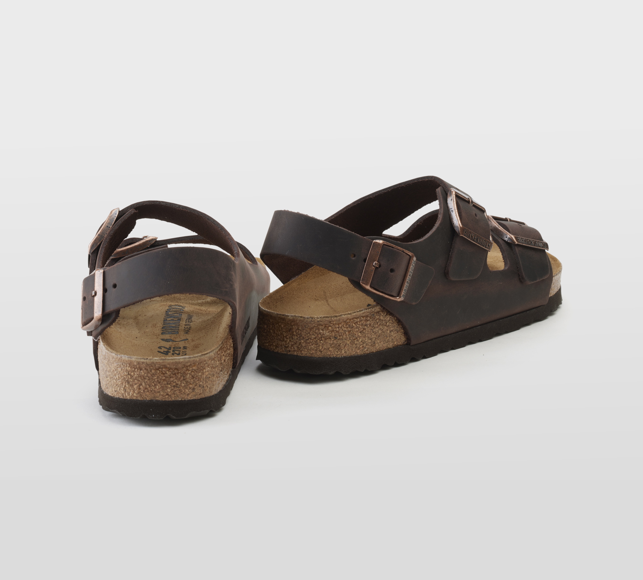 Sandalo Milano in pelle oliata habana -fibbie rame -plantare anatomico -calzata regolare Fondo gomma nero Made in Germany SS 25