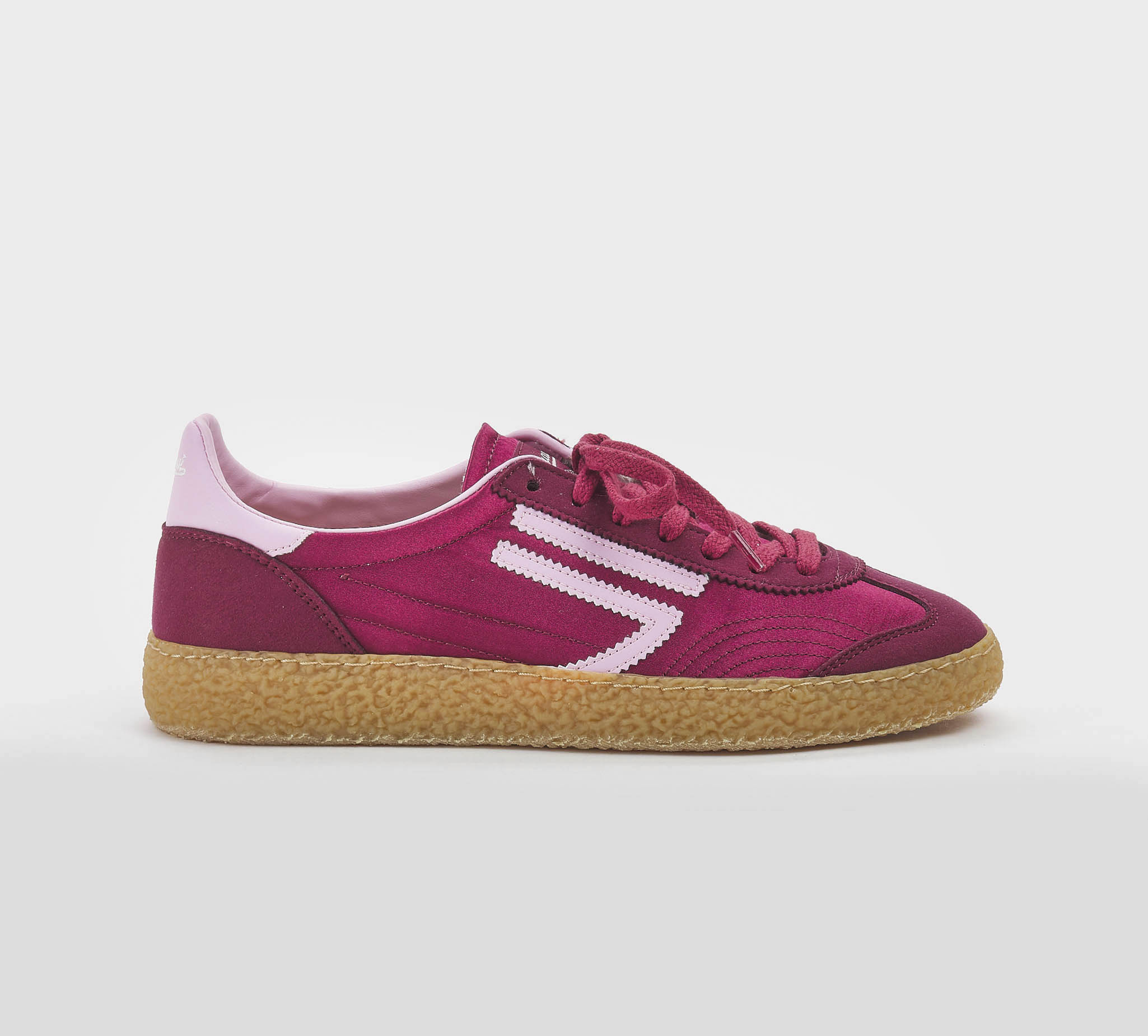 Sneakers in camoscio cilegia -inserti tessuto tecnico rosso -logo e talloncino pelle rosa -doppio laccio rosso-bianco -plantare anatomico -calzata regolare Fondo gomma SS 26