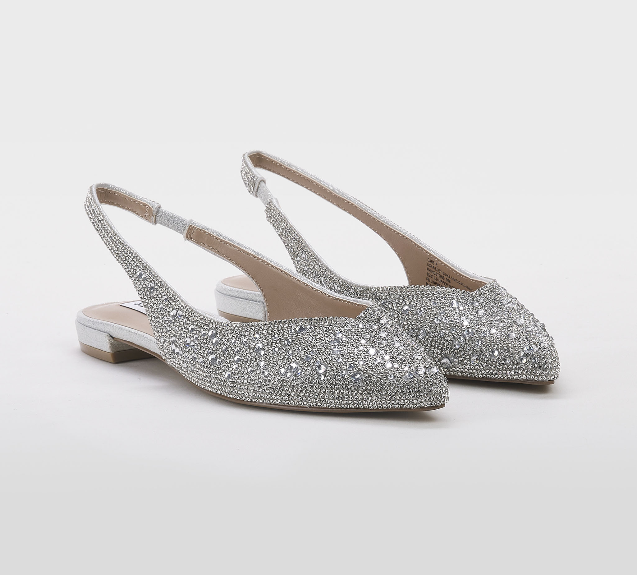 Sling back swarowsky argento -cinturino elastico -tacco cm 1,5 -calzata scarsa Fondo eco pelle Made in China SS 26