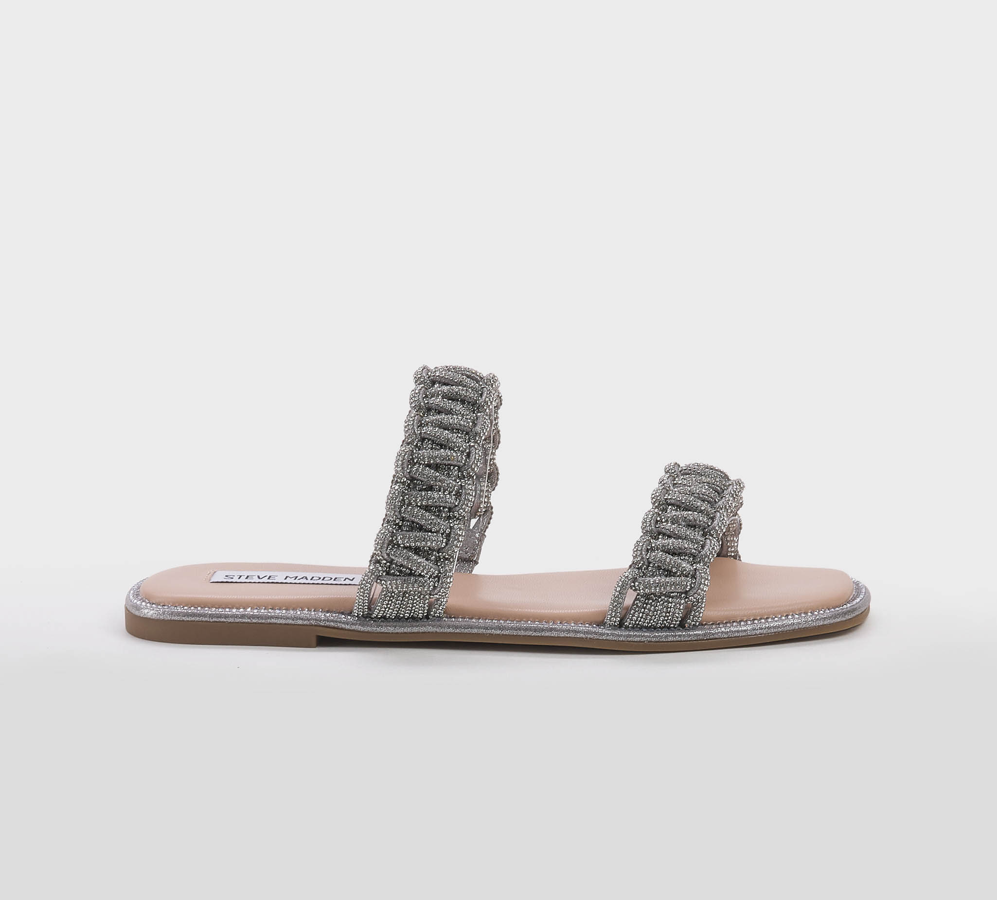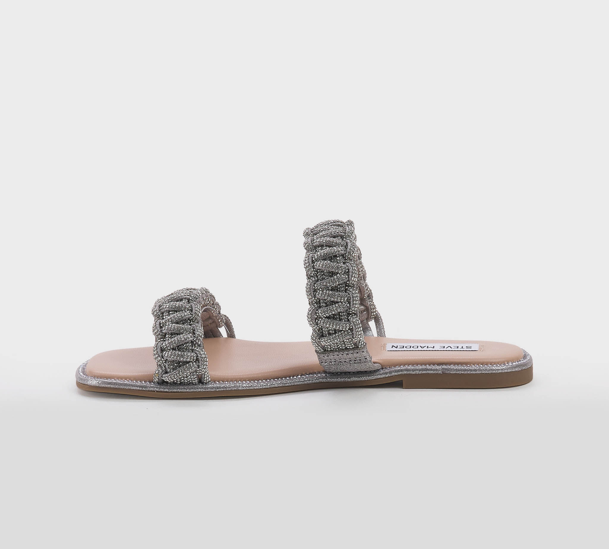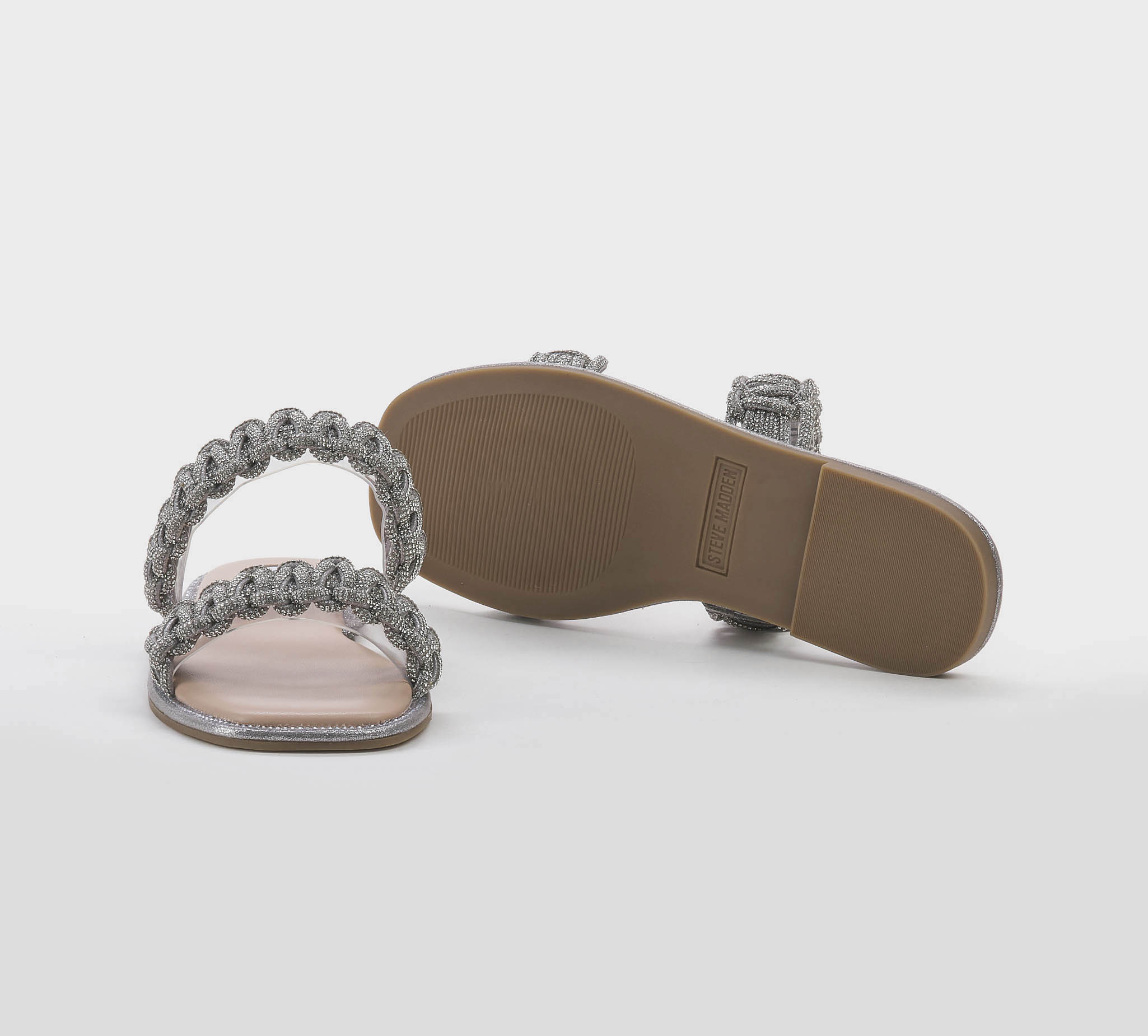 Ciabatta intrecciata argento swarovsky -tacco cm -calzata scarsa Fondo gomma Made in China SS 26