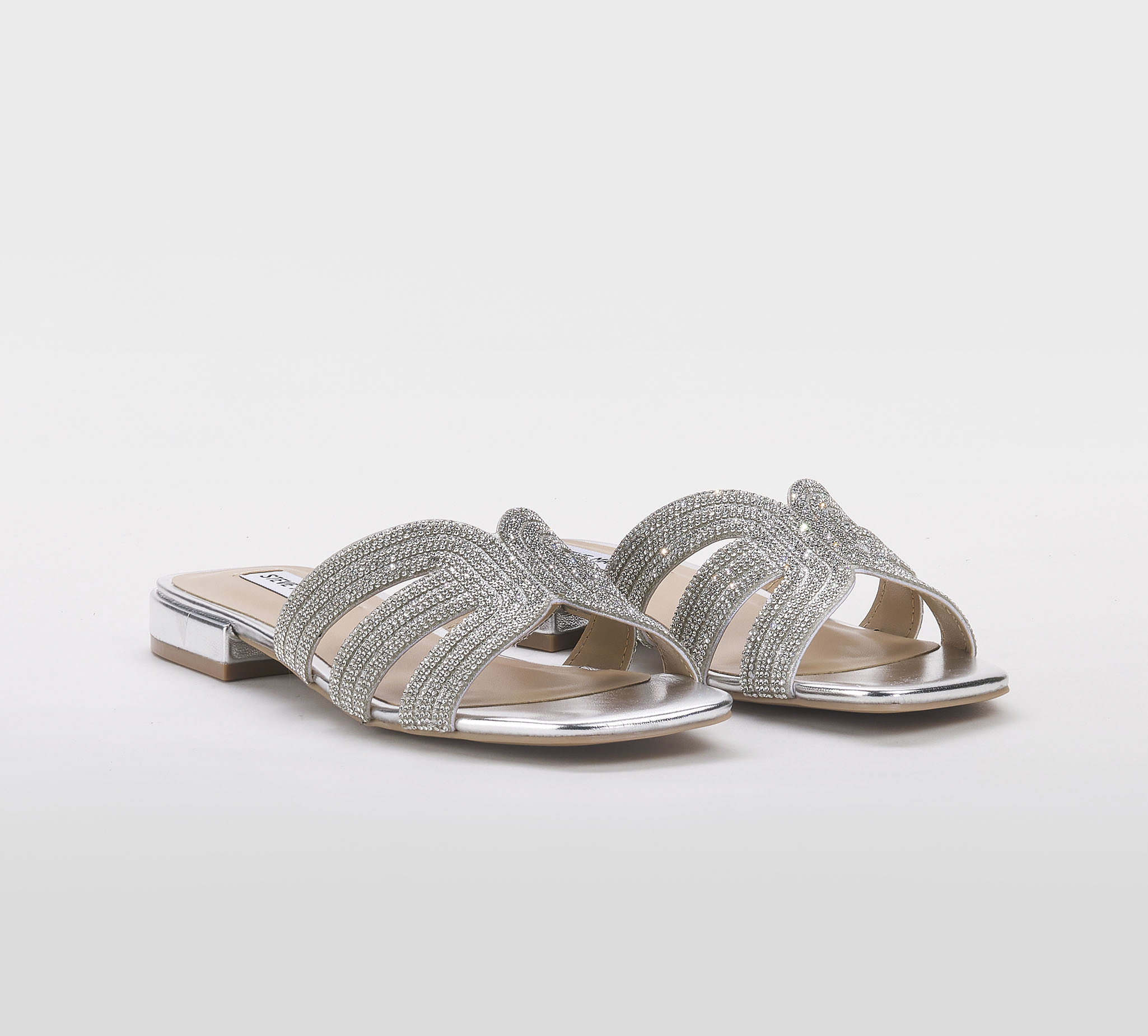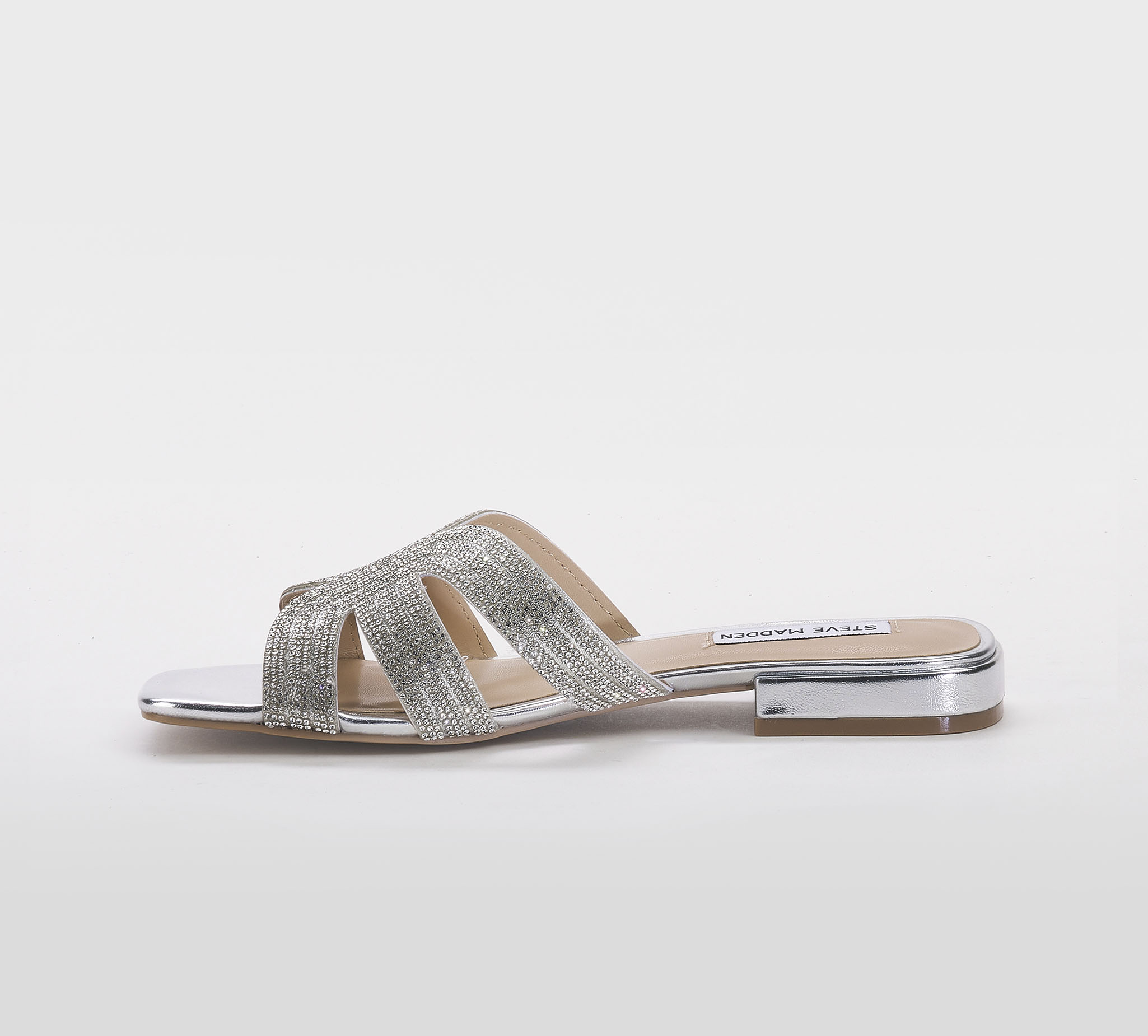 steve madden DONNA Donna CIABATTA PELLE ARGENTO SWAROVSKY 35-2, 36, 37-2, 37, 38-2, 38, 39-2, 40, 41-2 immagine n. 1/5