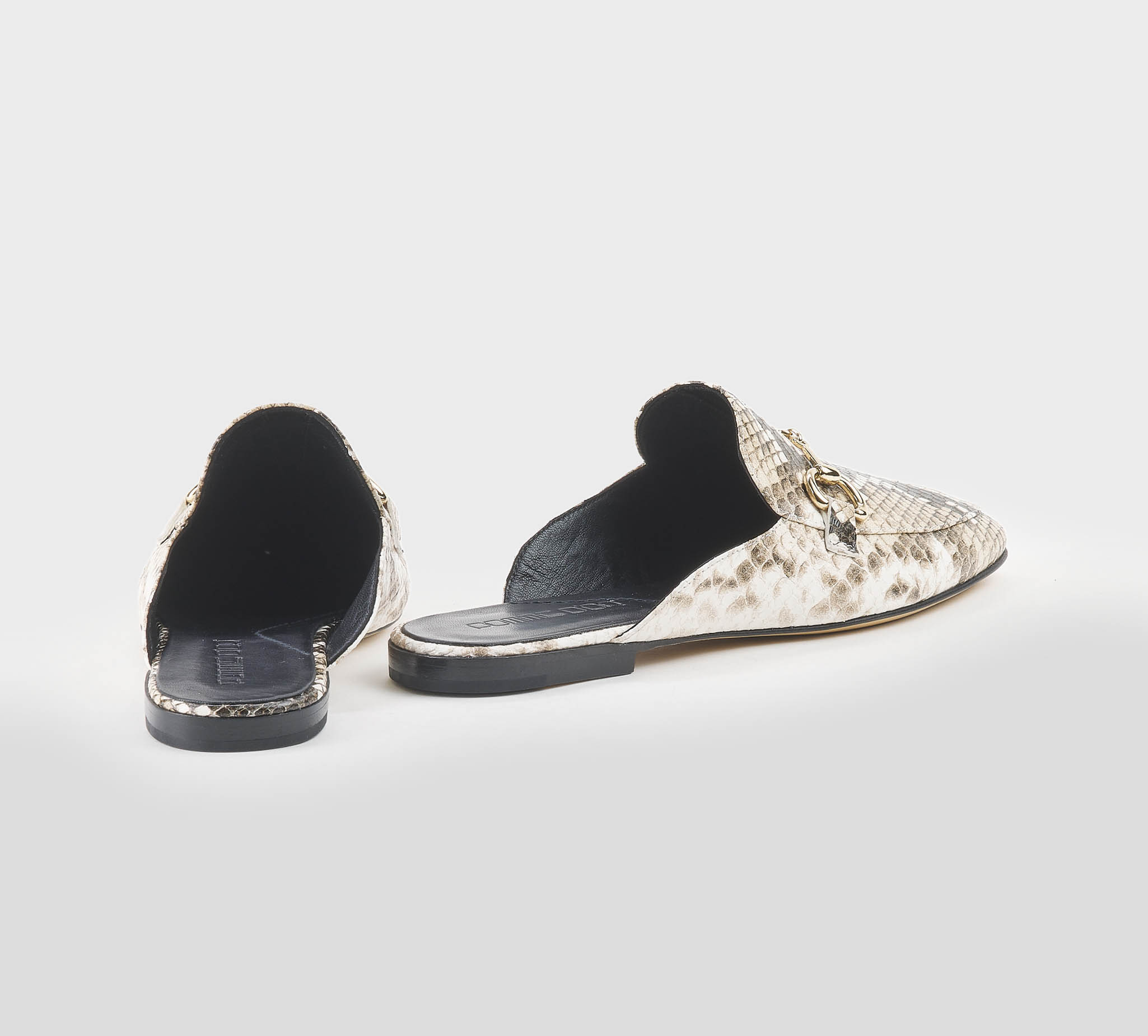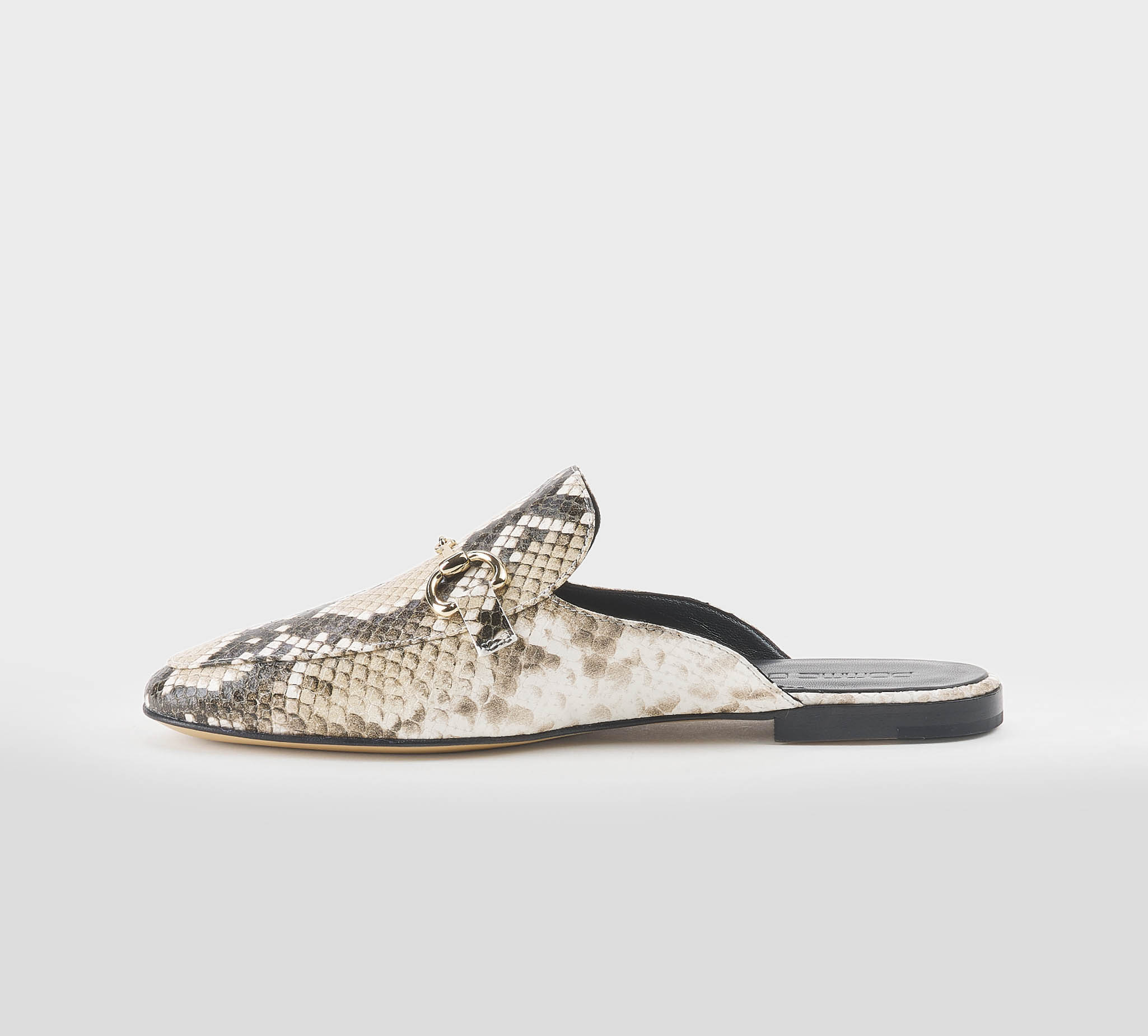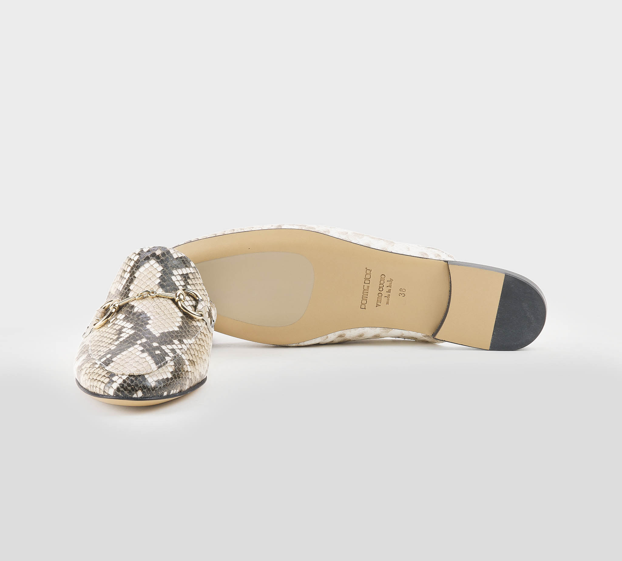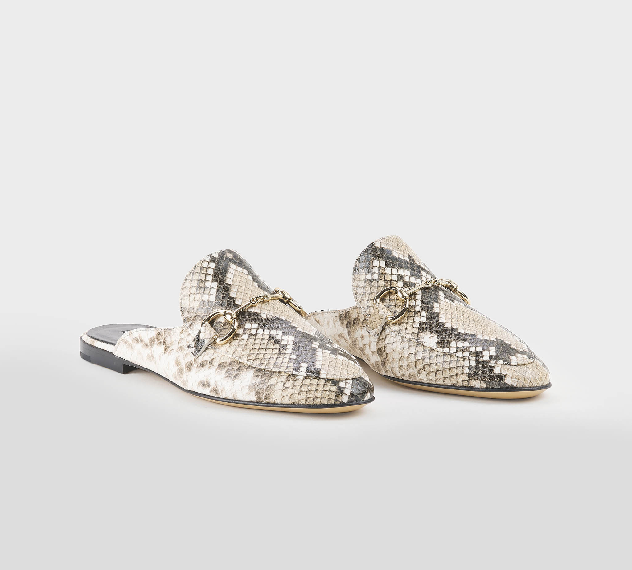 Sabot in stampa pitone roccia -morsetto oro -tacco cm 1,5 -calzata regolare Fondo cuoio Made in Italy ss 26