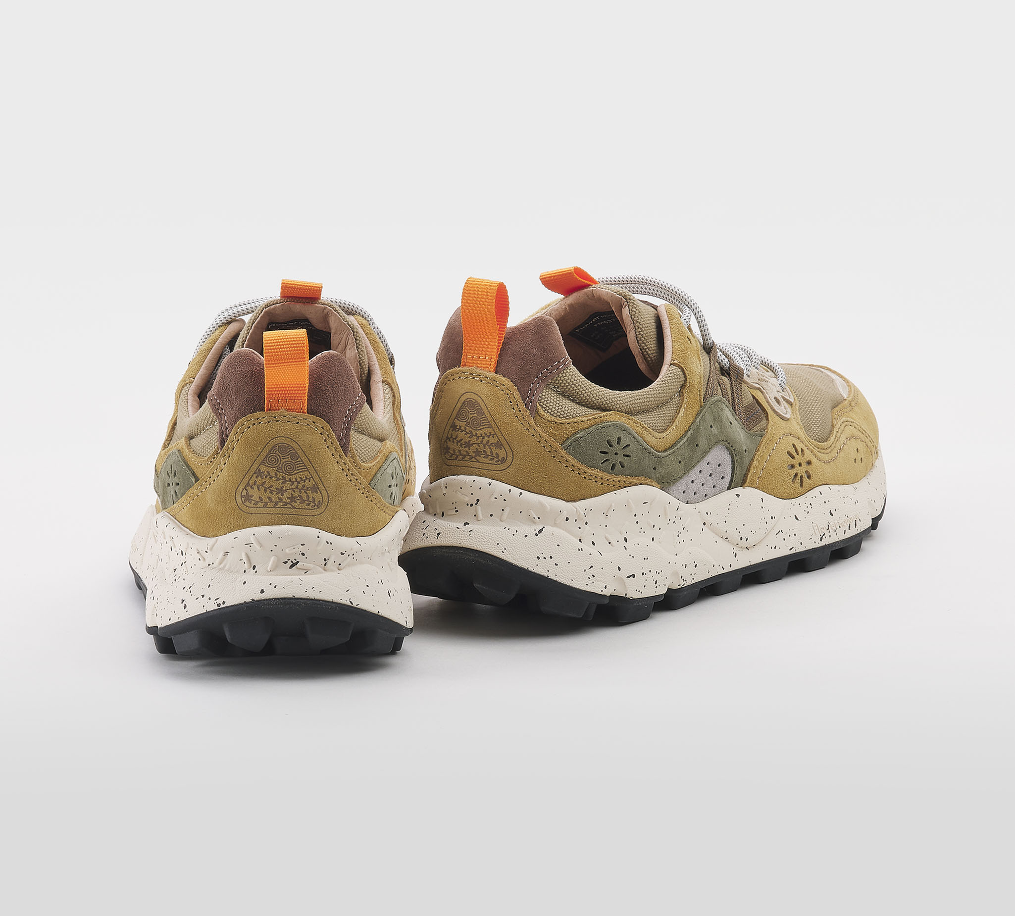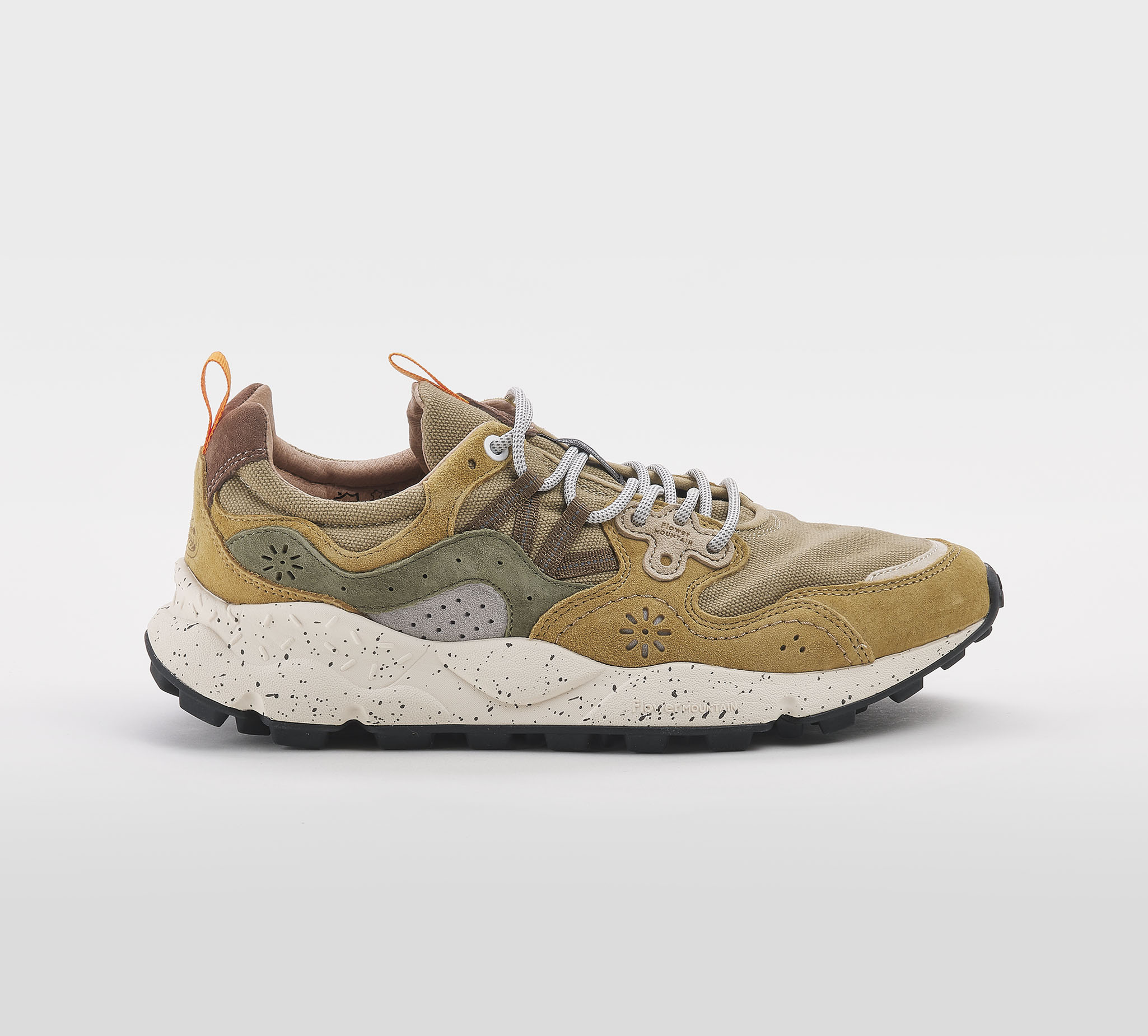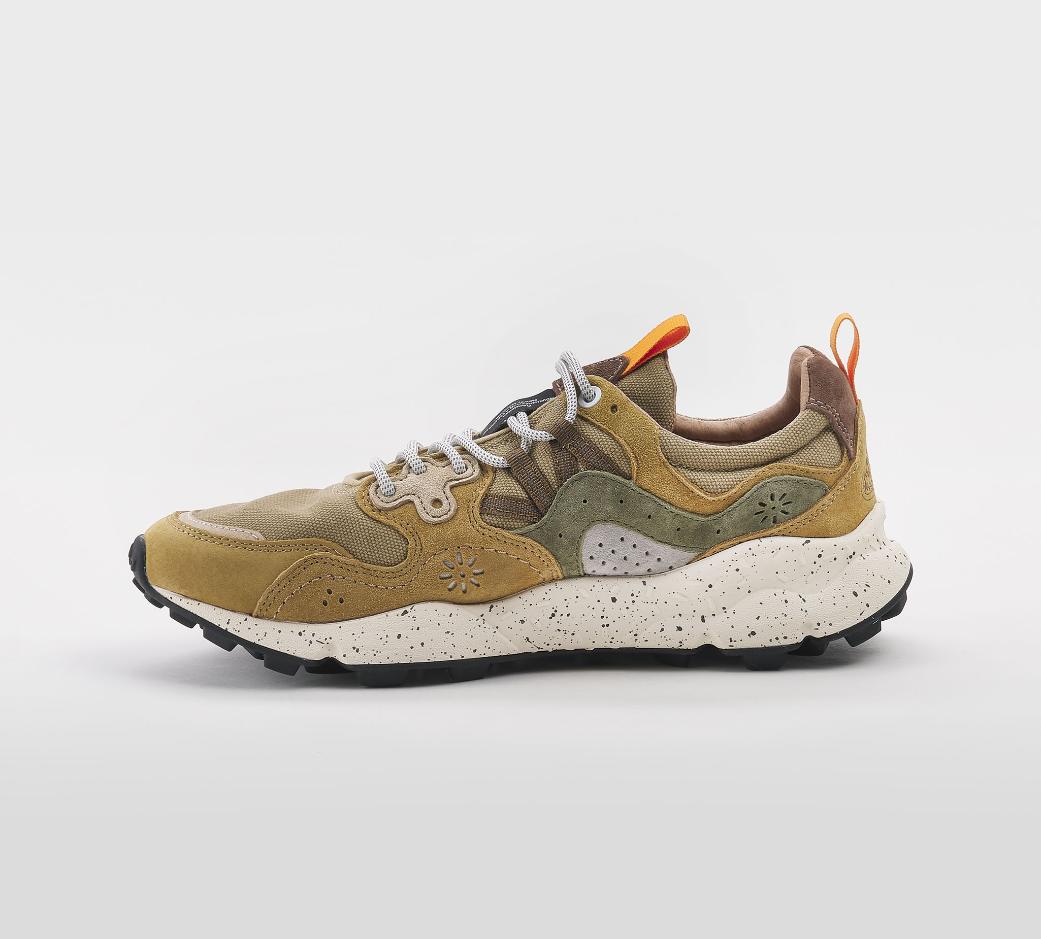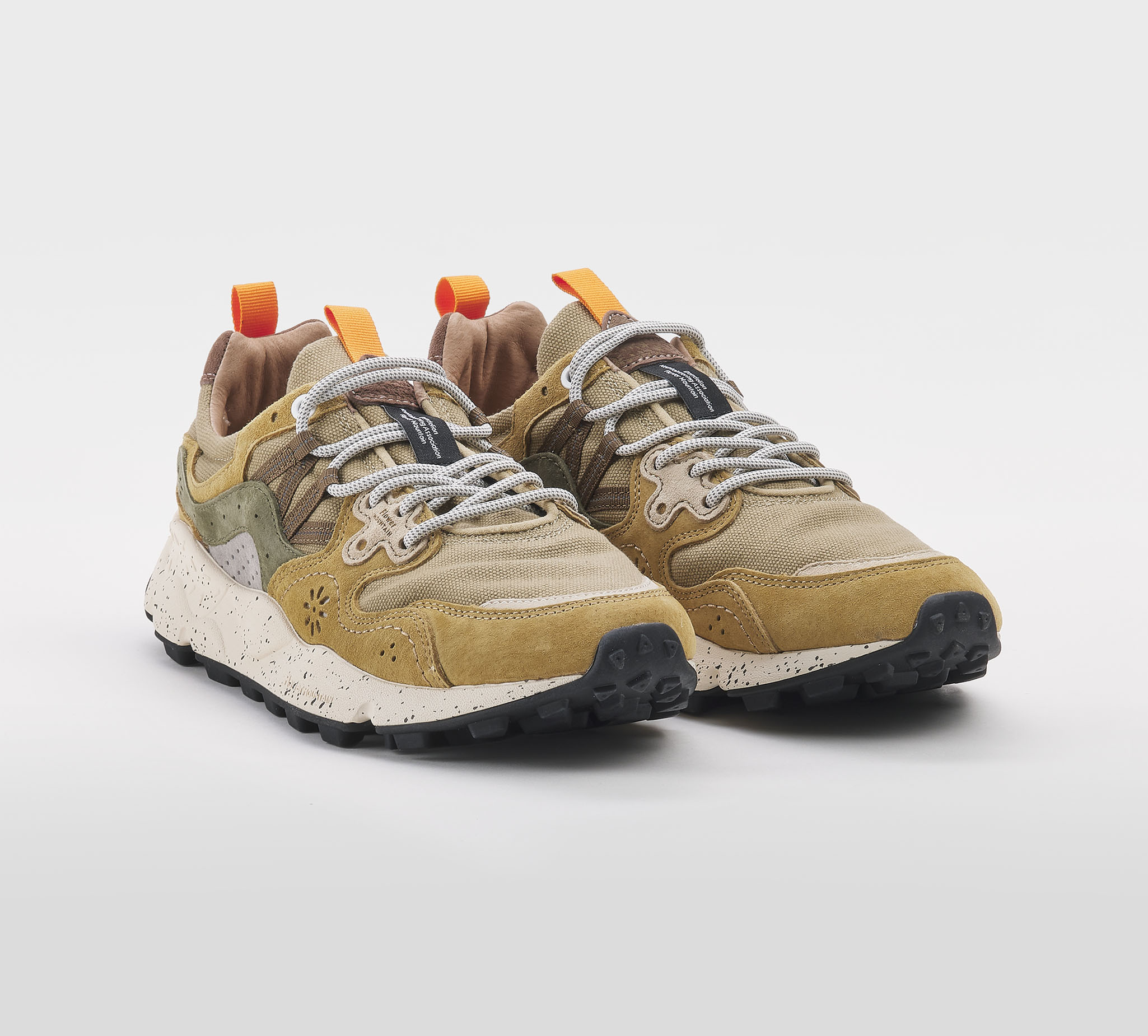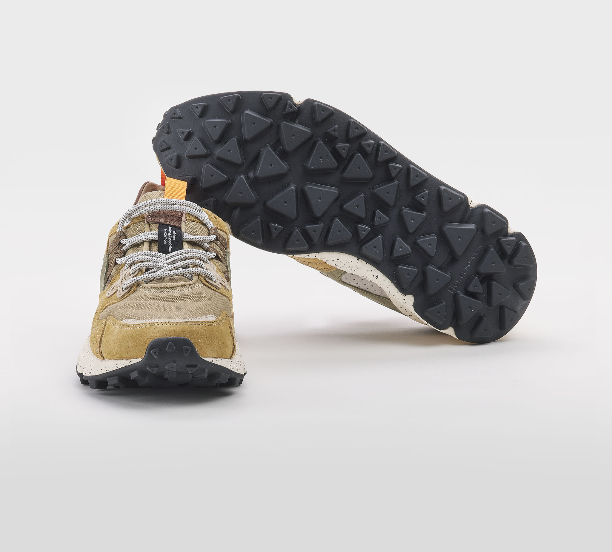 Sneakers Running multi cuoio -inserti tessuto tecnico corda -inserti in camoscio cuoio ,moro,militare -laccio bianco nero -calzata regolare Fondo gomma Made in Italy SS 26