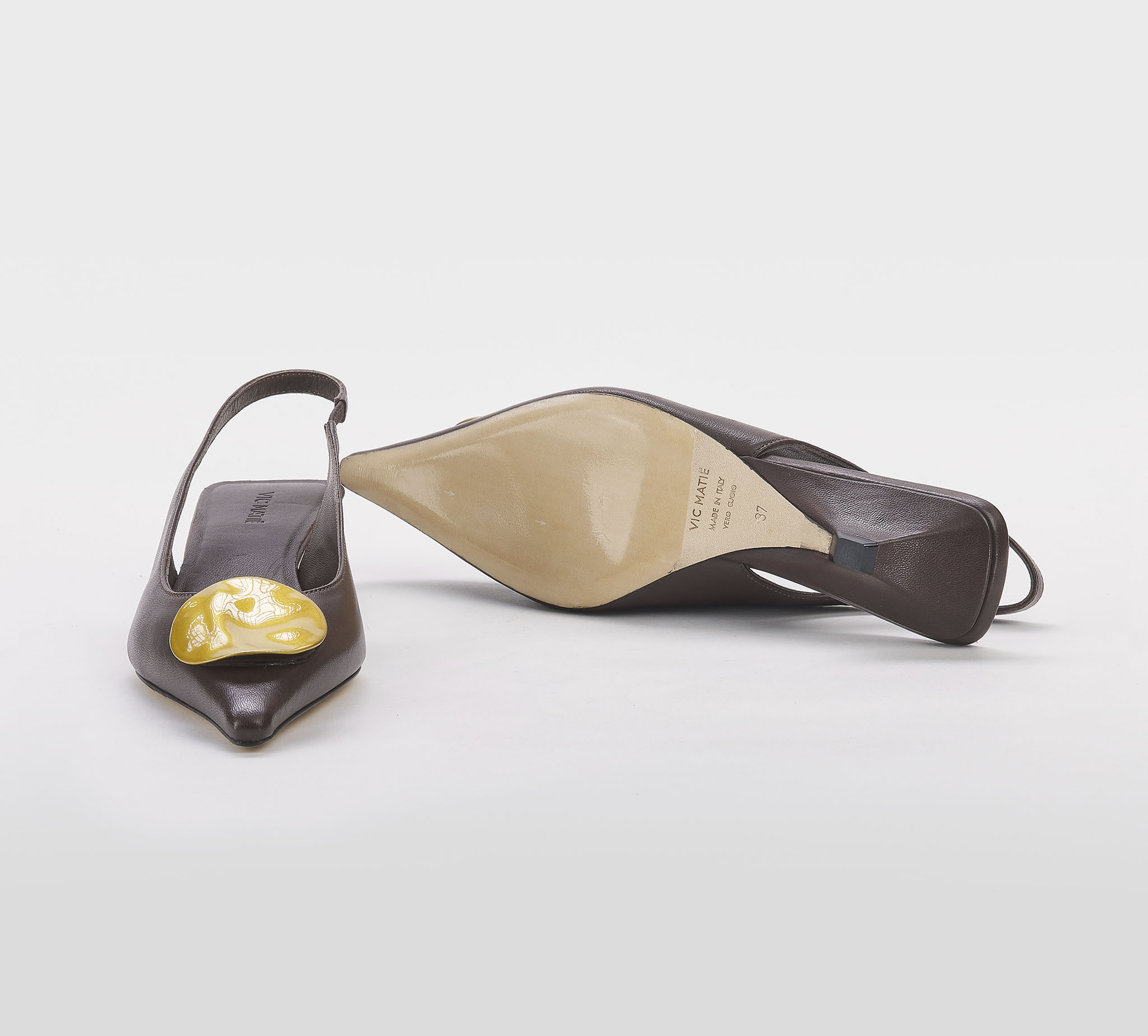 VIC MATIE' DONNA DECOLTE' SLINGBACK PELLE MARRONE 36, 37-2, 38-2, 38, 39-2, 40 immagine n. 1/5