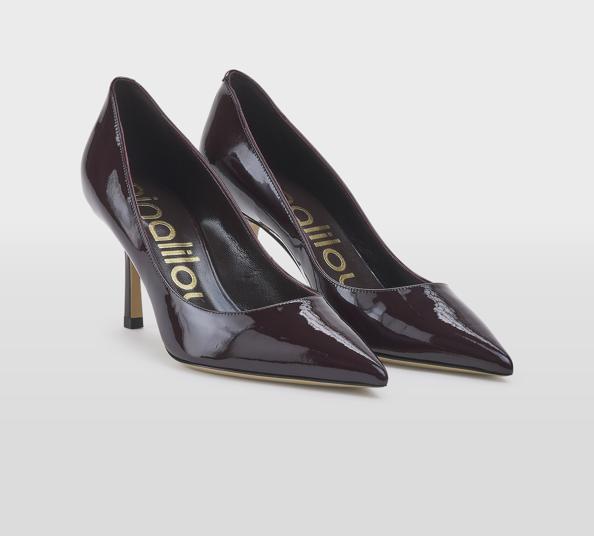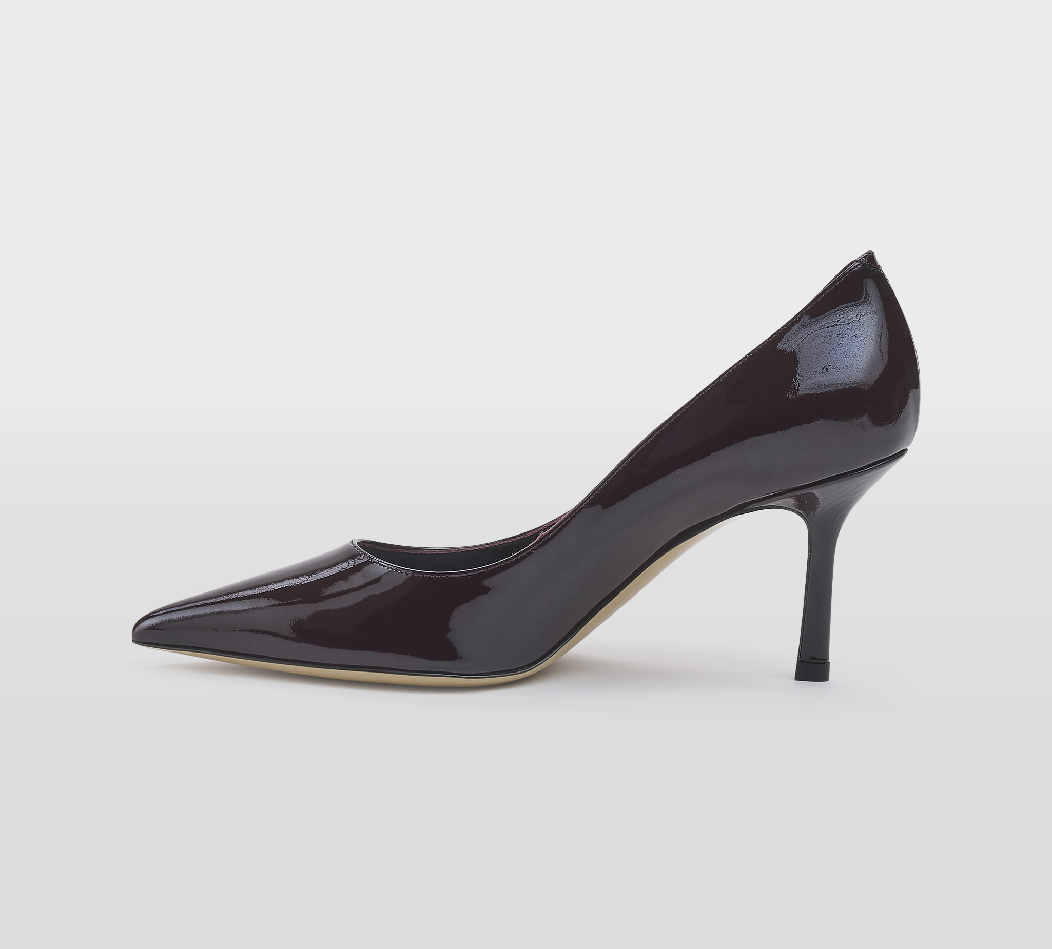 Decoltè in vernice merlot -tacco cm 8 -calzata regolare Fondo cuoio FW 25