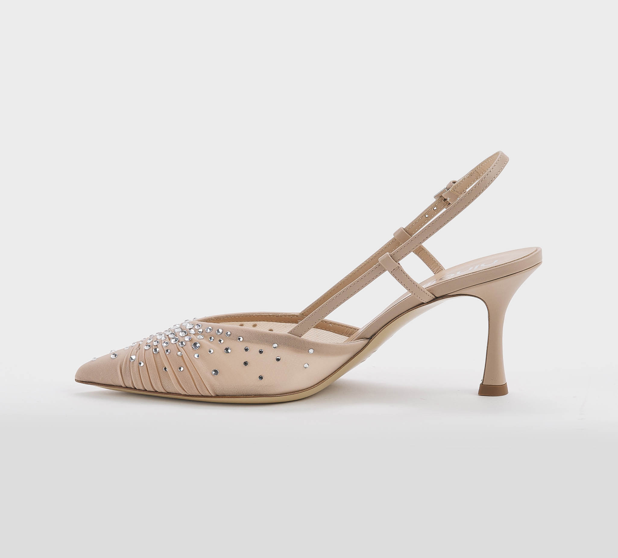 Chanel in rete cipria -swarovsky -cinturino al tallone -fibbietta argento -tacco cm 8 -calzata regolare Fondo cuoio Dust bag inclusa Made in S.Marino ss26