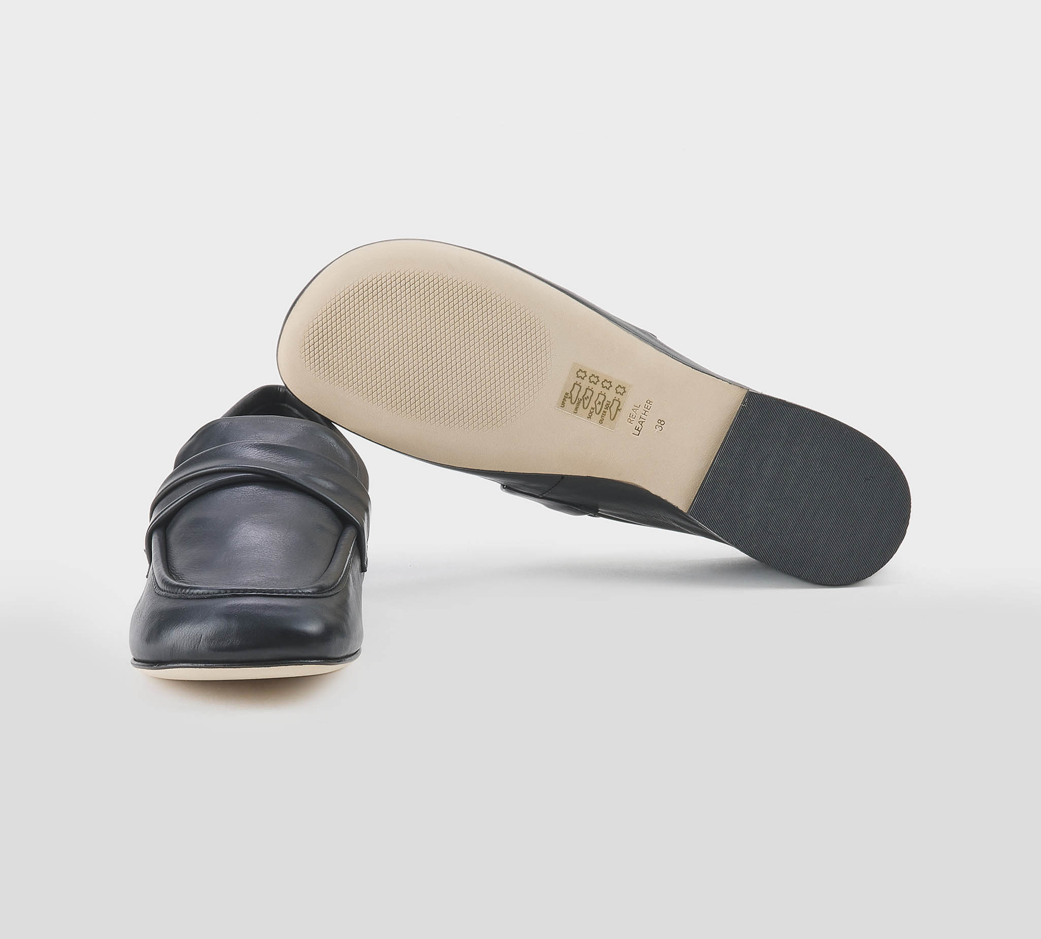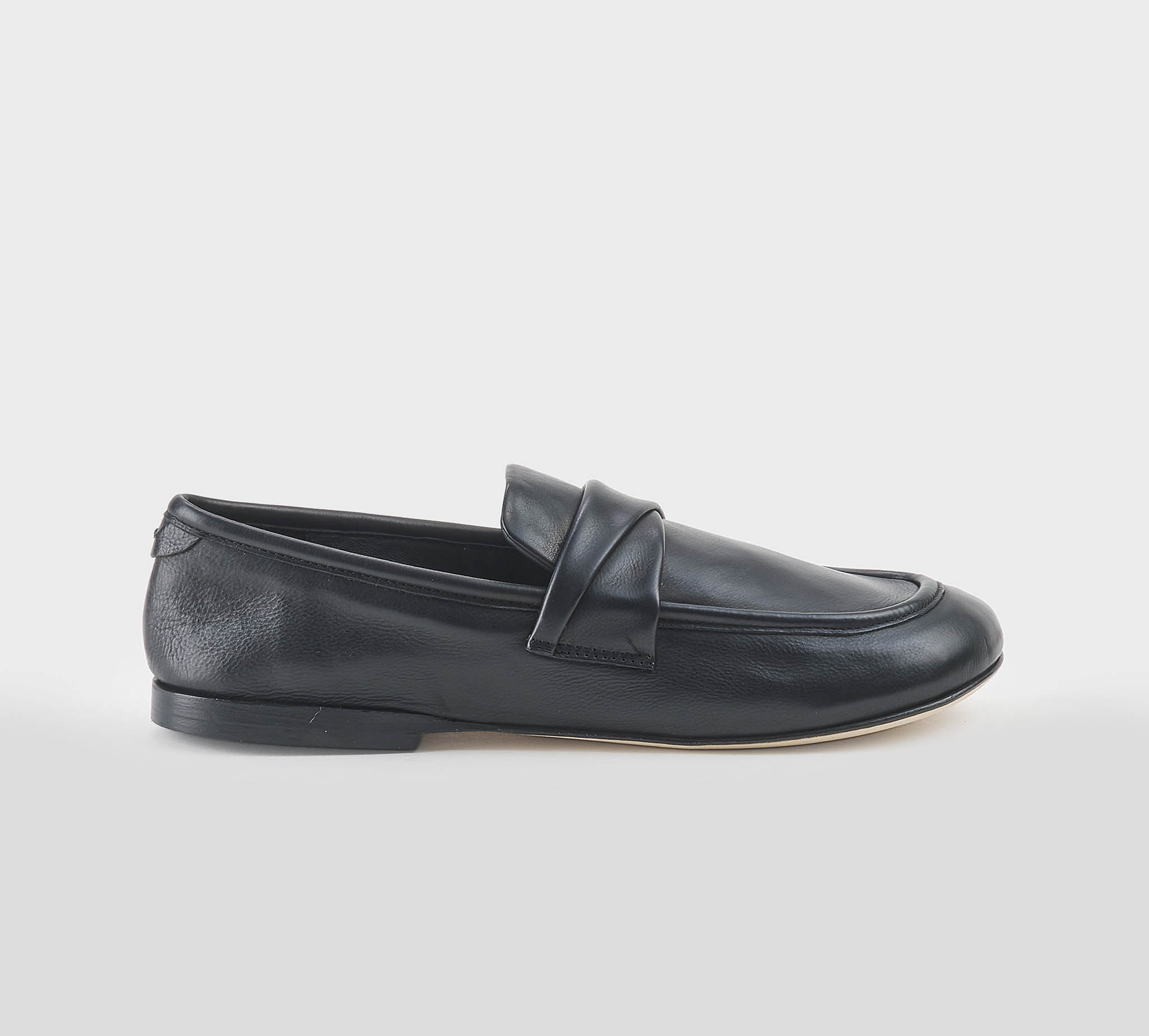 Mocassino in nappa nero -barretta nero -calzzata regolare -tacco cm 1 Fondo cuoio SS 26