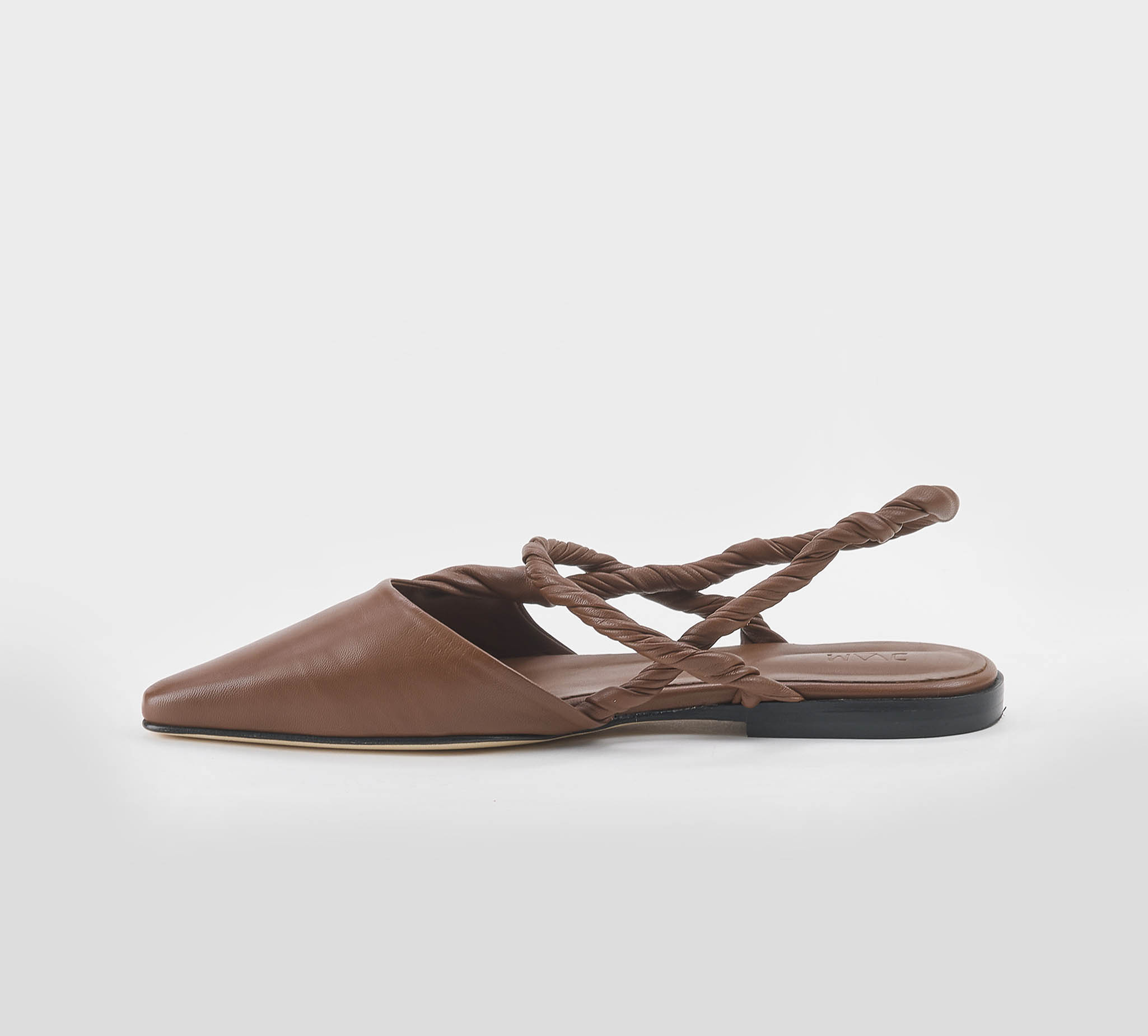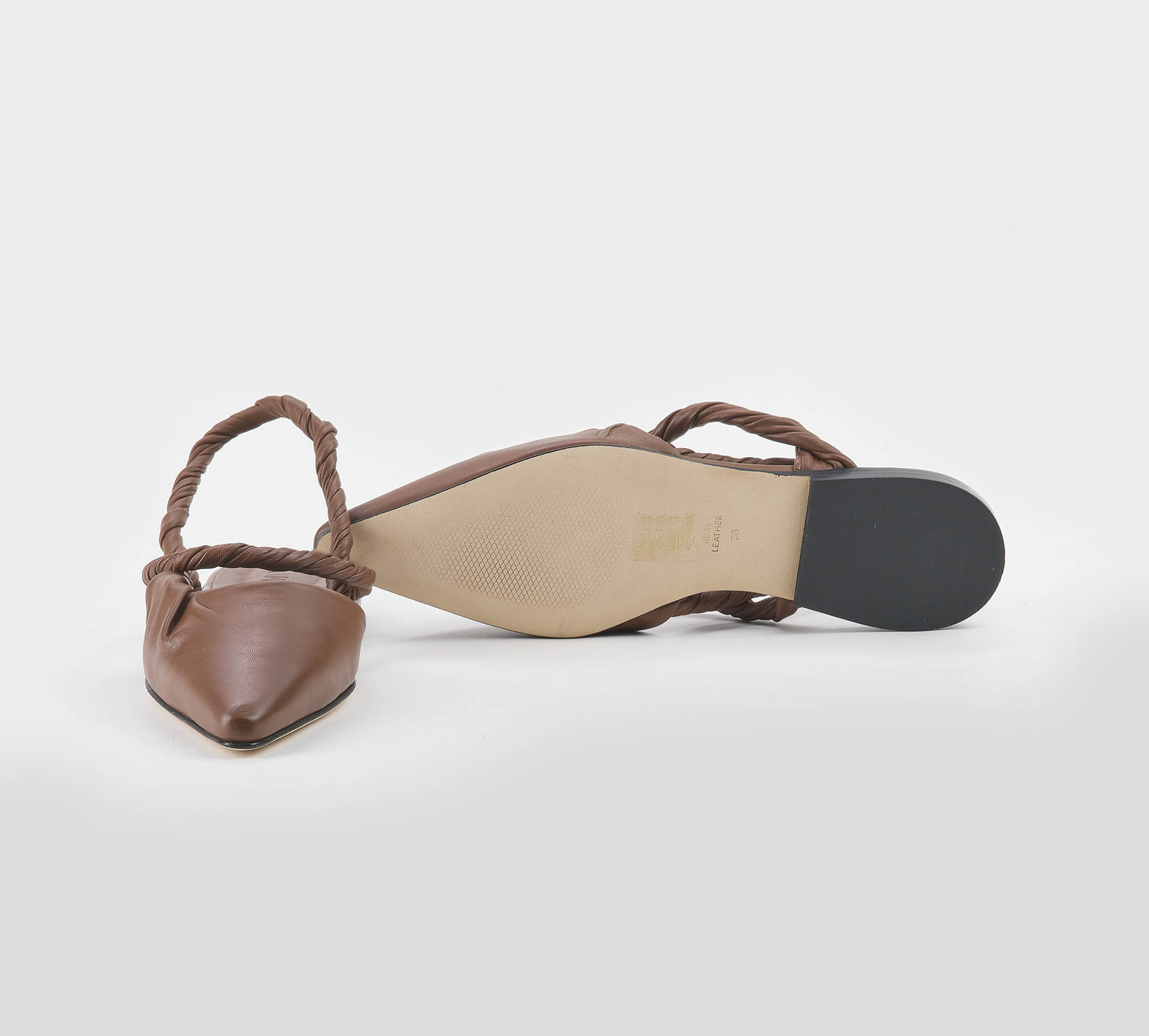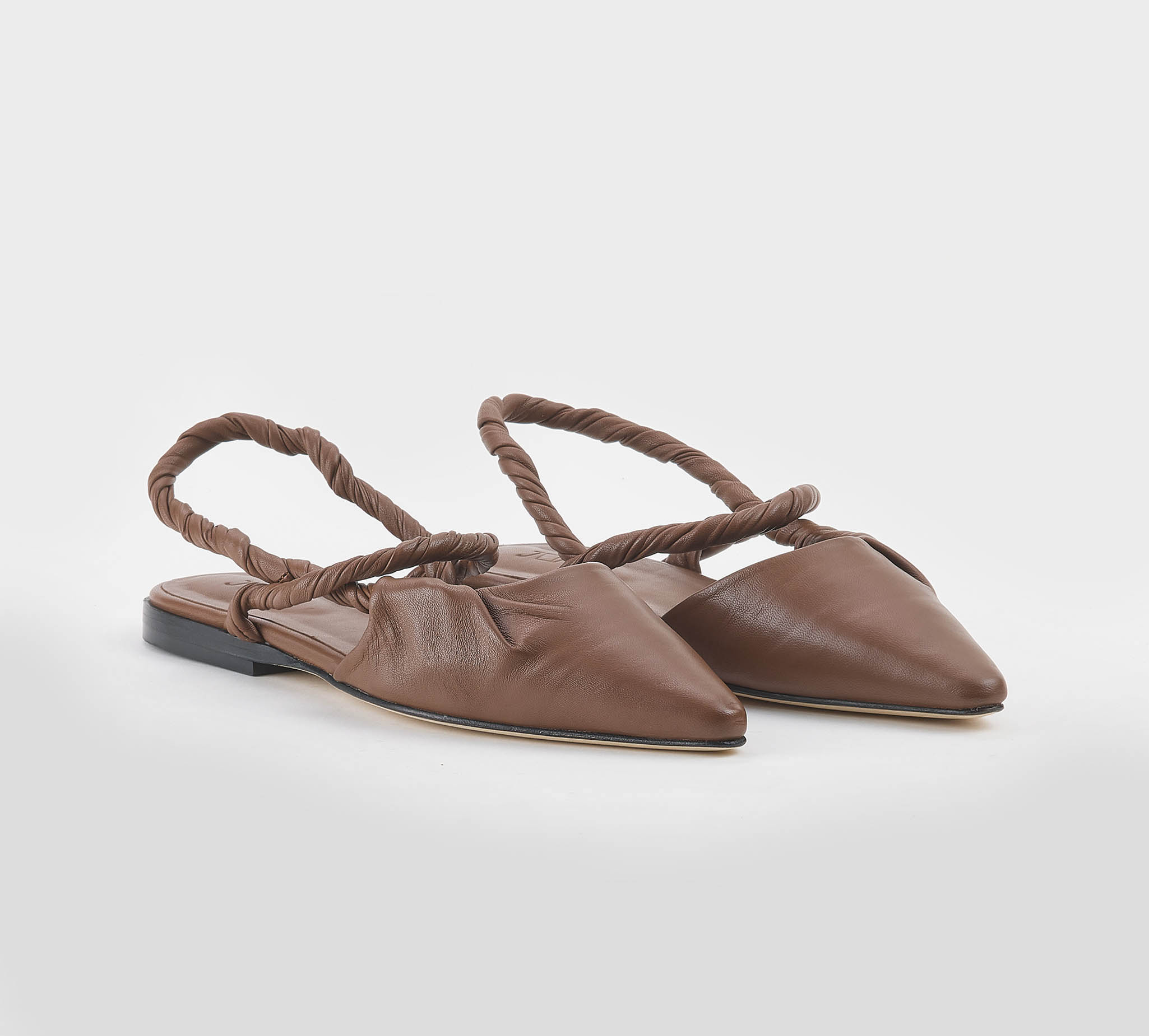 Sling back in nappa cuoio -cinturini arrotolati nappa cuoio -tacco cm 1 -calzata scarsa Fondo cuoio SS 26