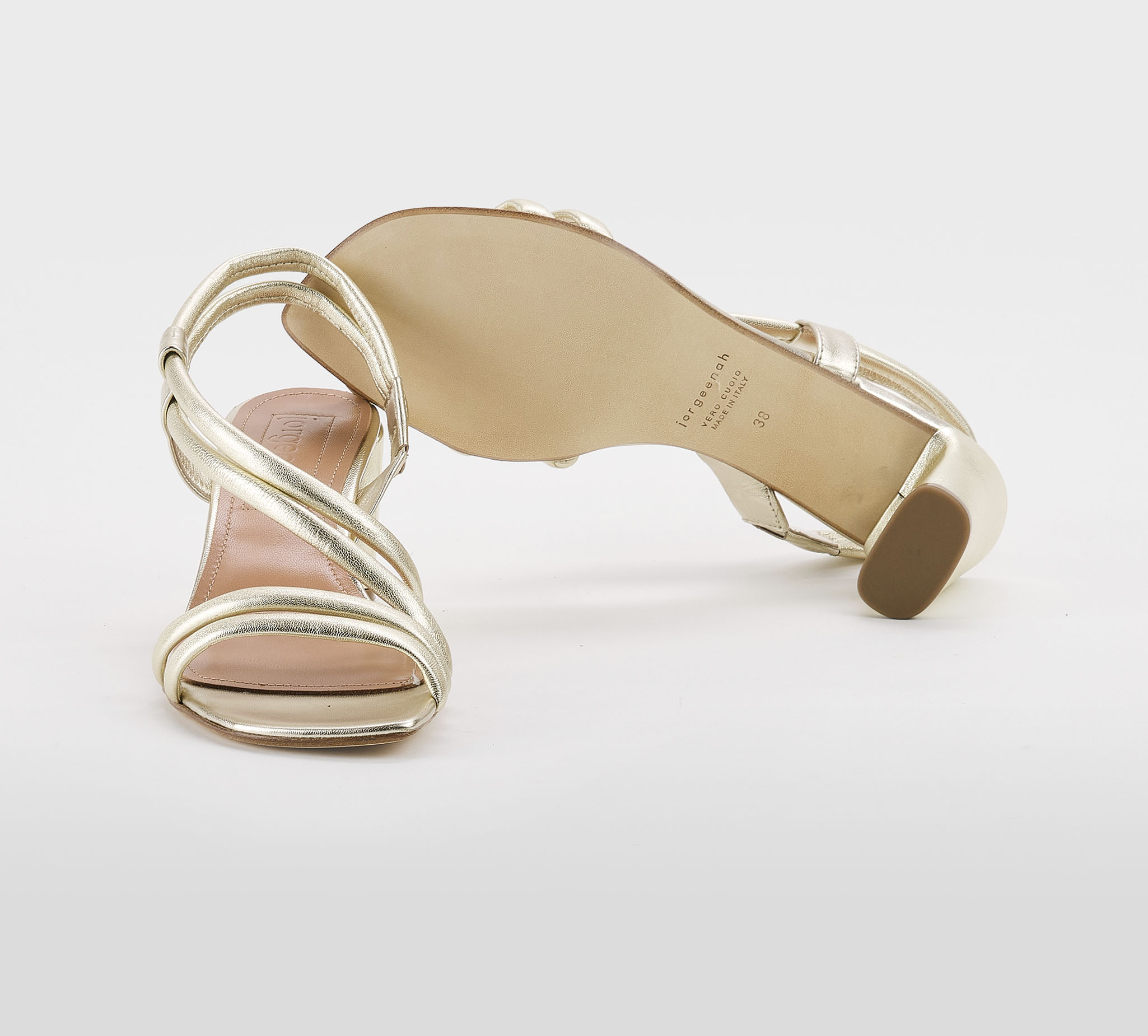 Sandalo mignon pelle platino -tacco cm 8 -calzata regolare Fondo cuoio SS 26