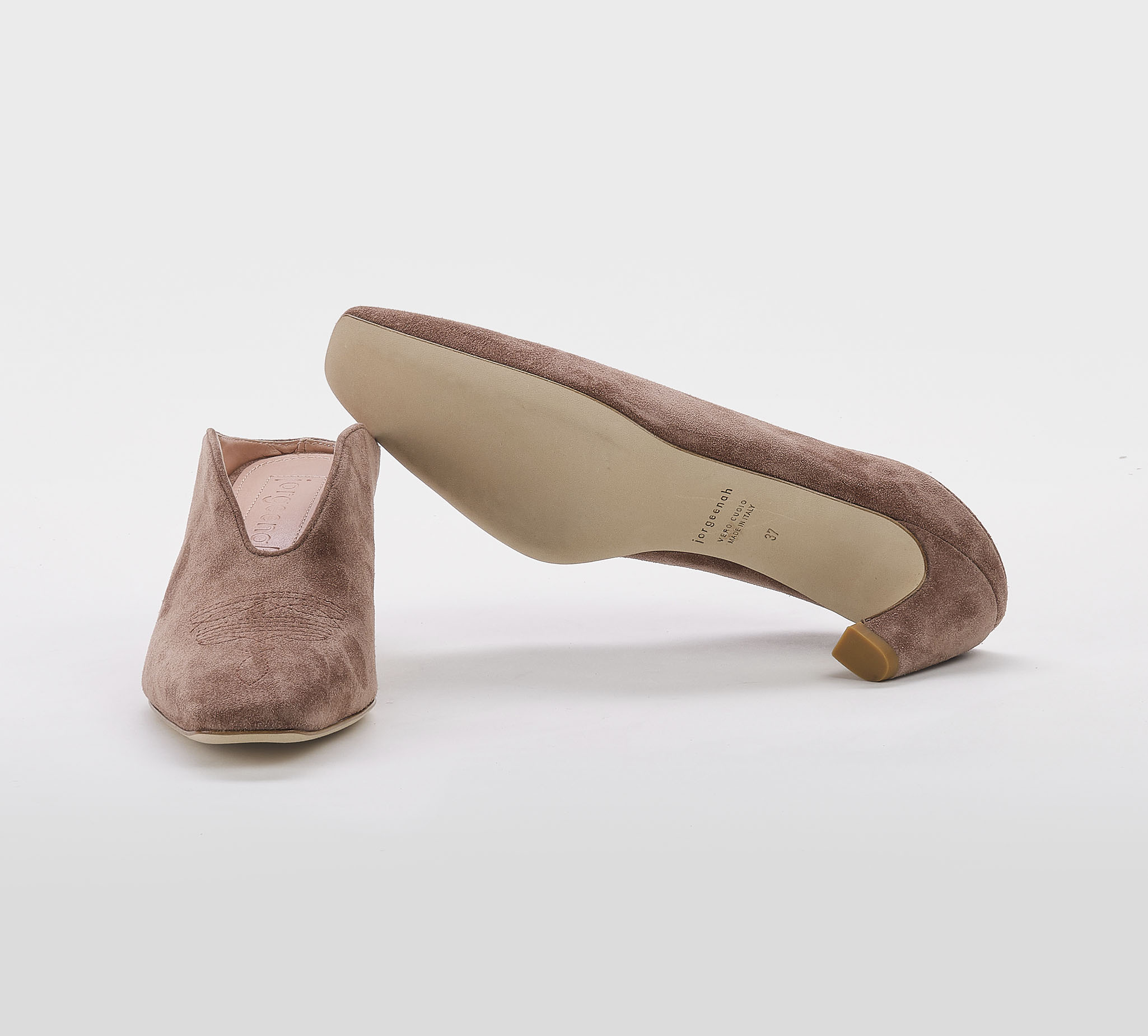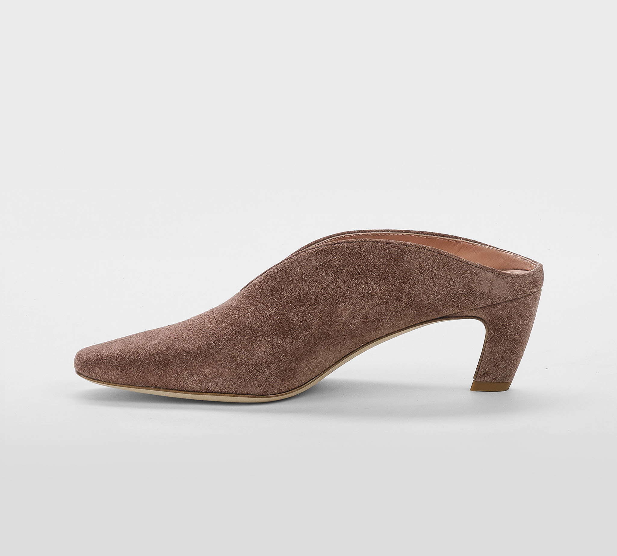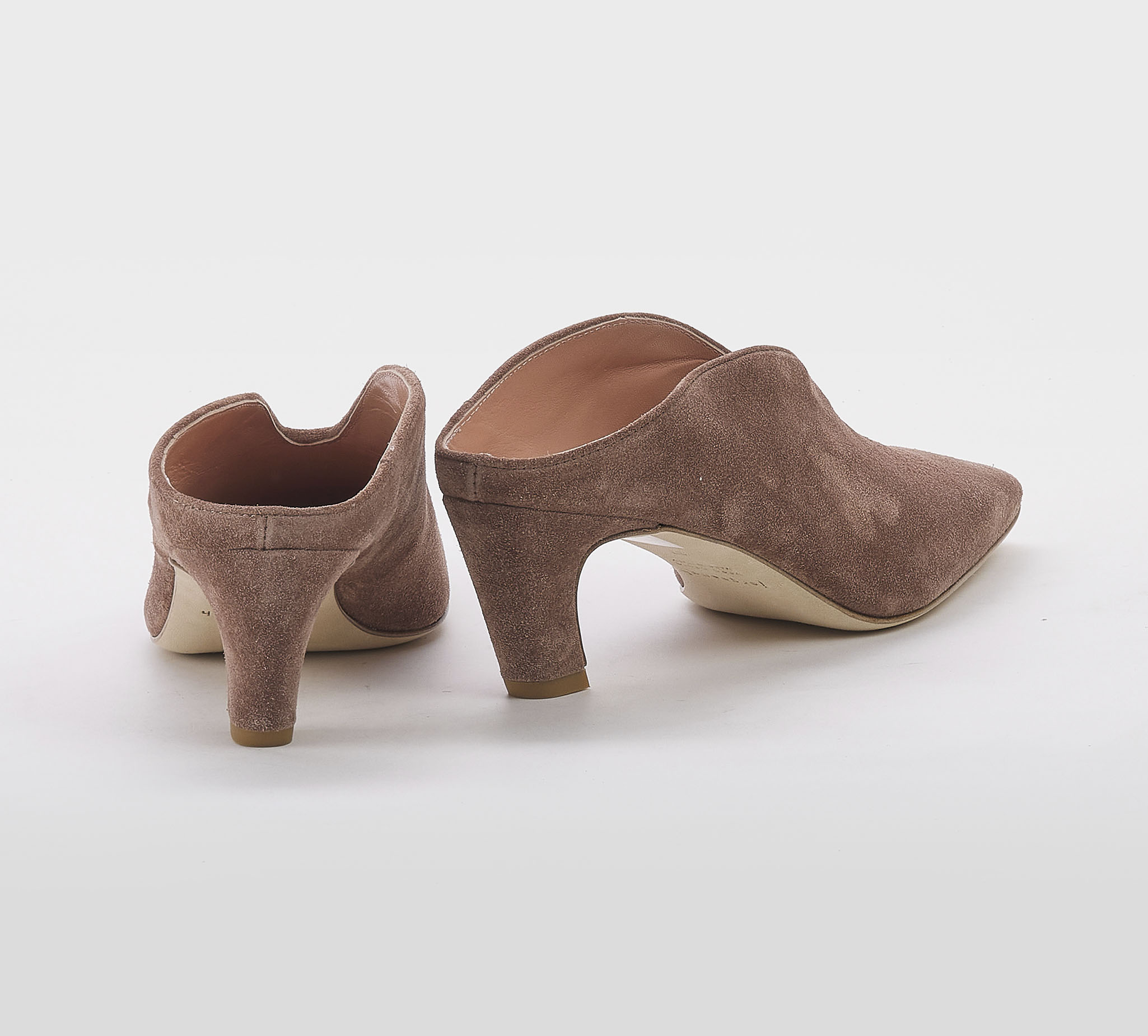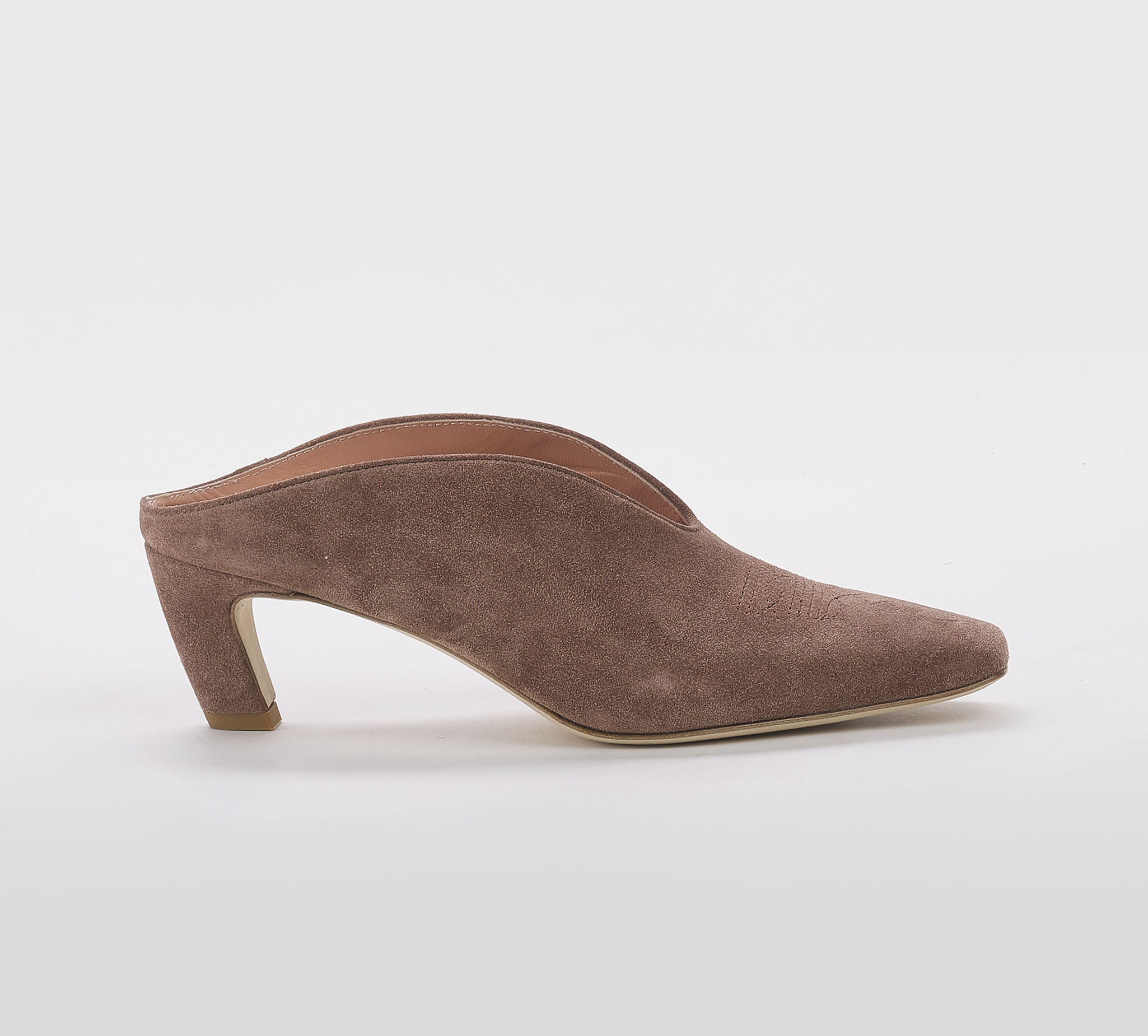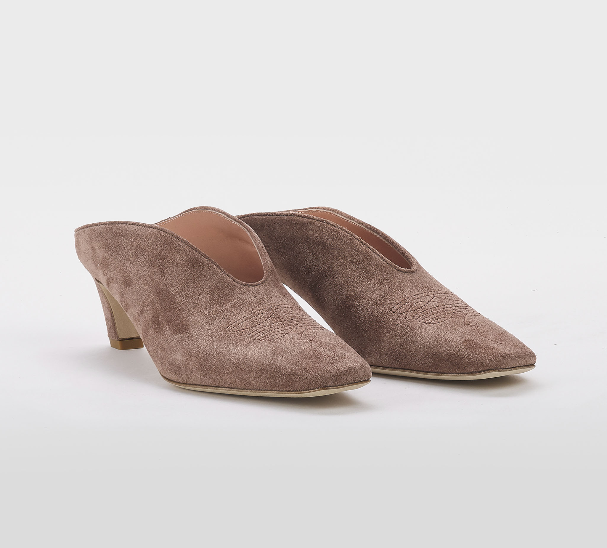 Mules in camoscio cuoio -ricamo cuoio -tacco cm 6 -calzata regolare Fondo cuoio SS 26