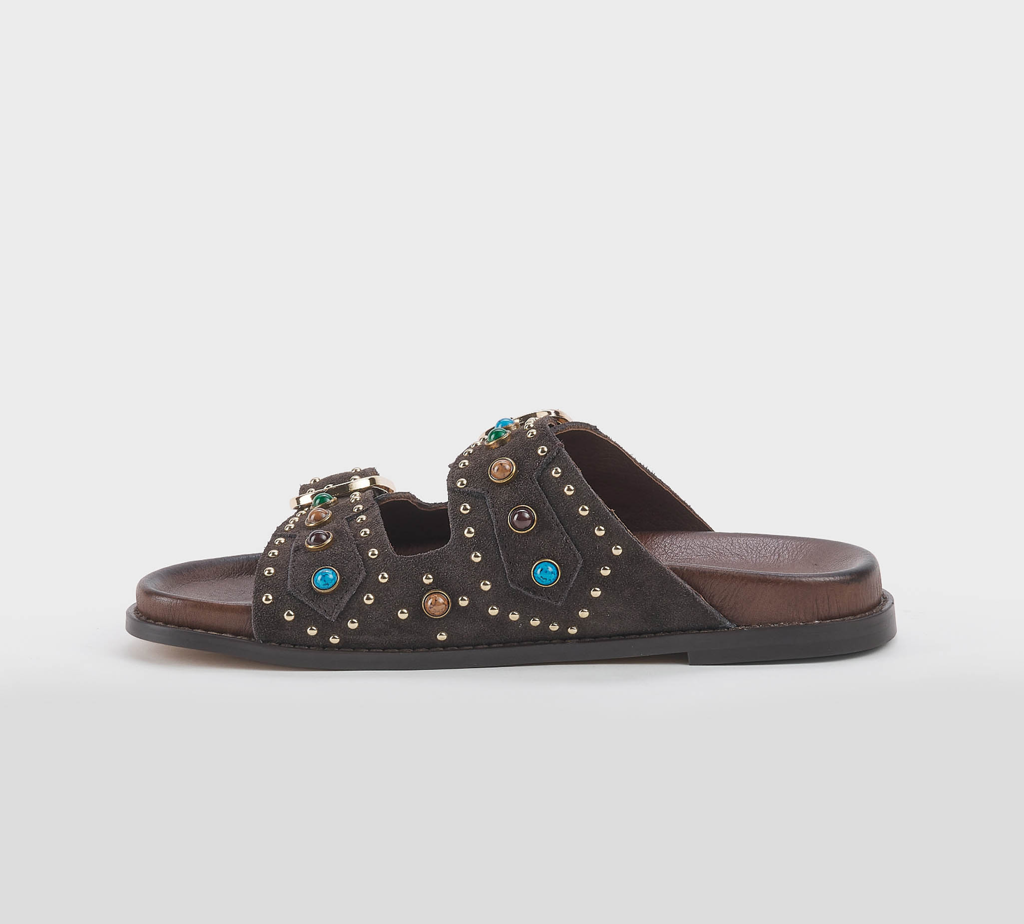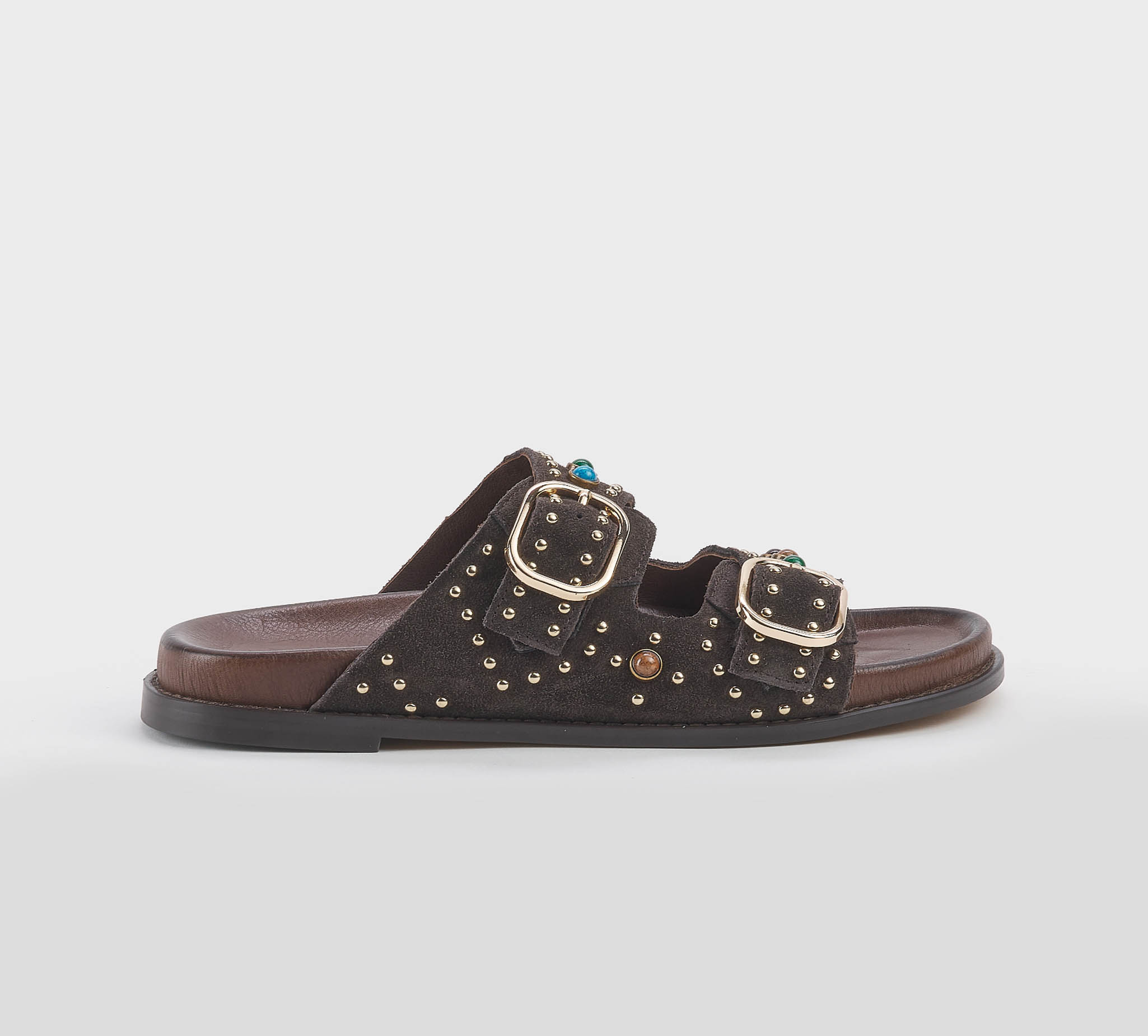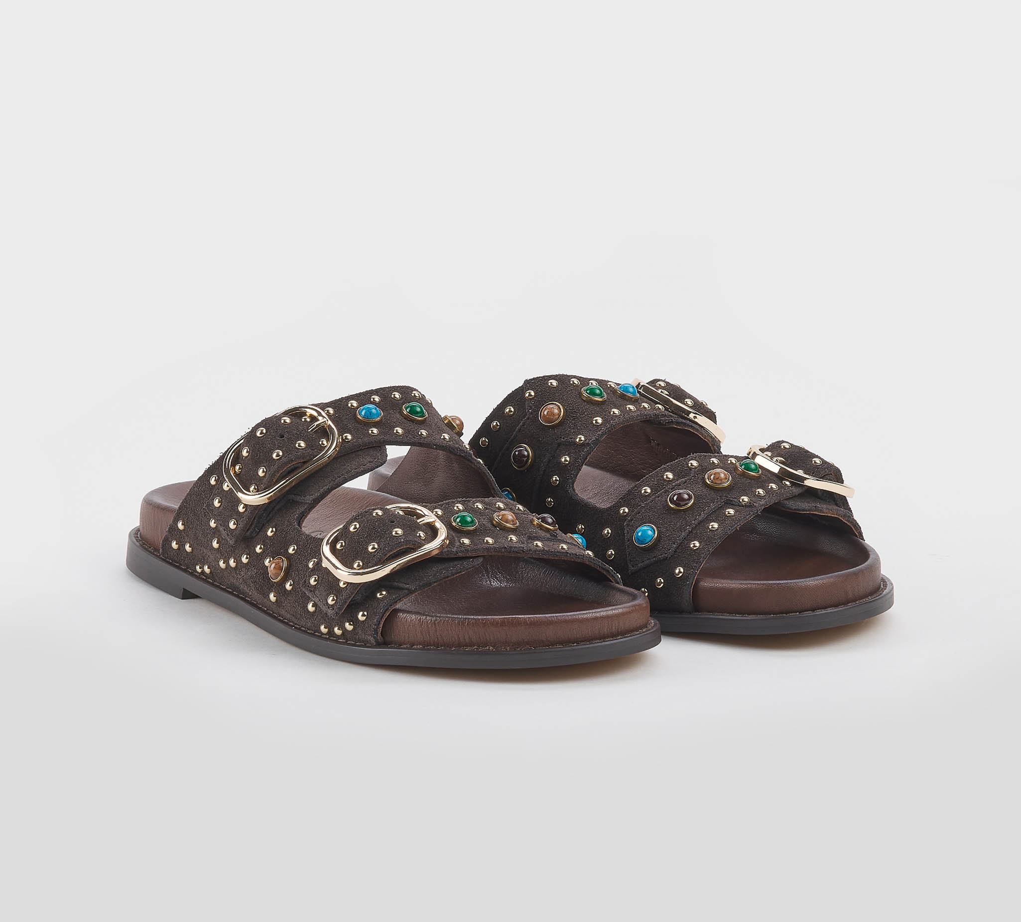 Home » Donna » SANDALO BASSO » CIABATTA 2 FASCE CAMOSCIO MORO BORCHIE