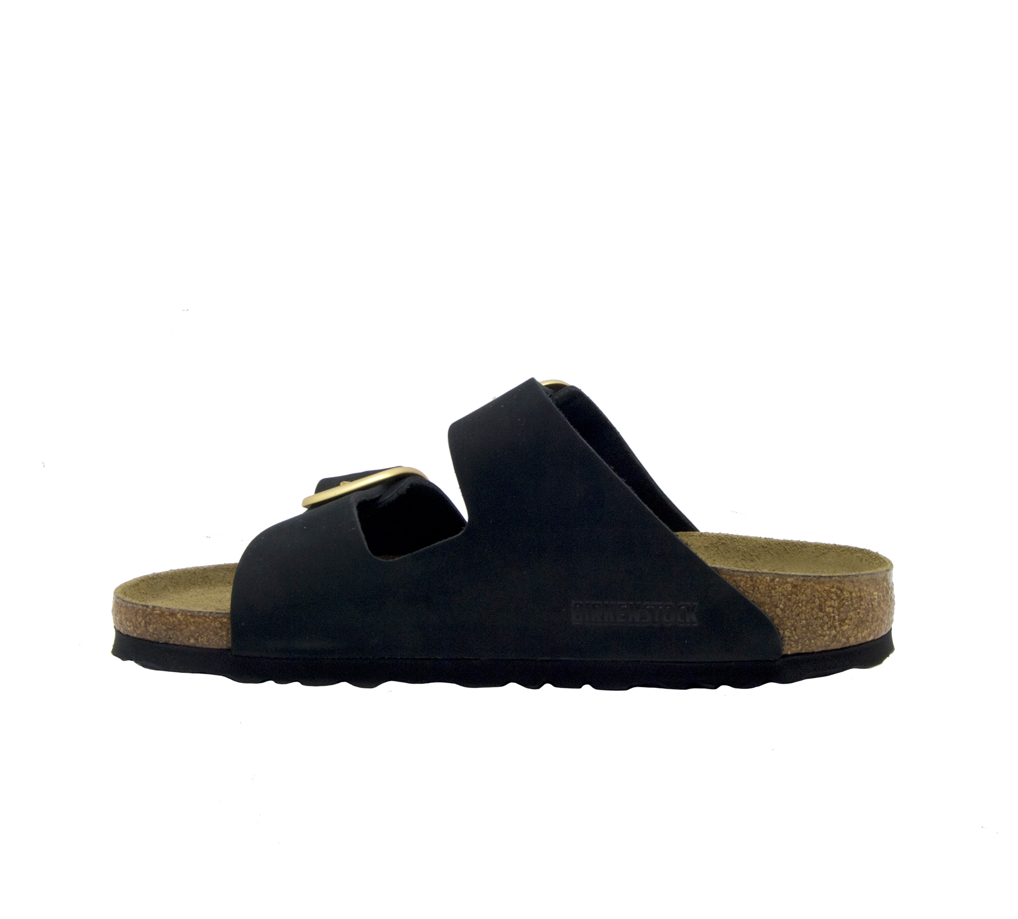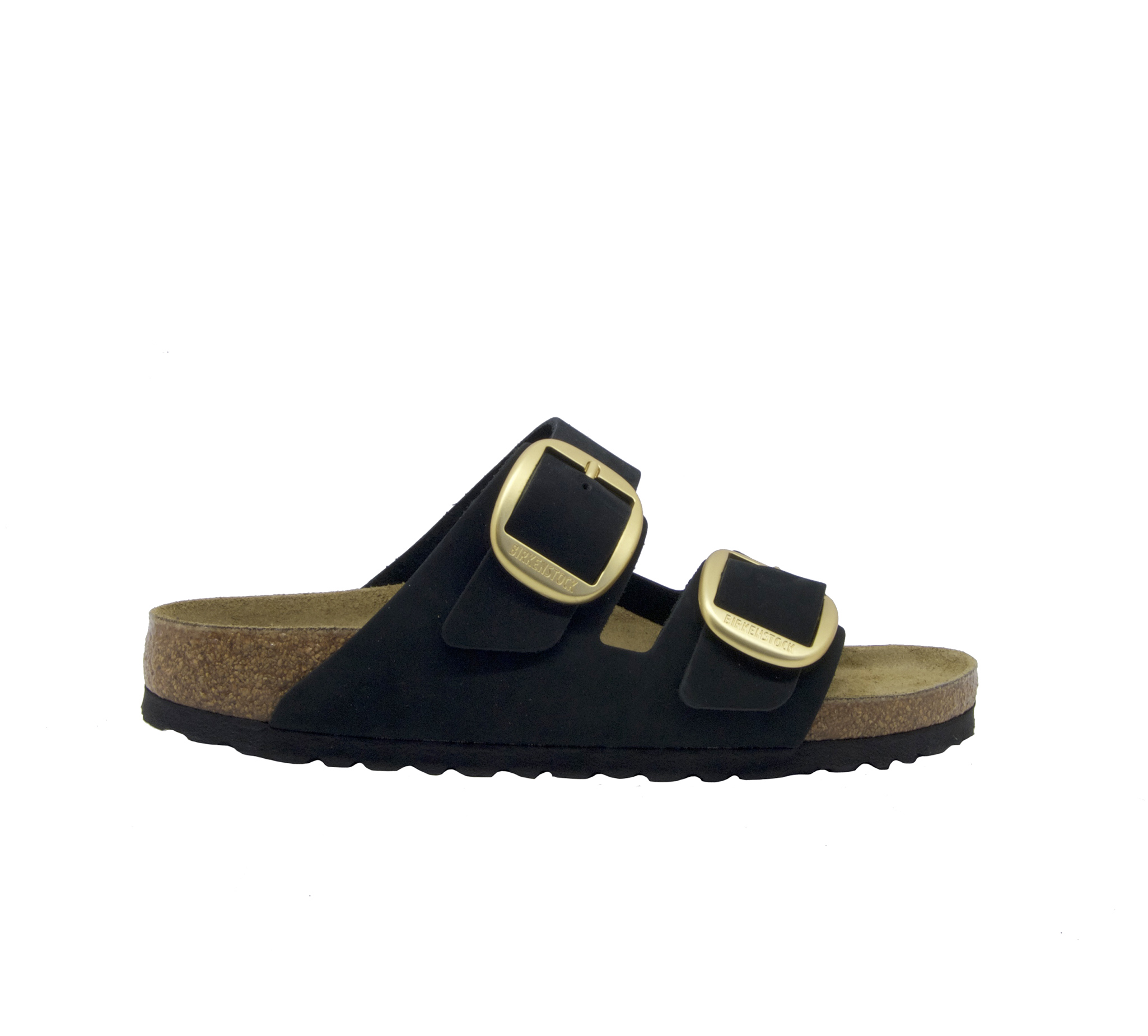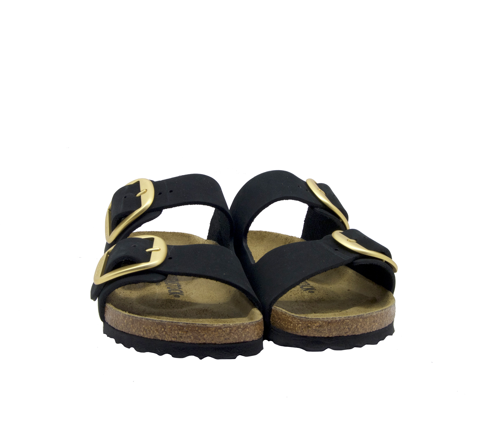 Ciabatta Arizona 2 fasce nabuck leather black -fibbie oro -plantare anatomico -calzata regolare Fondo gomma panna Made in Germany