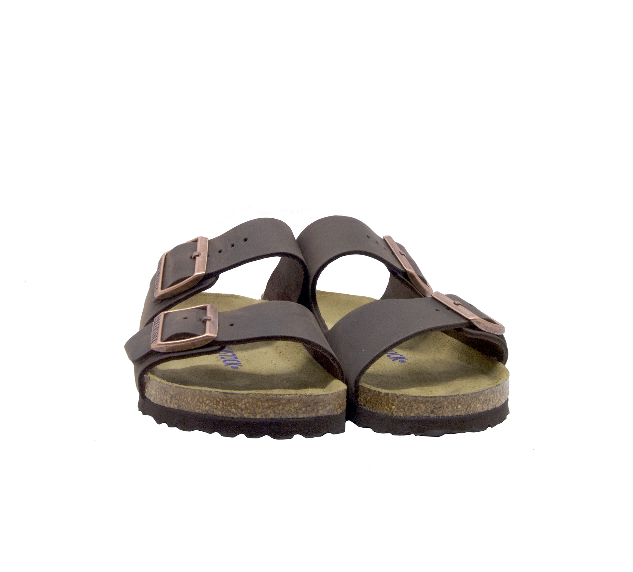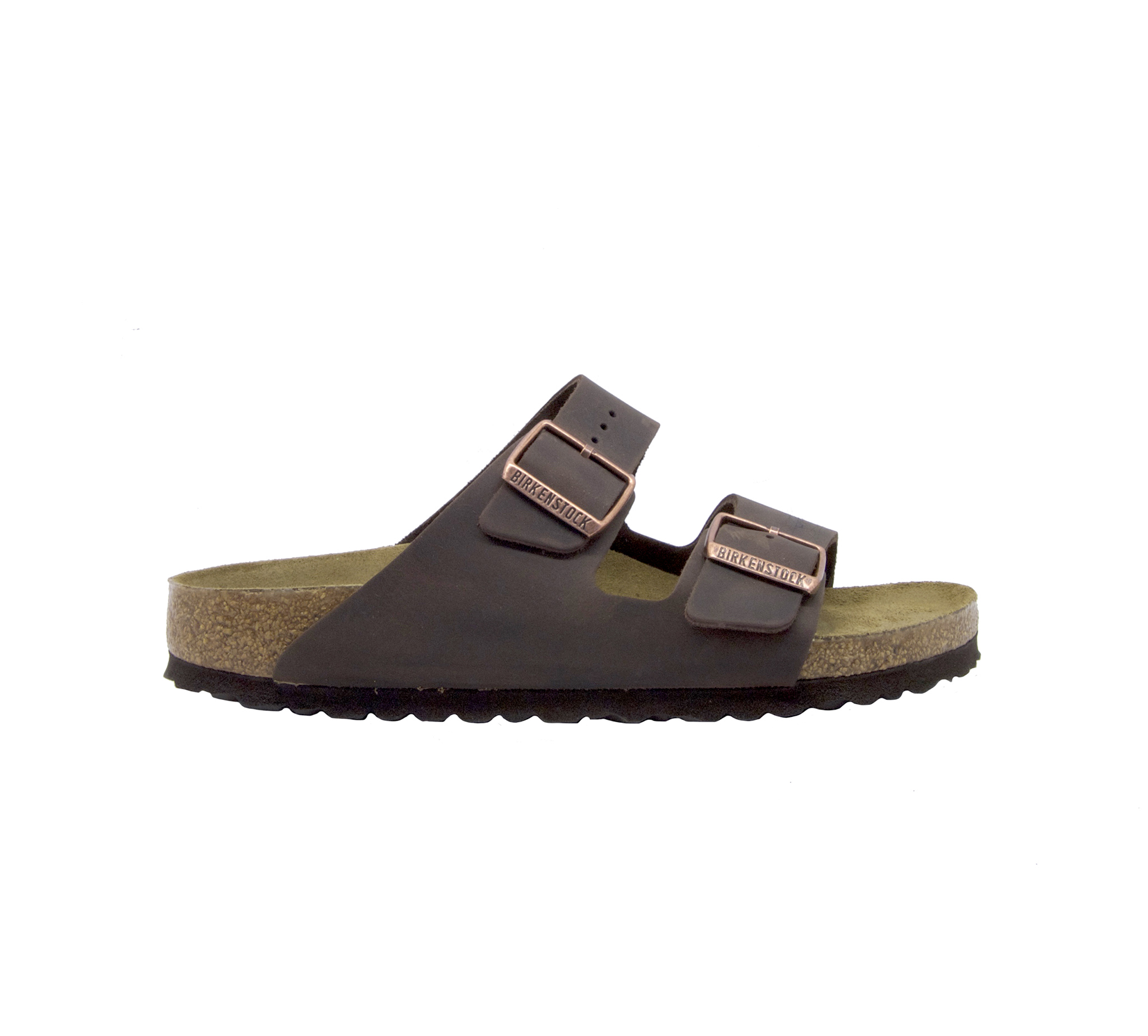Ciabatta 2 fasce pelle habana -fibbie rame -plantare anatomico -calzata stretta -fondo gomma nero Made in Germany.