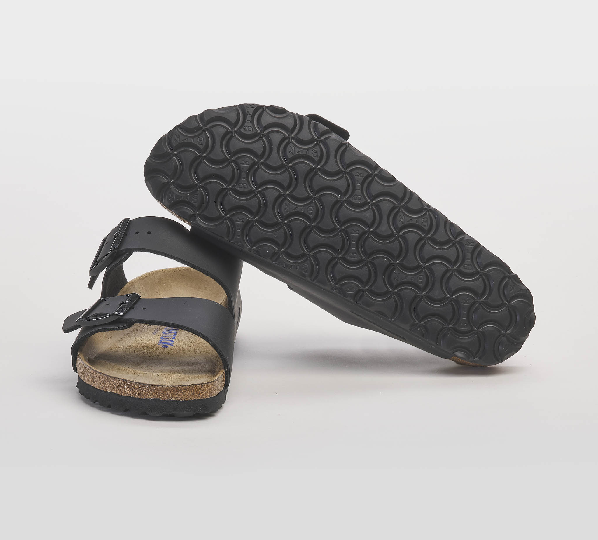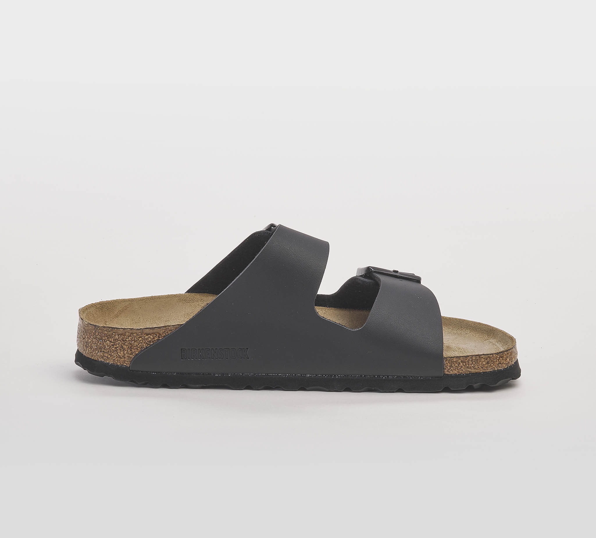 Ciabatta Arizona in pelle nero -2 fasce -fibbie nero -planatare anatomico -calzata regolare Fondo gomma nero Made in Germany