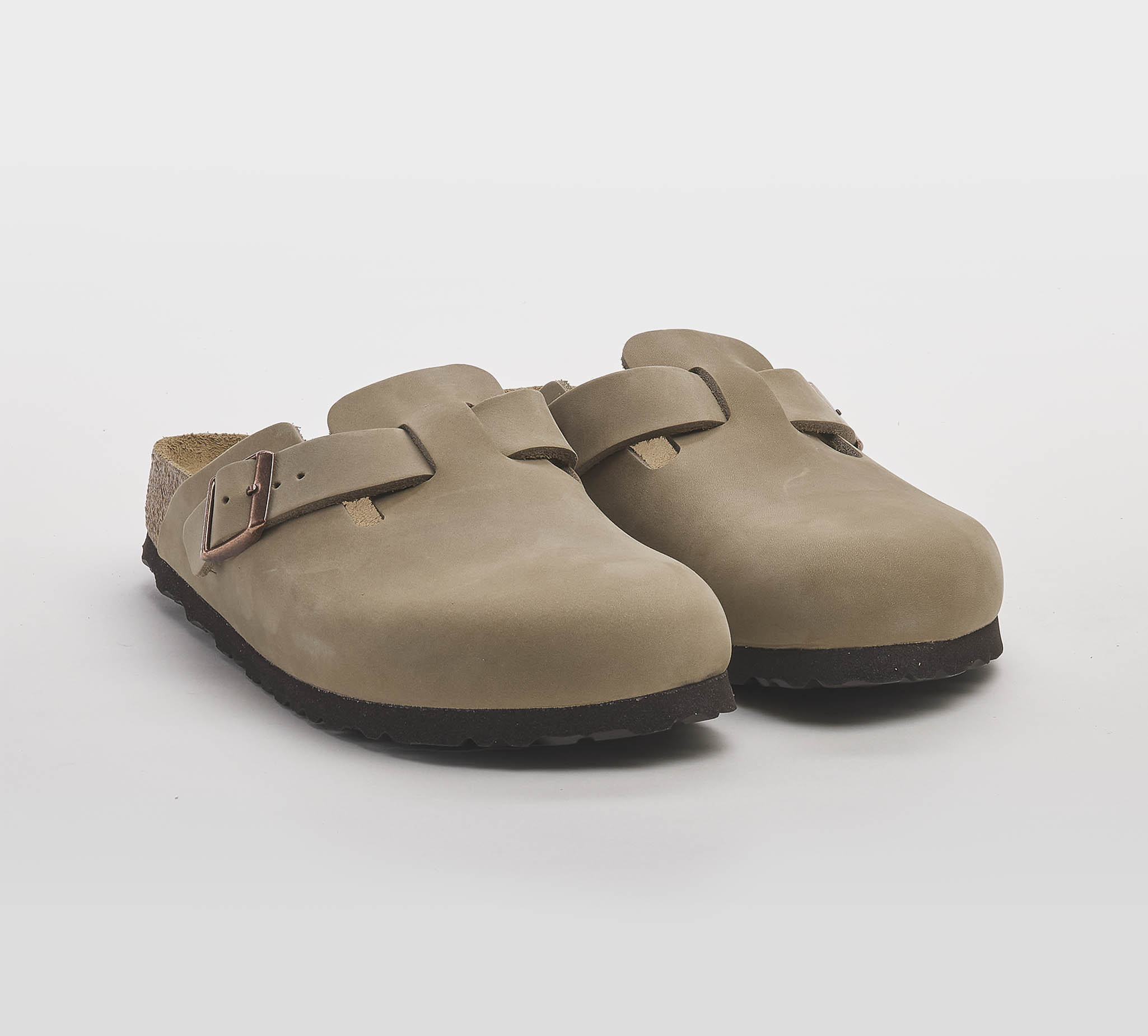 Sabot in pelle oliata tabacco brown -fibbia rame Plantare anatomico Calzata stretta Fondo gomma nero Made in Germany. Carrie Over