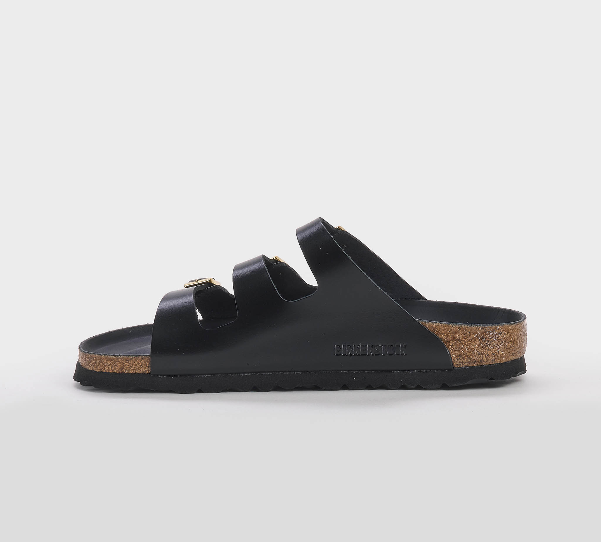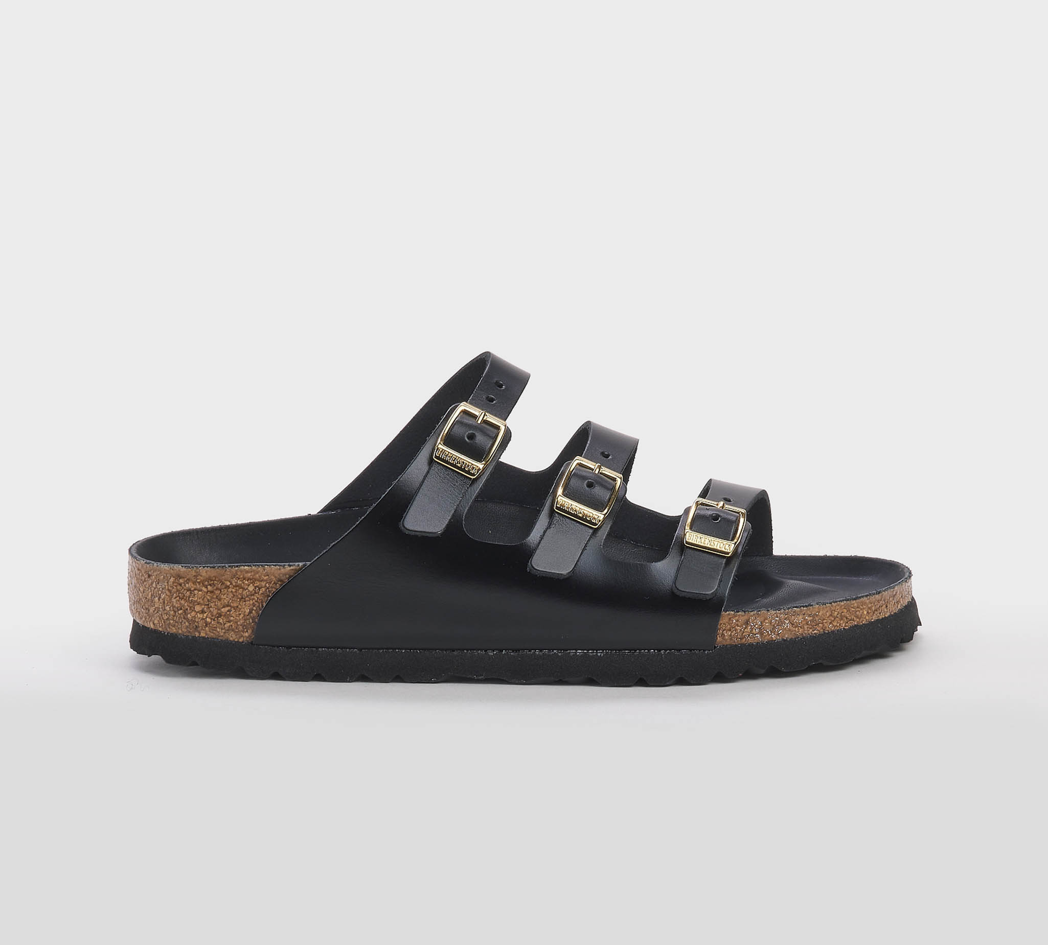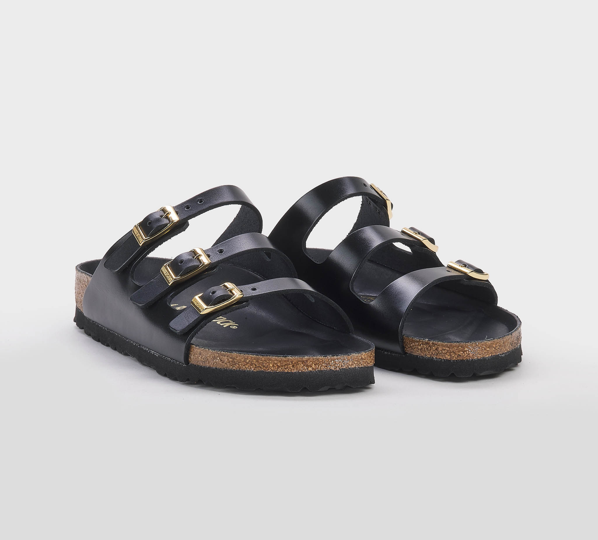 Ciabatta Florida in pelle nero -triplo cinturino -fibbiette nero -plantare anatomico -calzata regolare Fondo gomma nero Made in Germany SS 25