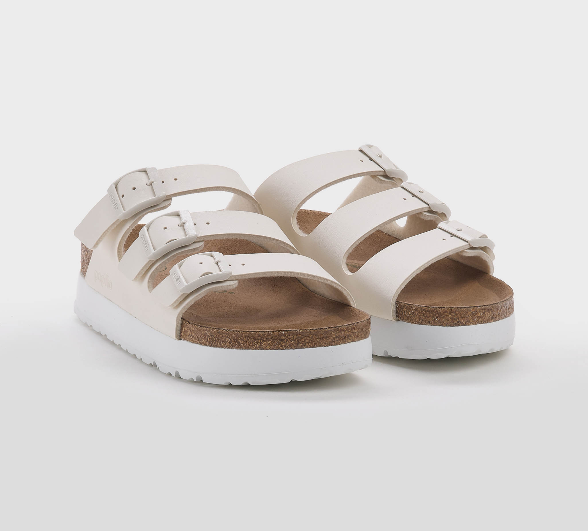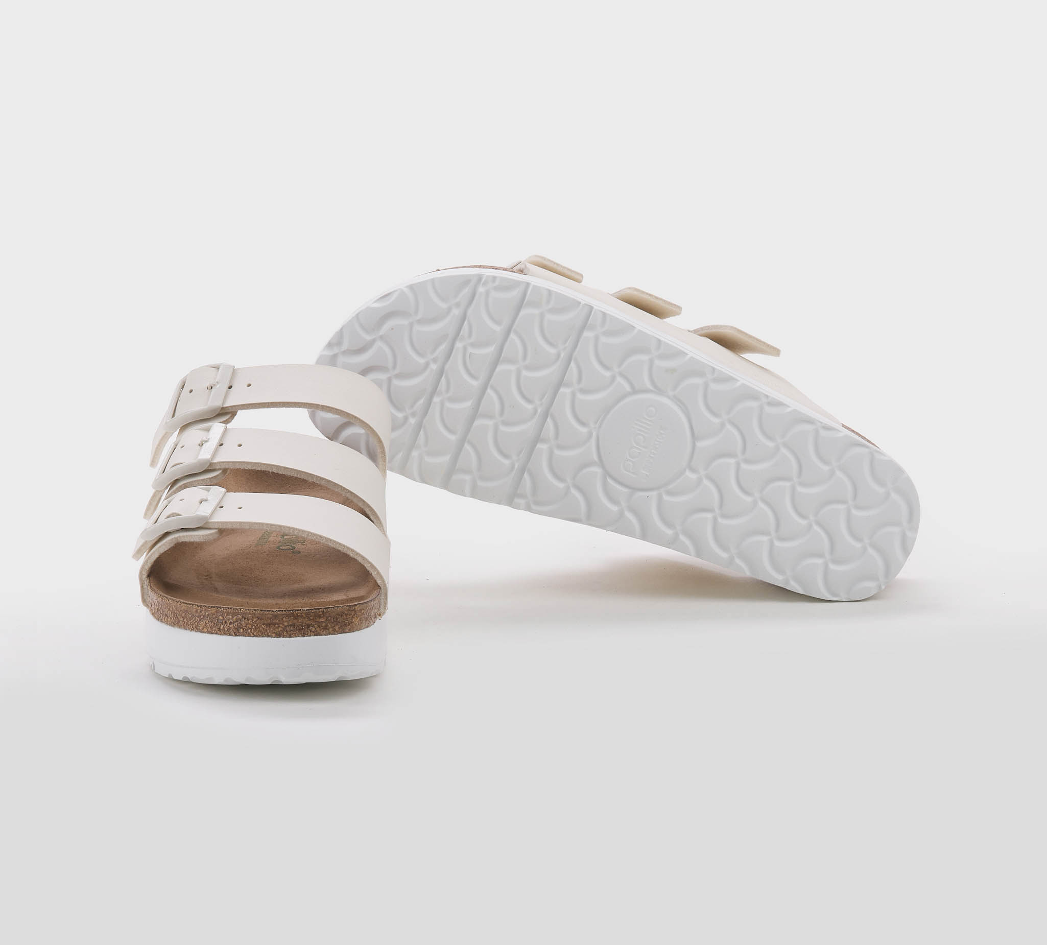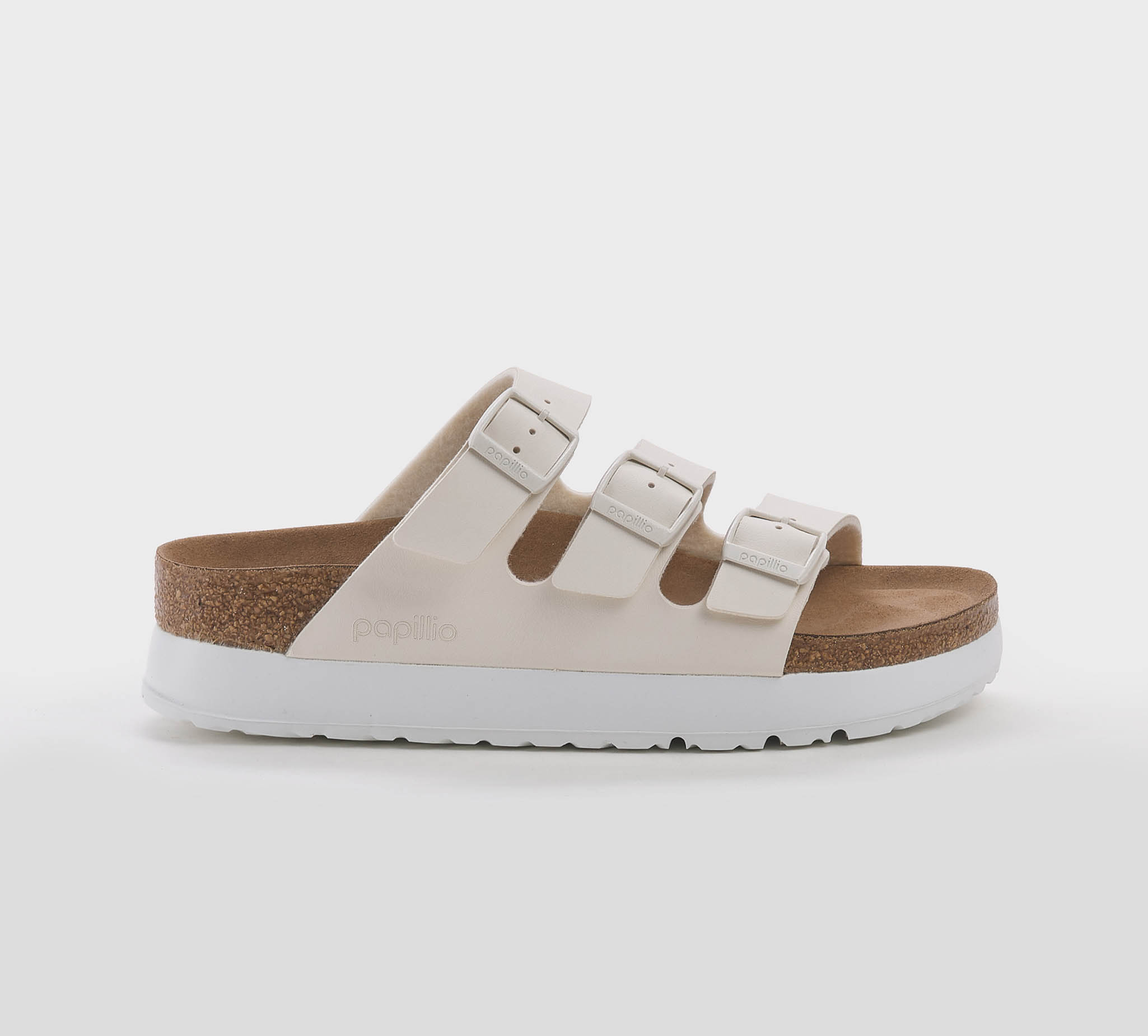 Ciabatta Florida in birkoflor gesso -platform -triplo cinturino -fibbiette gesso -plantare anatomico -calzata regolare Fondo gomma bianco Made in Germany SS 25
