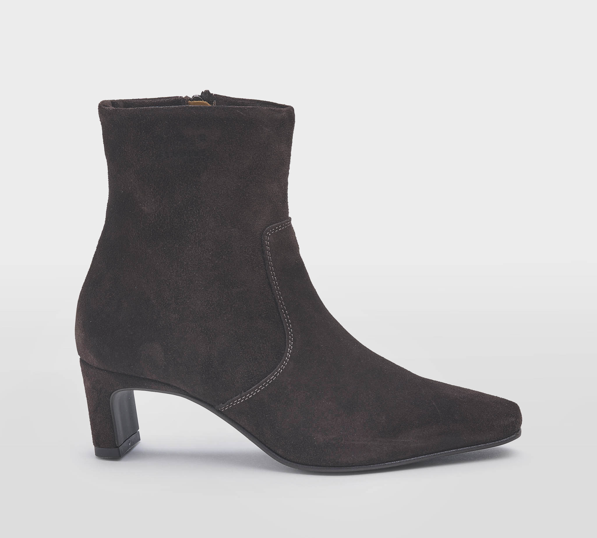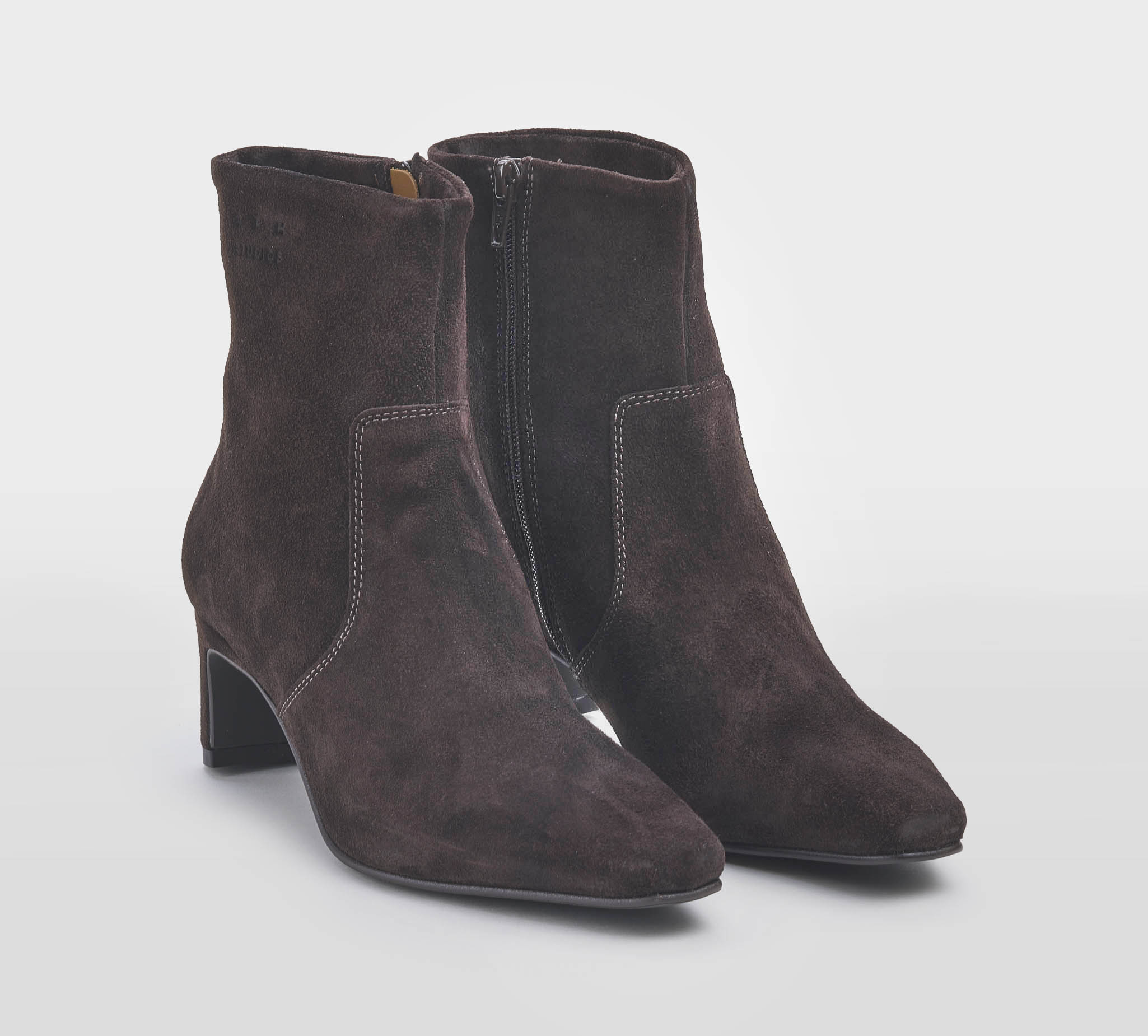 Stivaletto in camoscio moro -cerniera interna -tacco cm 5 -calzata regolare Fondo gomma FW 25
