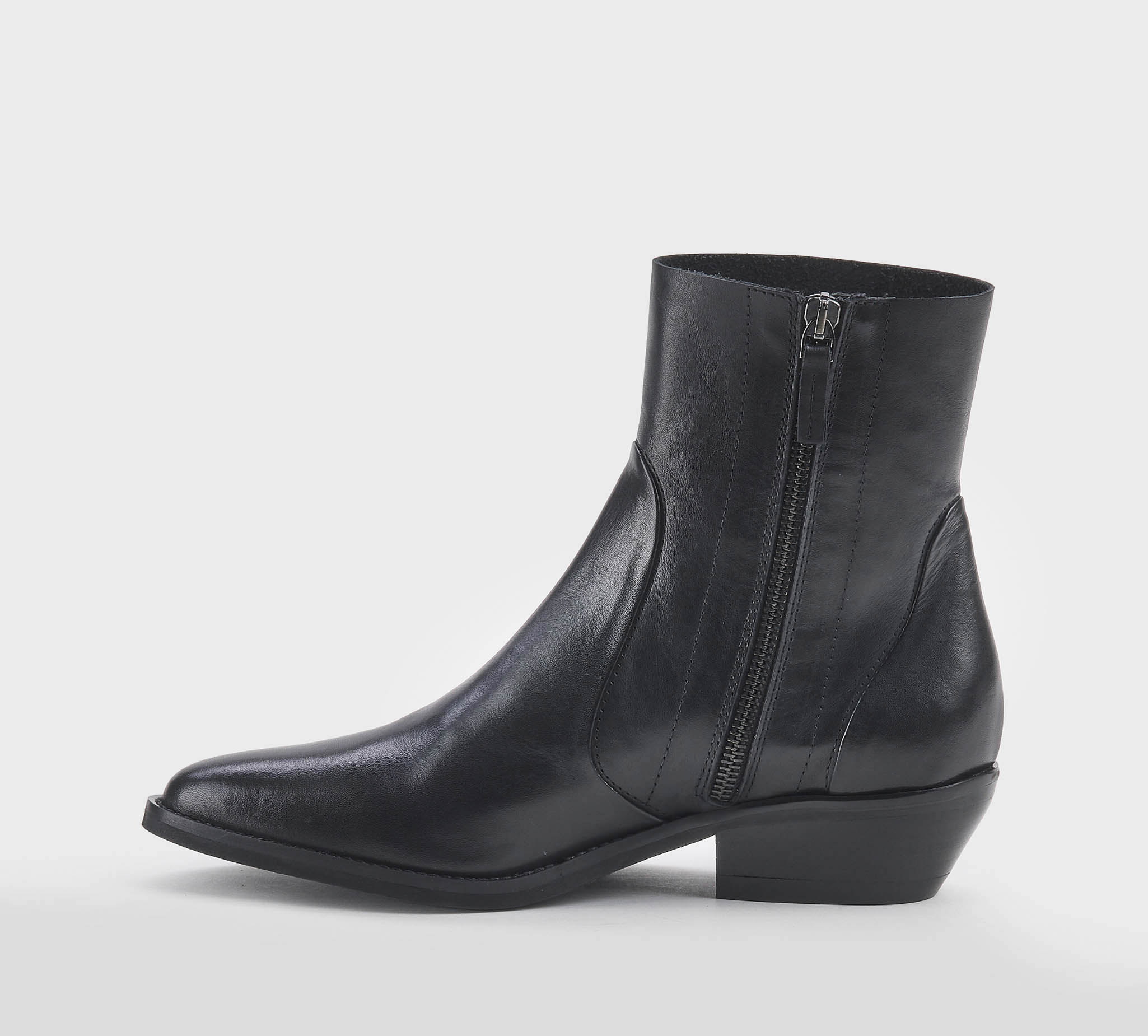 Stivaletto texano in pelle nero -zip interna -tacco cm 4 -calzata regolare Fondo cuoio SS 26