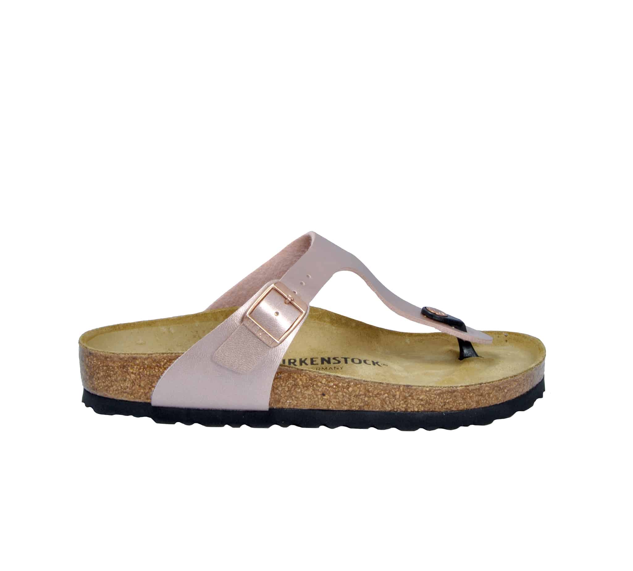 Ciabatta infradito Gizeh oro rosa -fibbietta rame -plantare anatomico -calzata normale Fondo gomma nero Made in Germany .