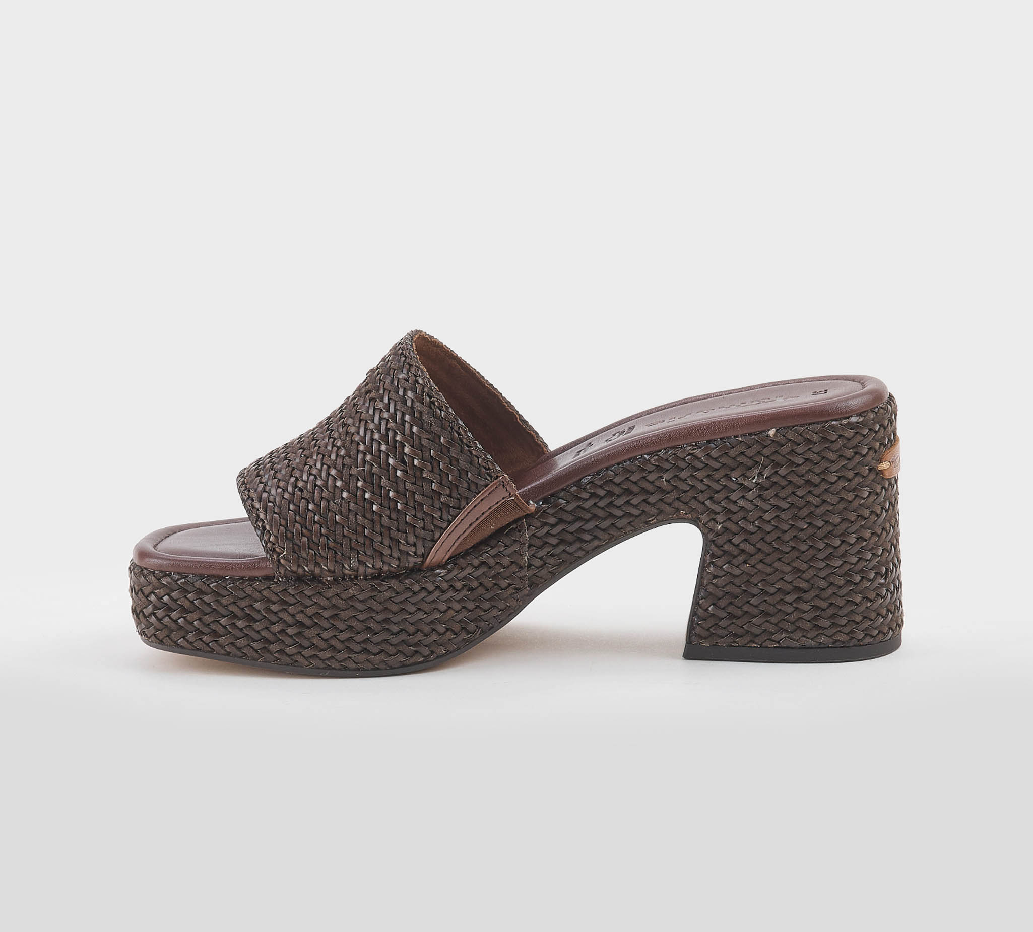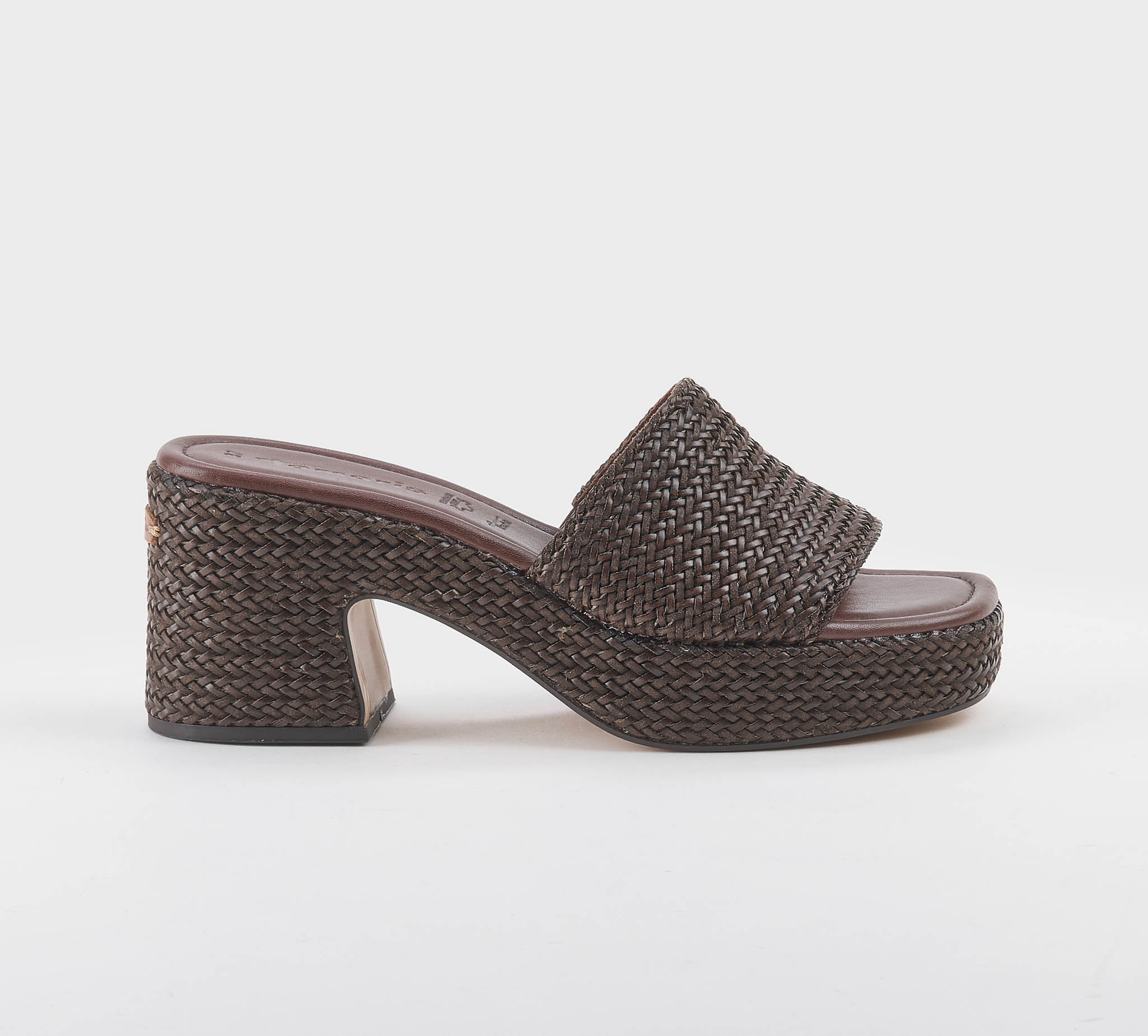 Ciabatta in pelle marrone intrecciata -zeppa cm 8 -calzata regolare Fondo gomma SS 26