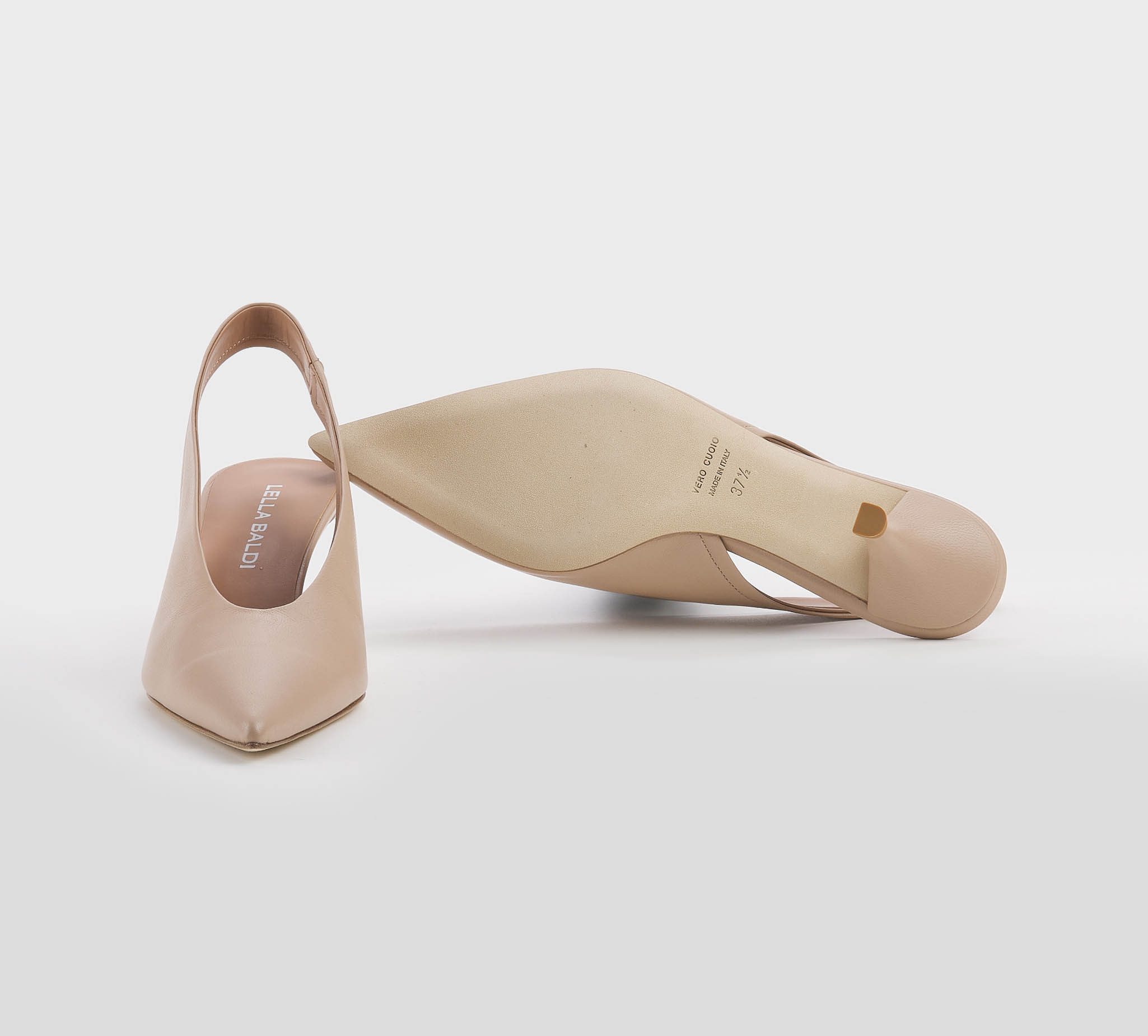 Slingback in pelle carne -cinturino con elastico -tacco cm 5 -calzata regolare Fondo cuoio Made in Italy ss 26