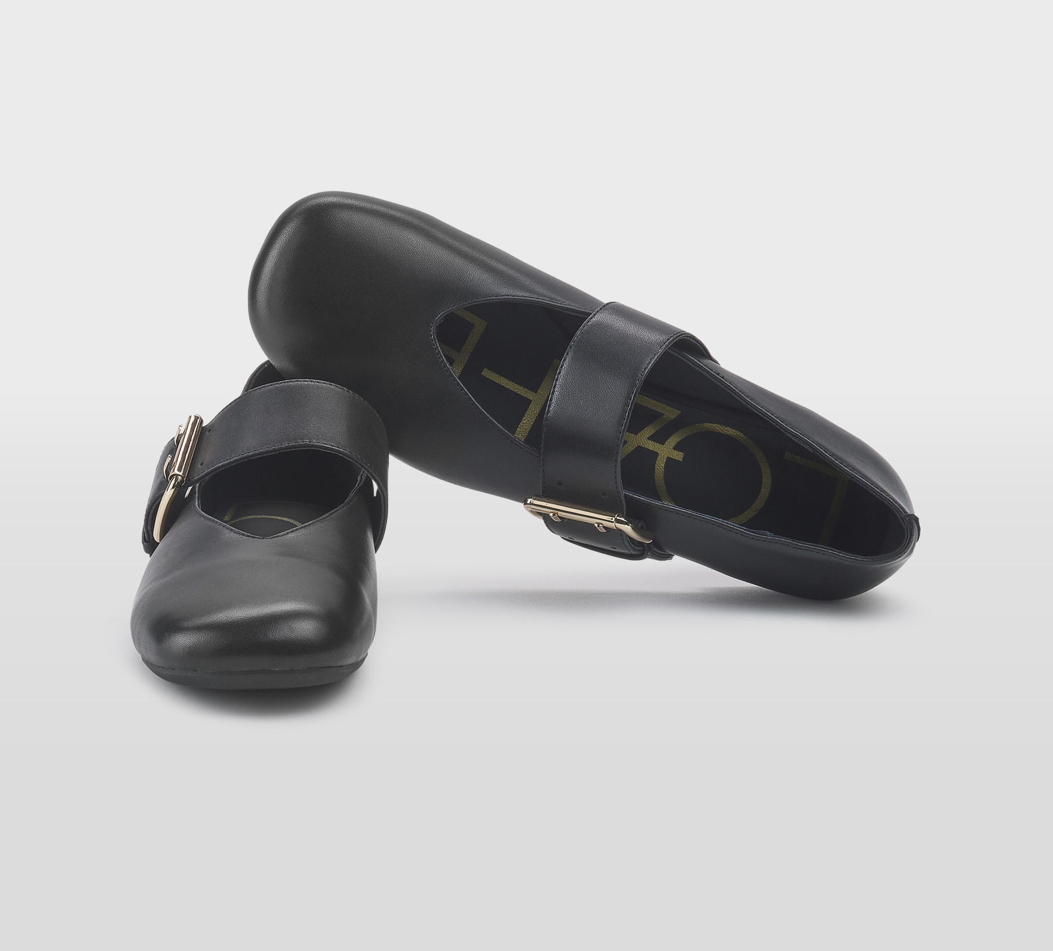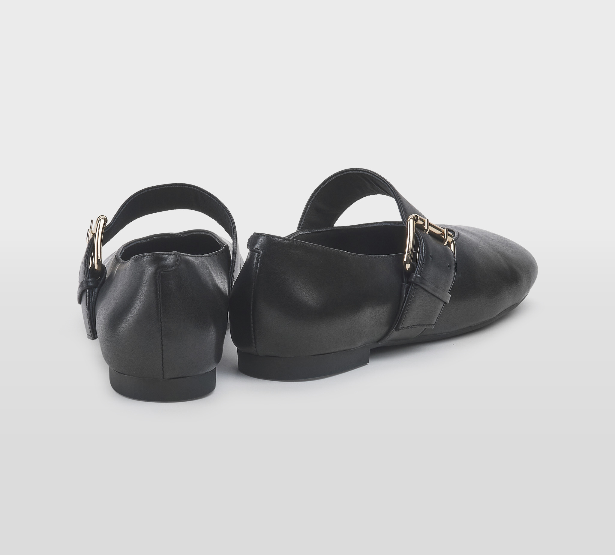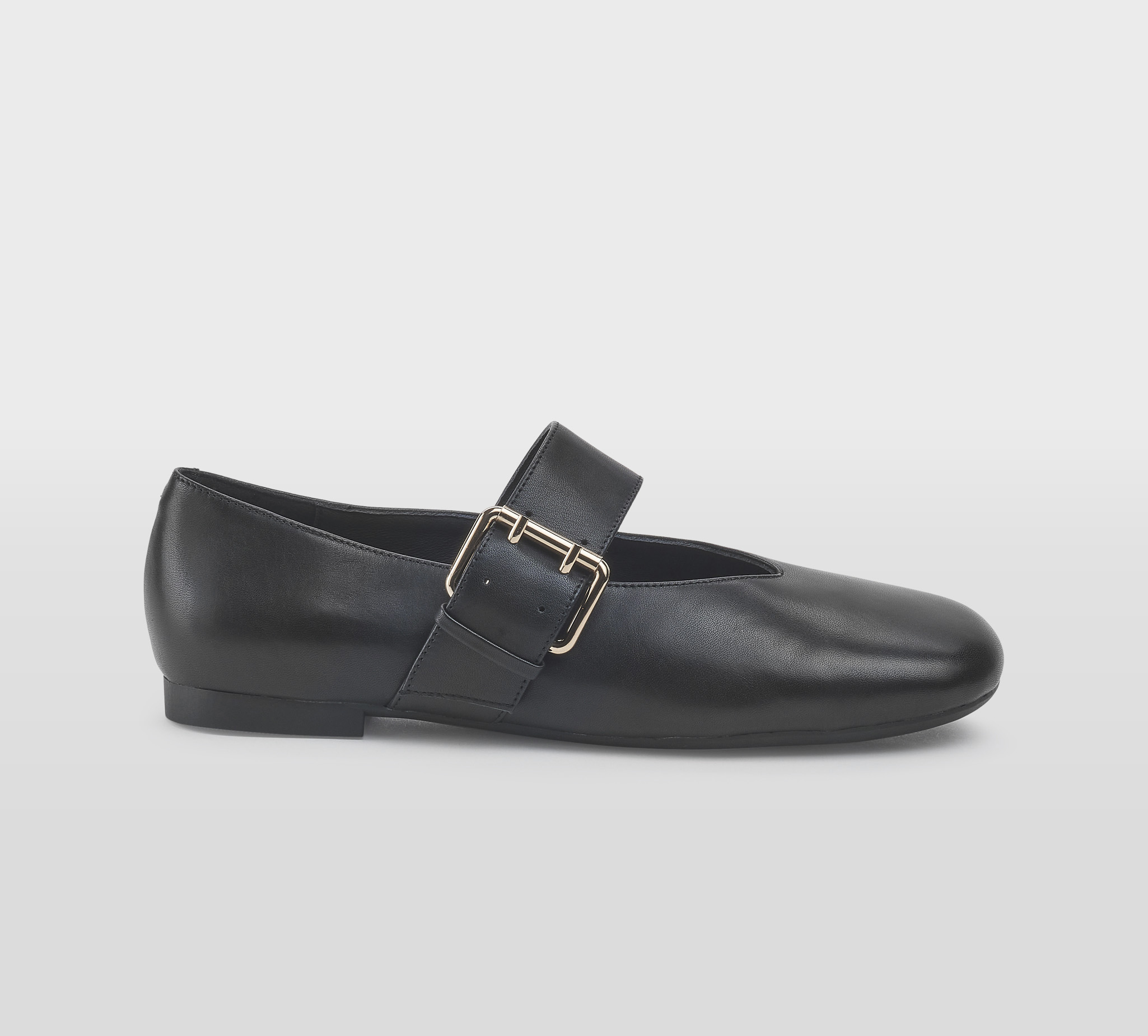 Ballerina bebe’ in pelle nero -cinturino pelle nero -fibbia oro -tacco cm 1 -calzata regolare Fondo gomma FW 25