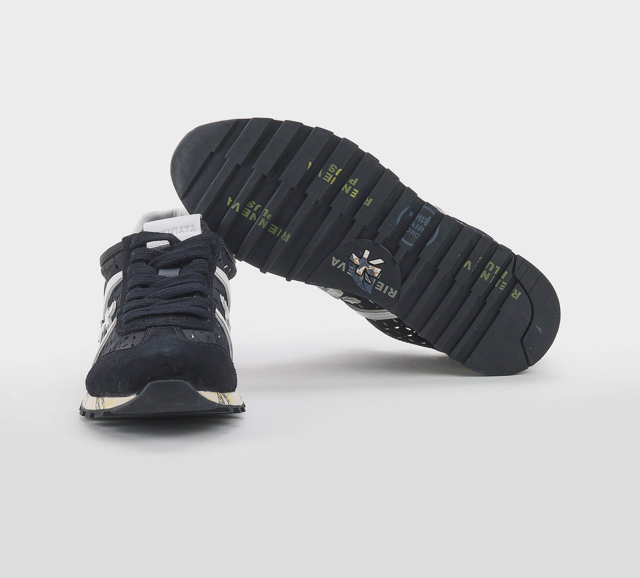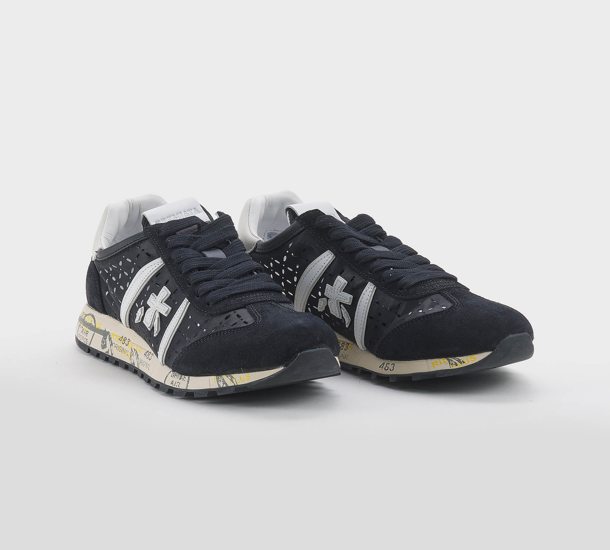 Sneakers Lucyd in camoscio nero -inserti traforati -logo pelle binco -talloncino pelle binco -laccio nero -plantare anatomico -calzata regolare Fondo gomma Made in Vietnam SS 26