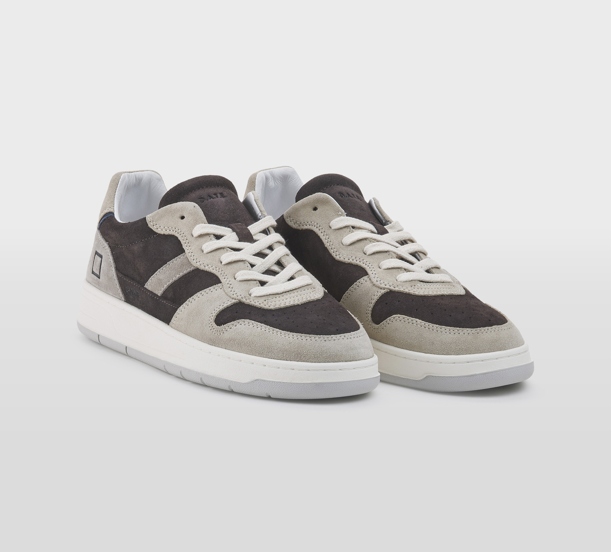 Sneakers Court in camoscio beige marrone -laccio bianco -plantare interno -calzata regolare Fono gomma FW 25